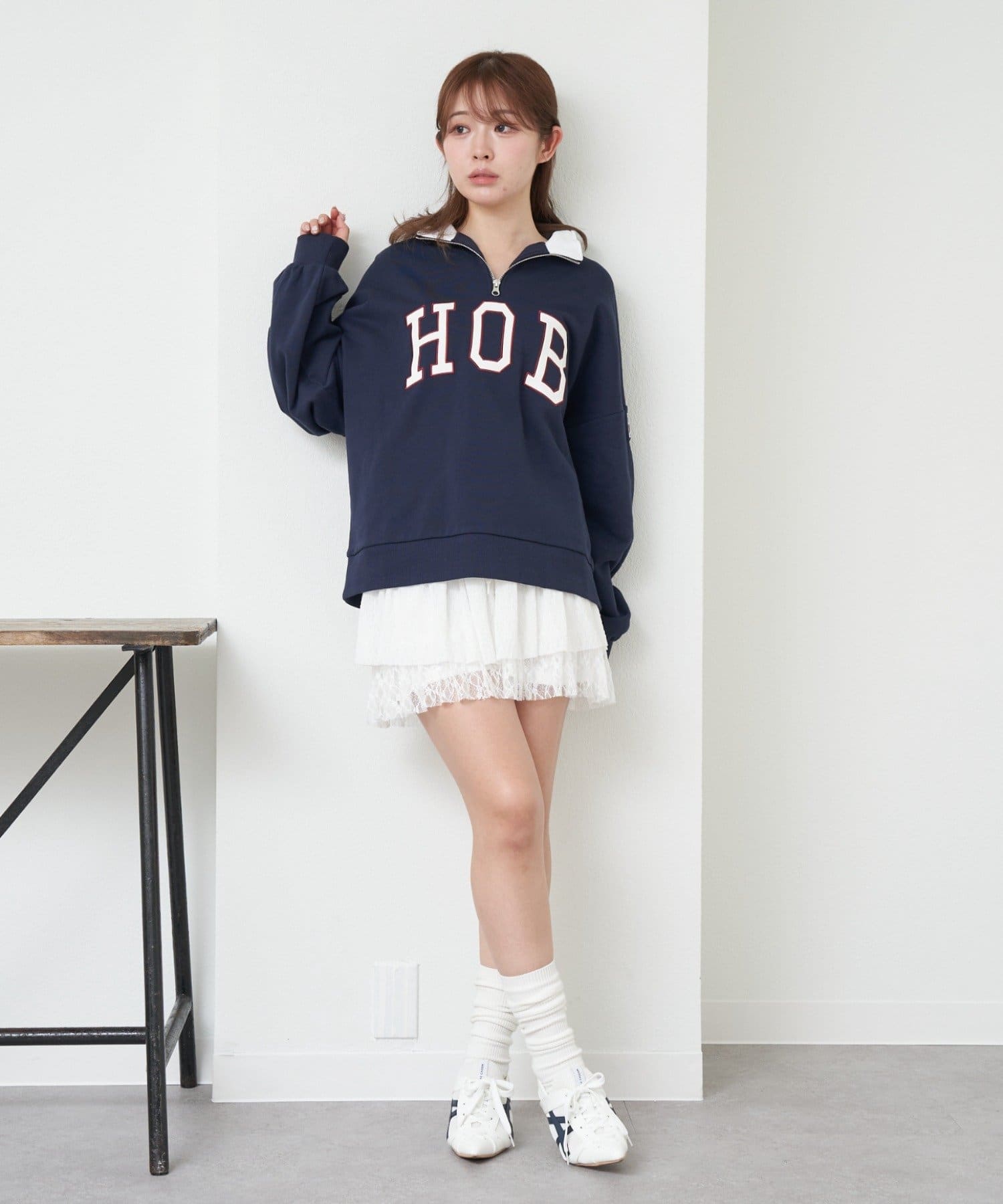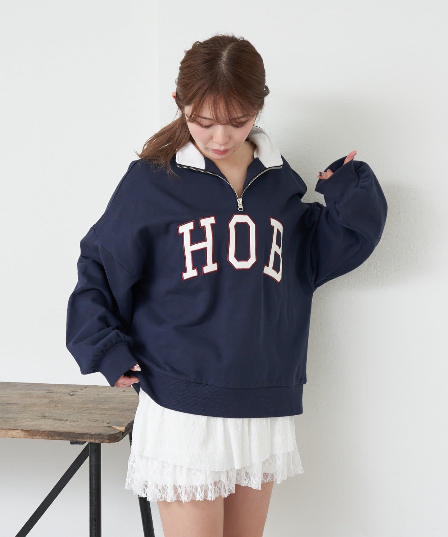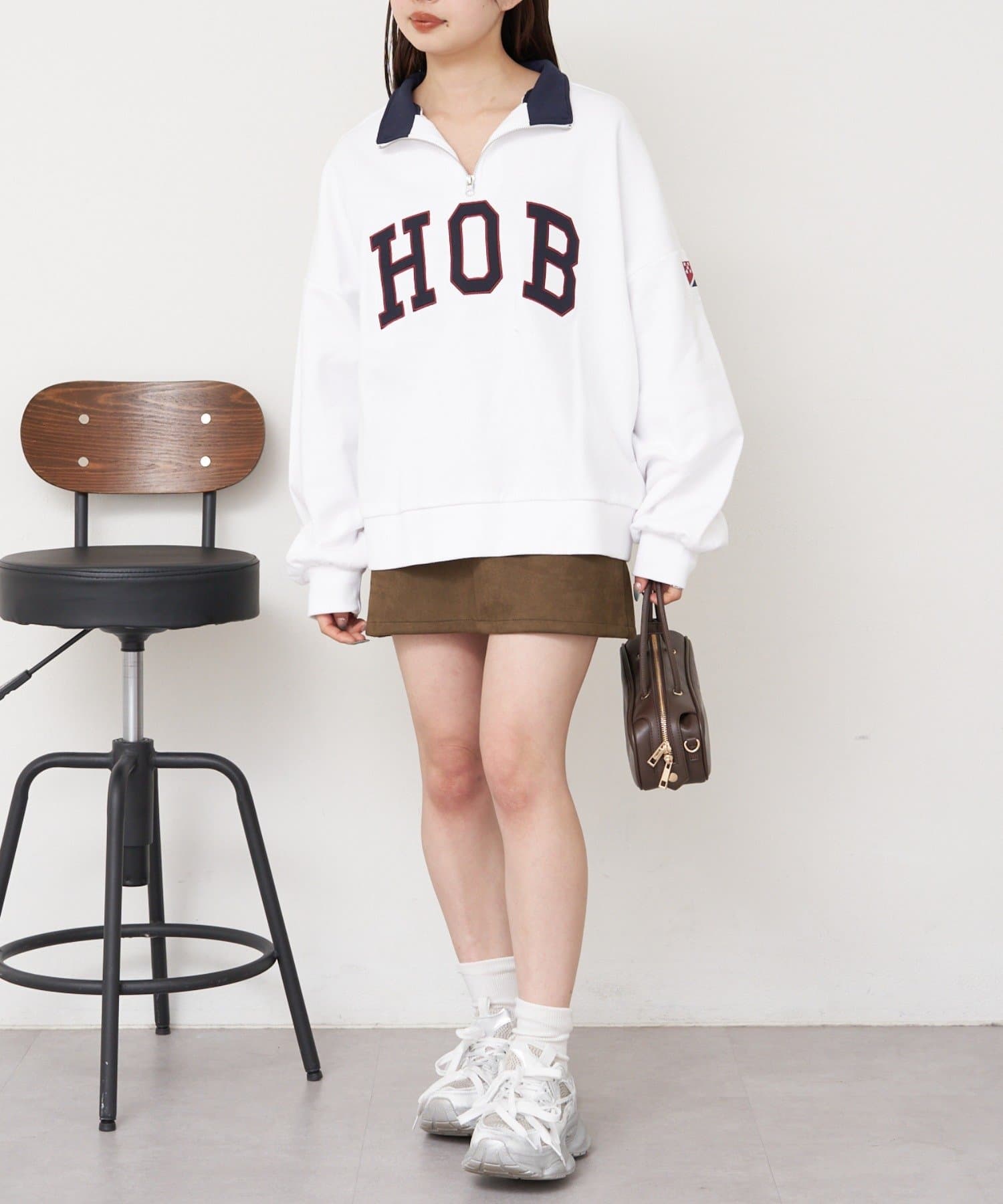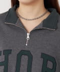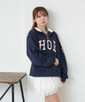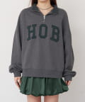 ロゴが目を惹くトレンドのハーフジップスウェット