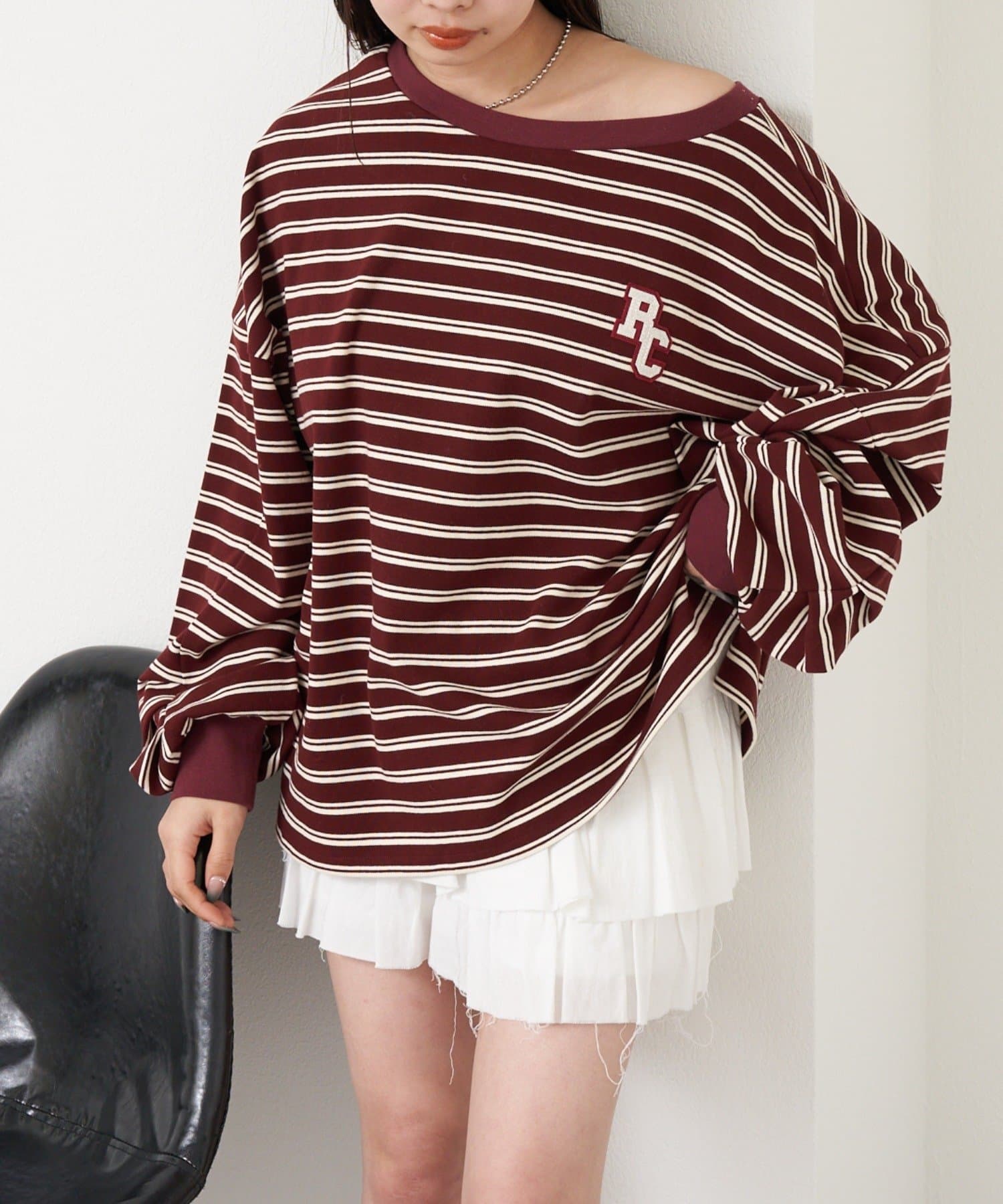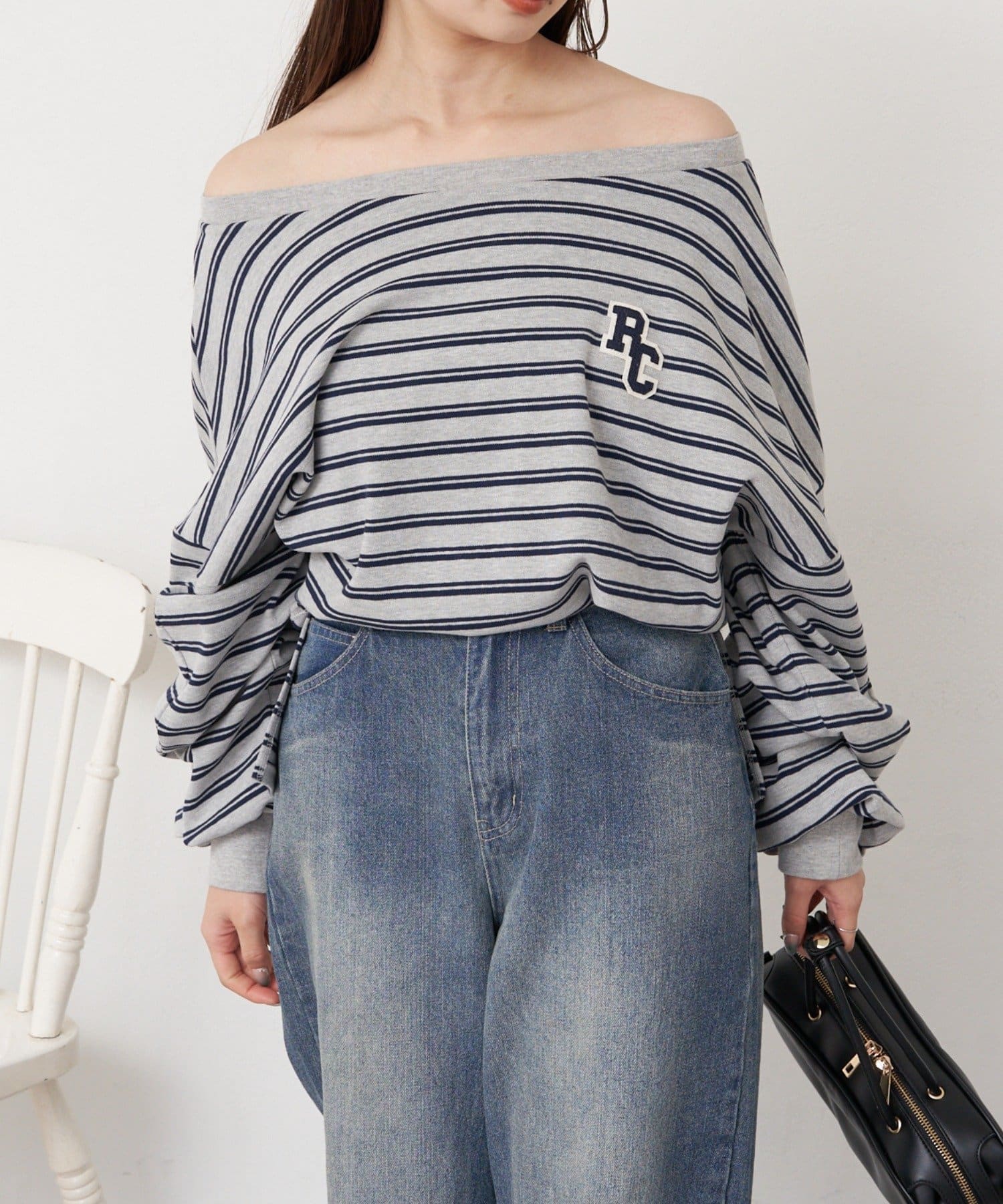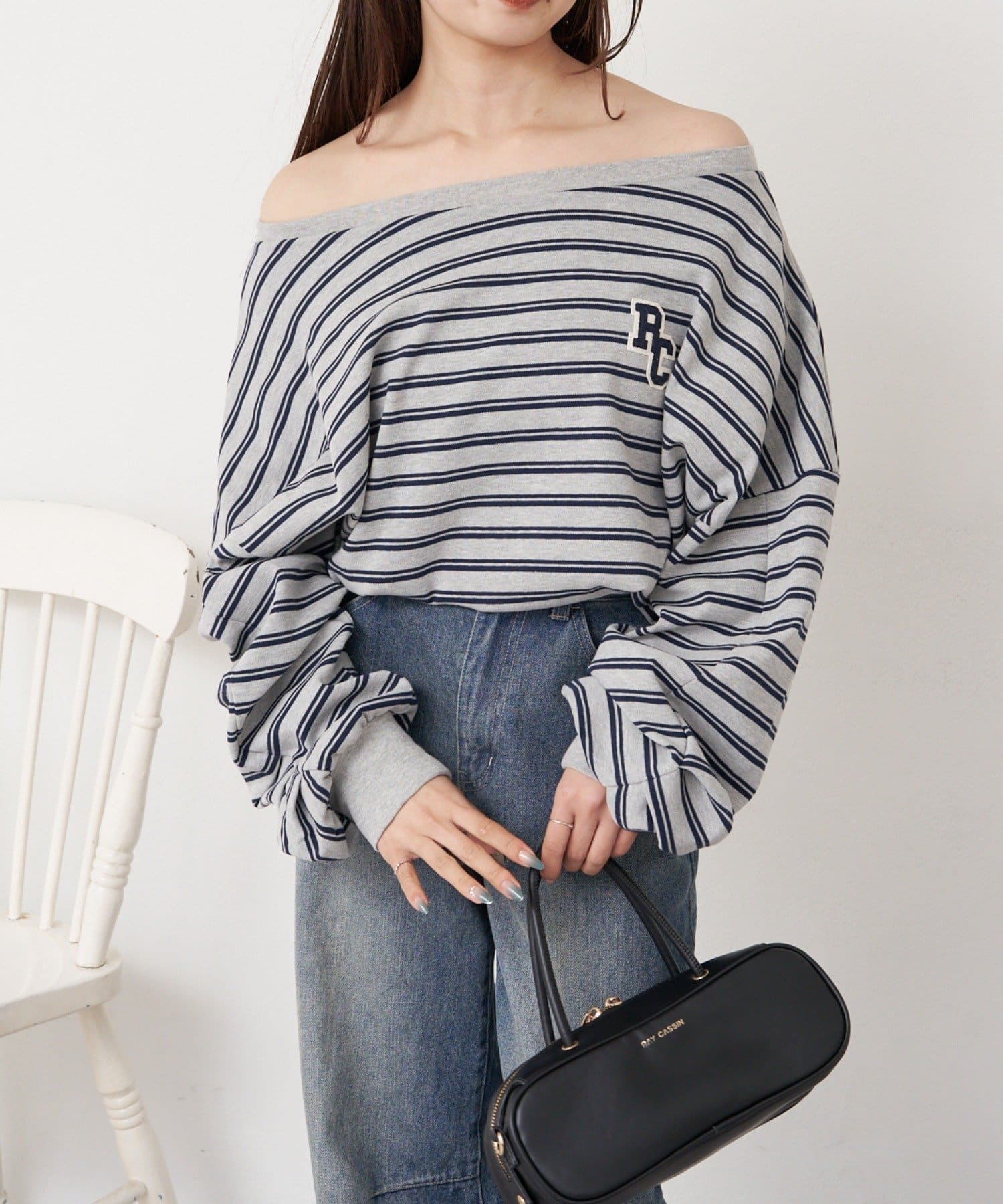 【RAY CASSIN】マルチボーダーオフショルTシャツ/ルーズTシャツ