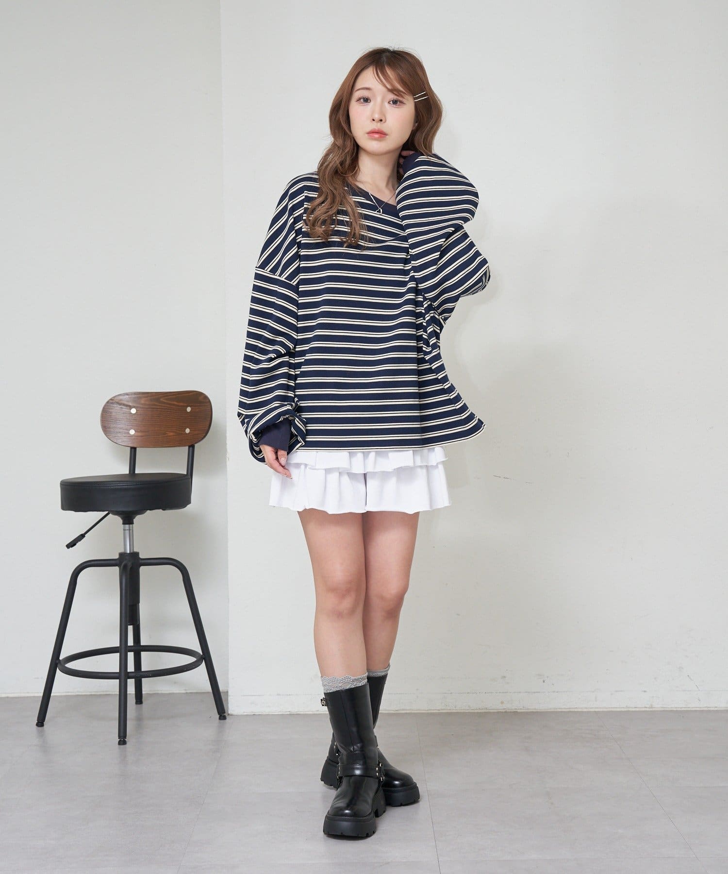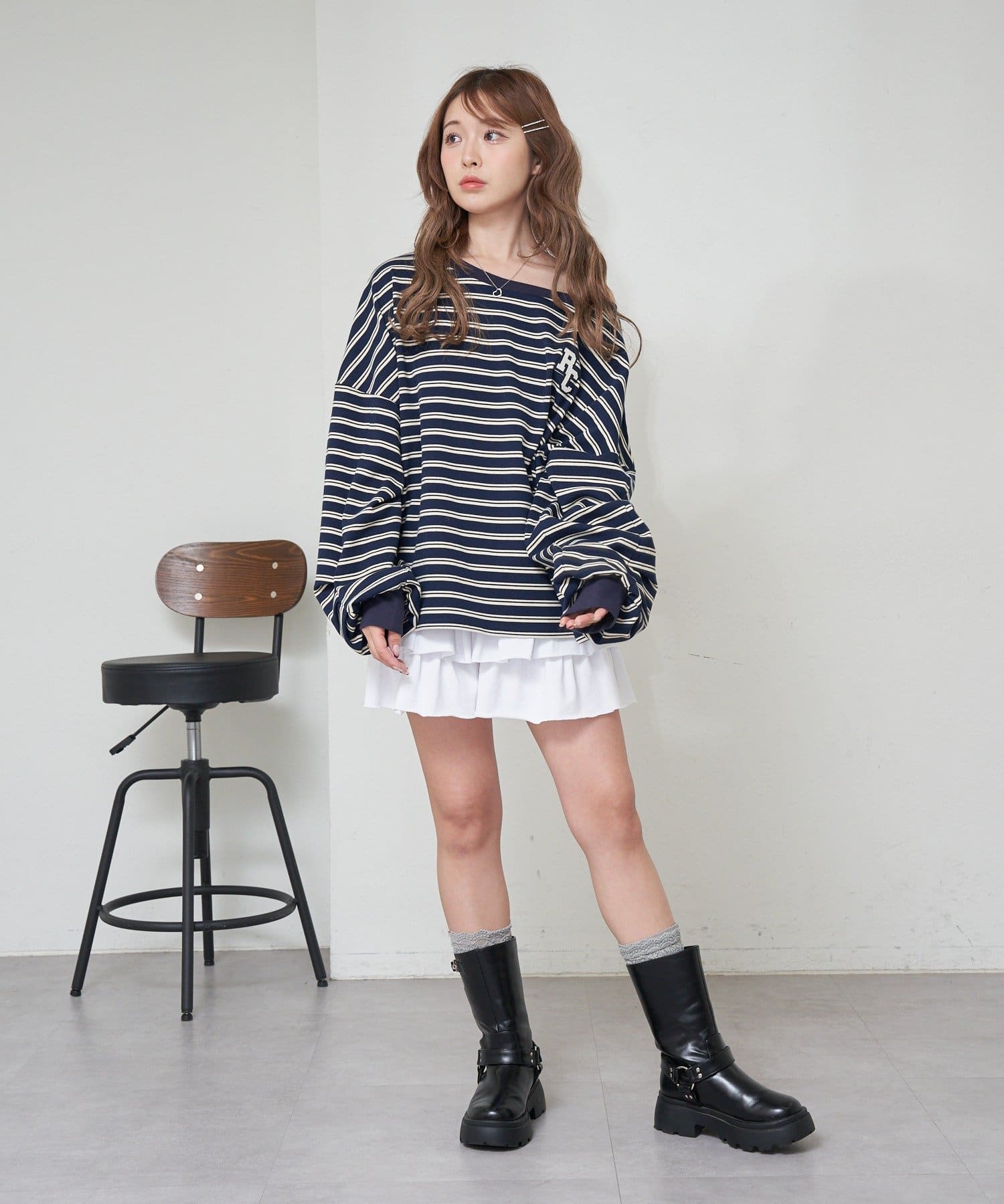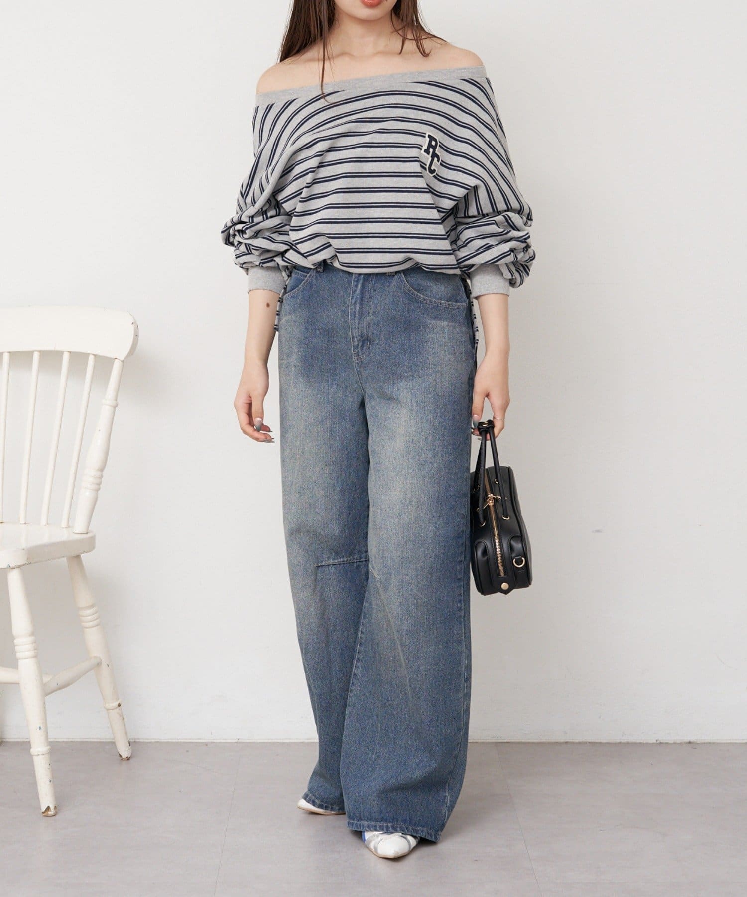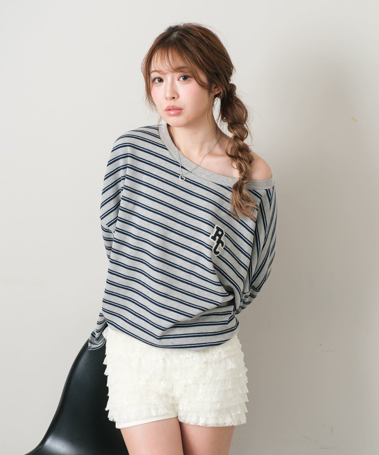 ルーズTシャツ / オフショル / ワンショル / マルチボーダー
