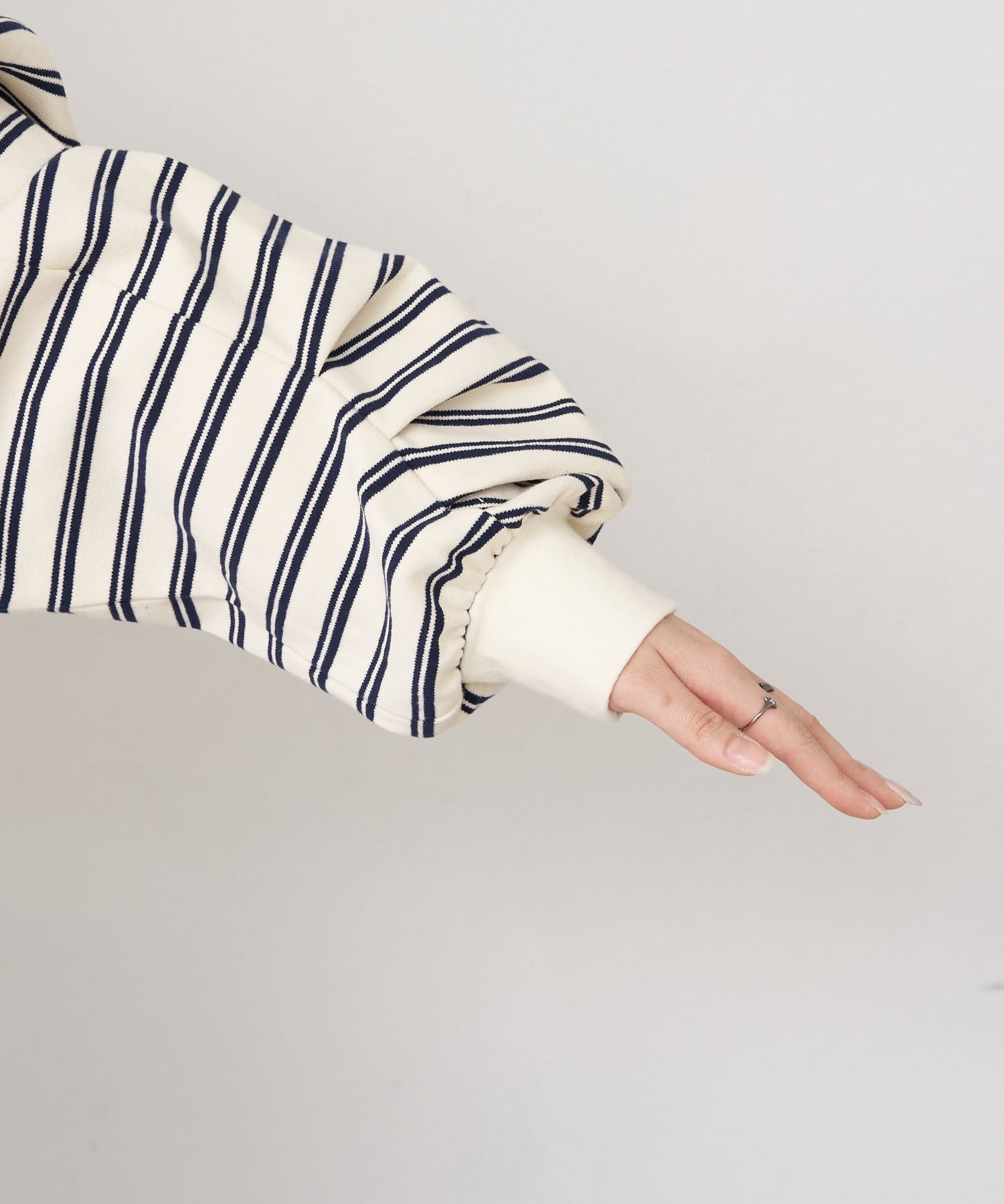 ・ボーダーとロゴデザインがトレンドのスクールライクなアイテム。