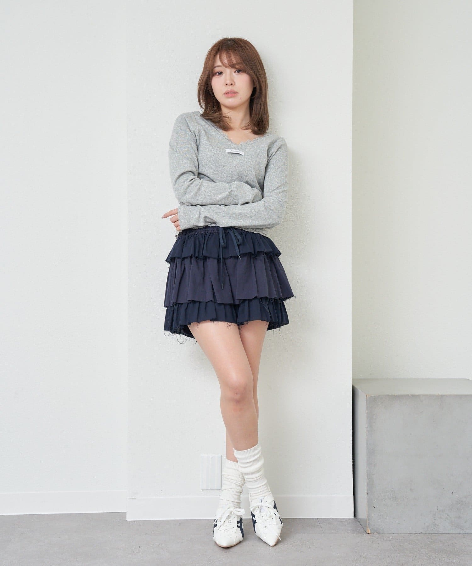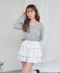 ・ボリュームのあるスカート合わせでトレンドライクに。