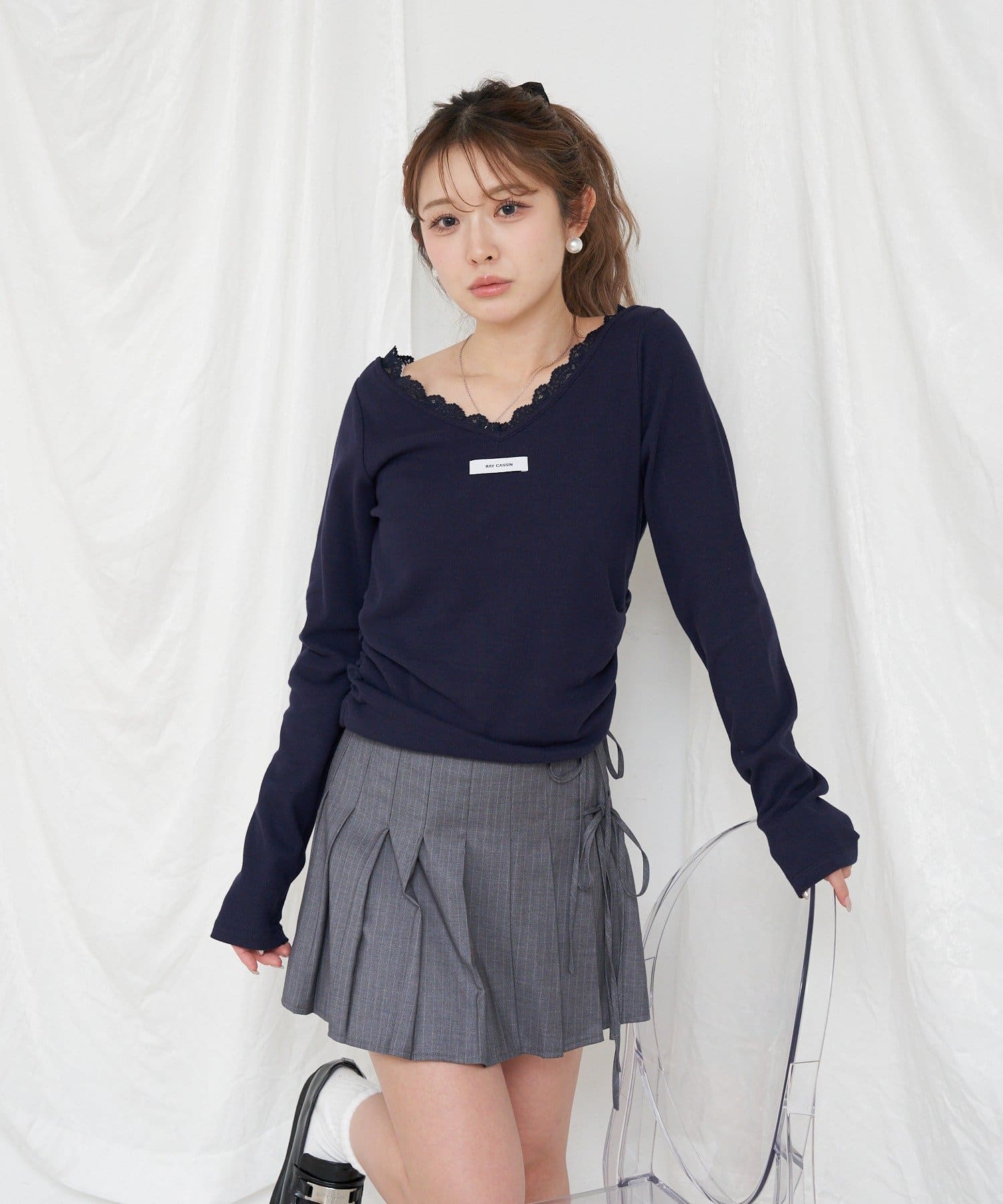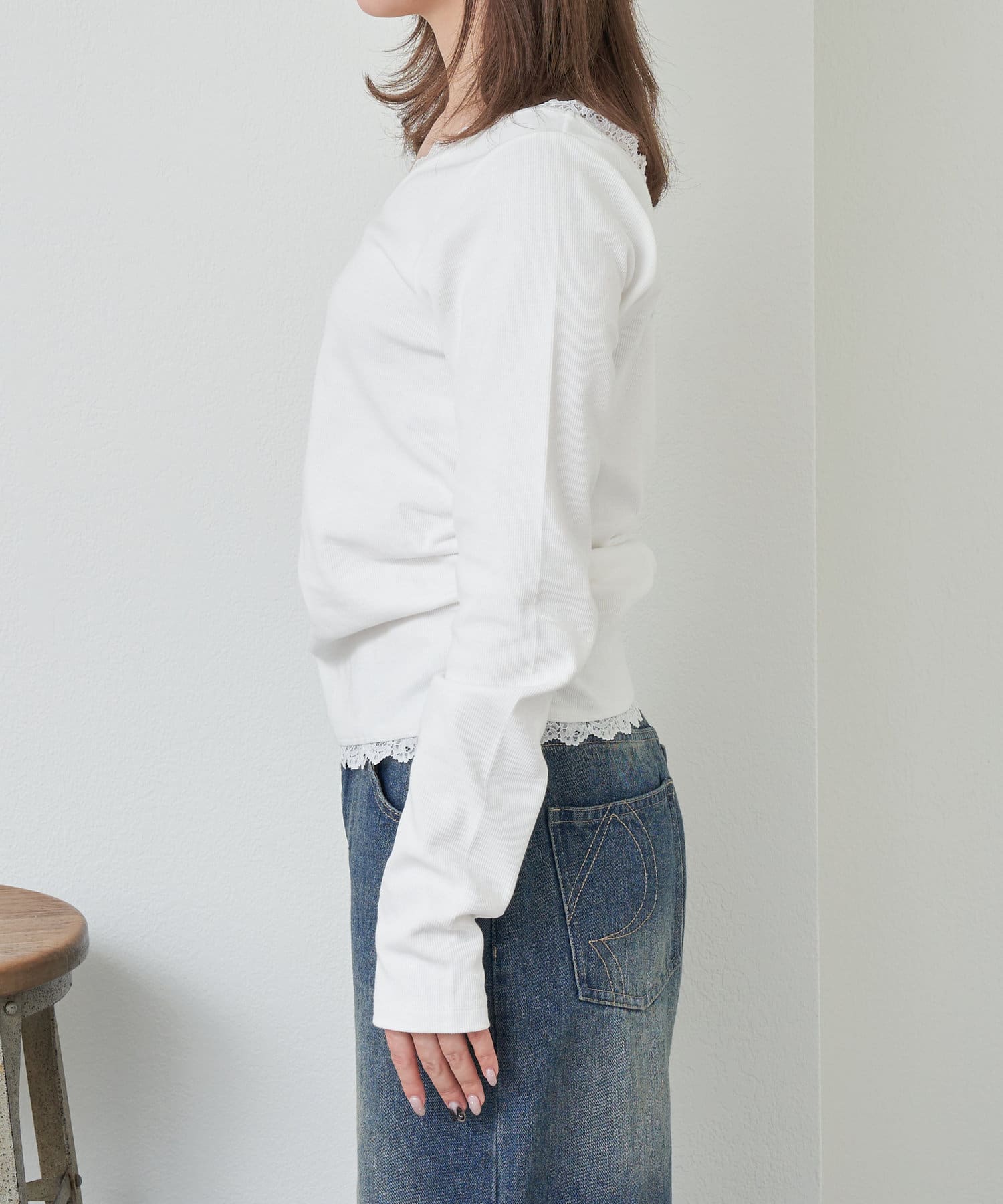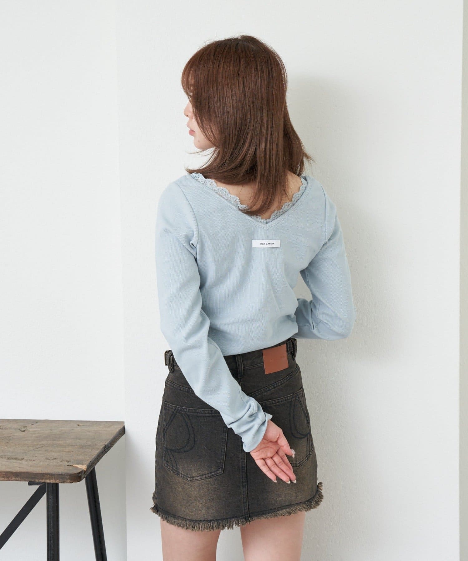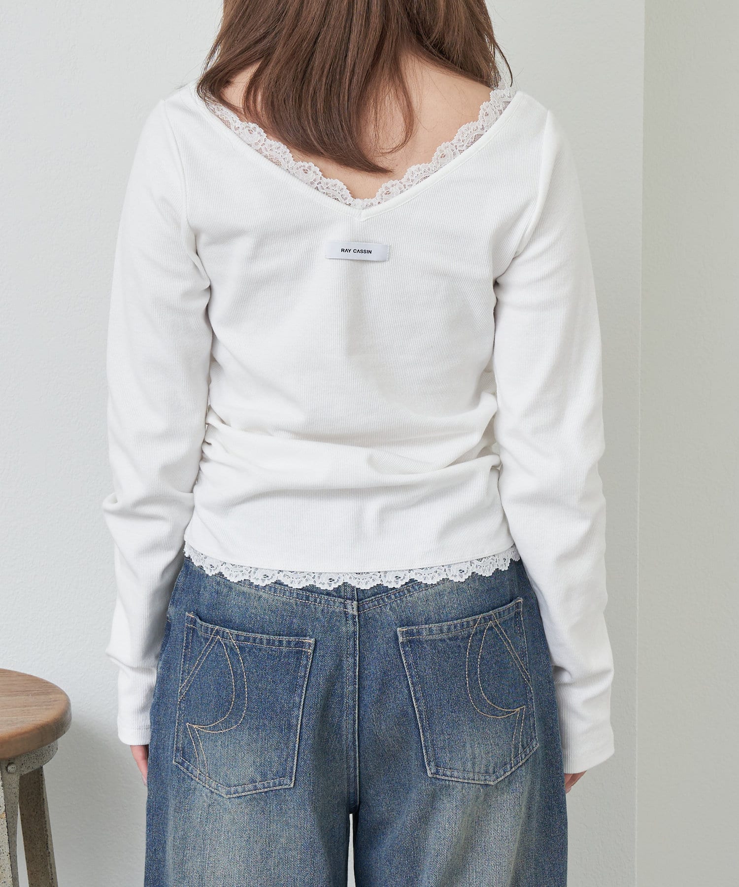 Vネック / ロングTシャツ / レース付き / レースデザイン