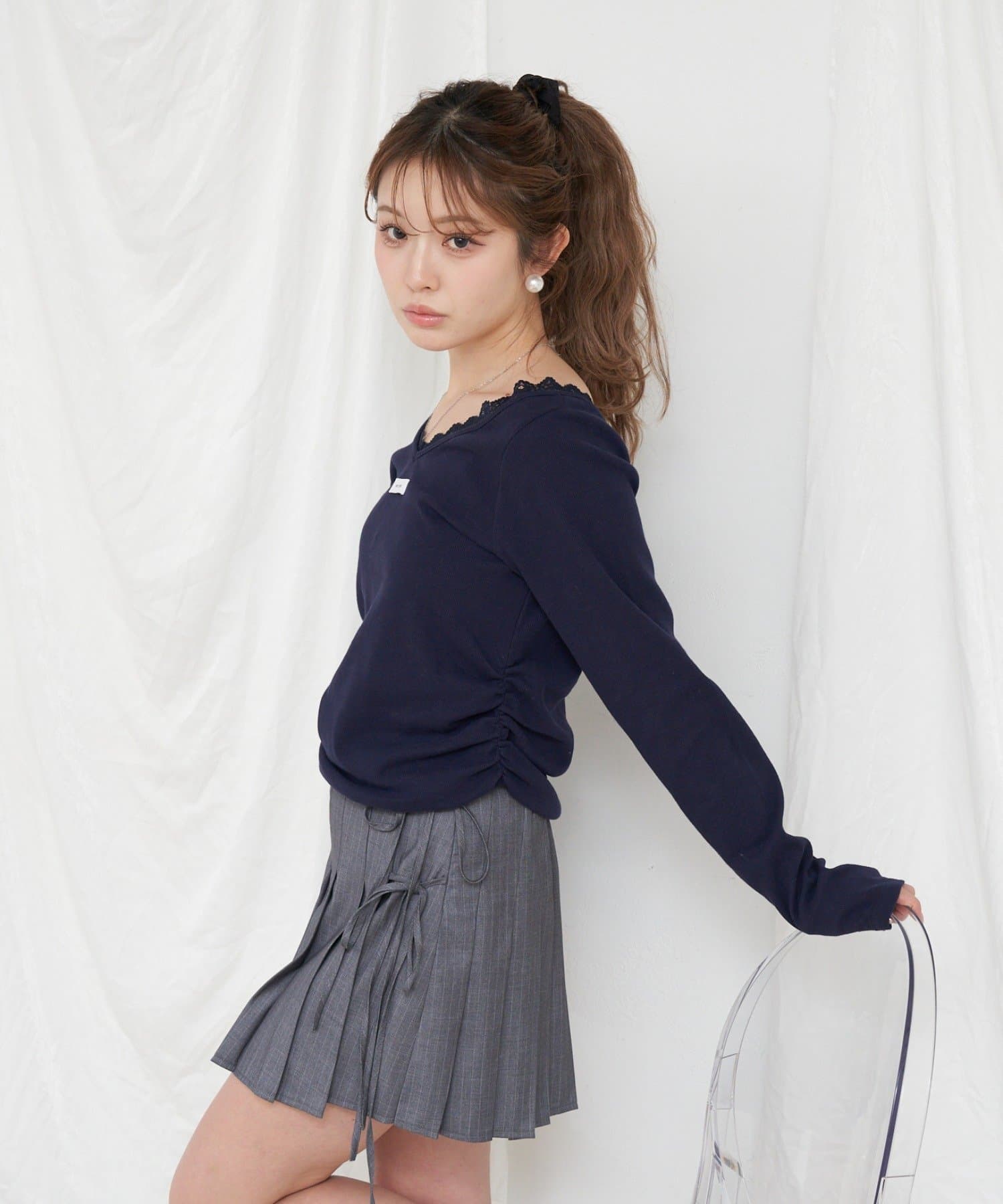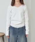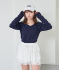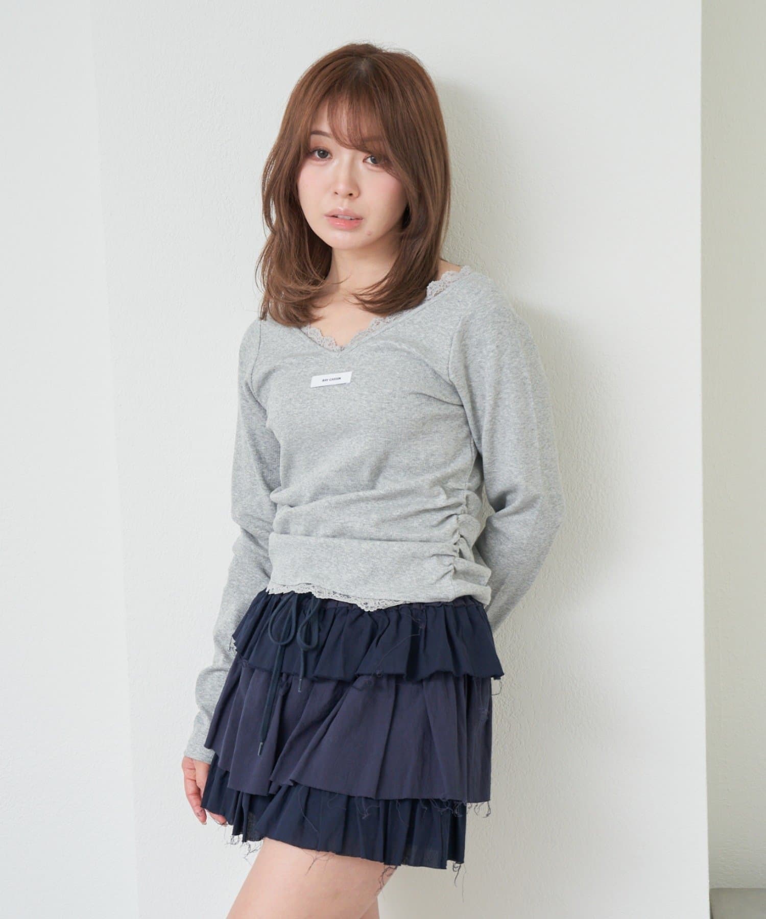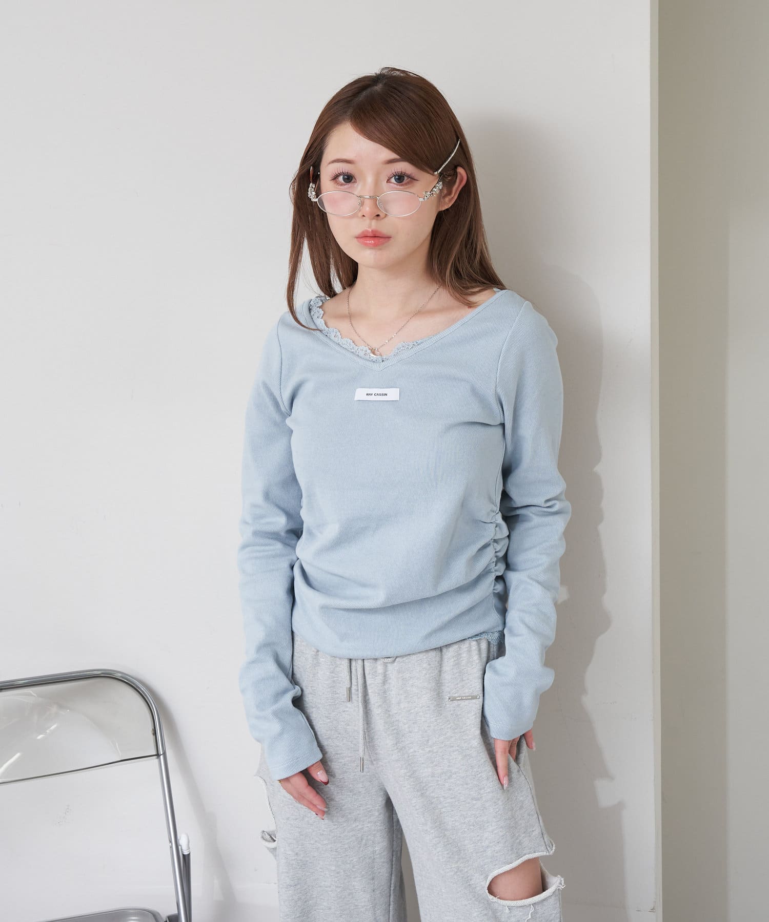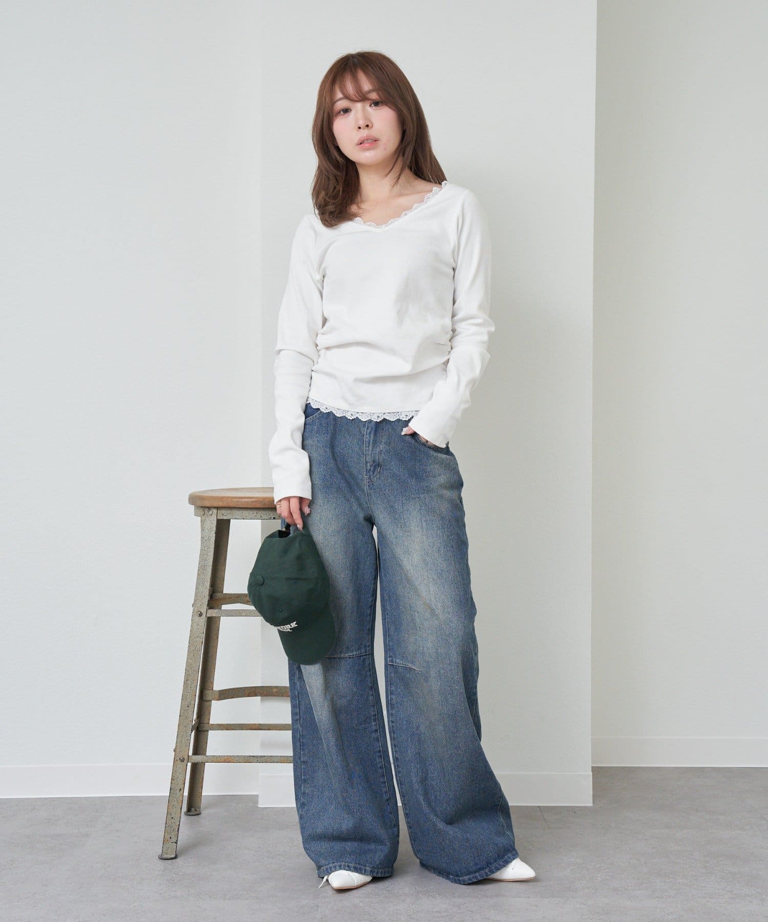 Vネック / ロングTシャツ / レース付き / レースデザイン