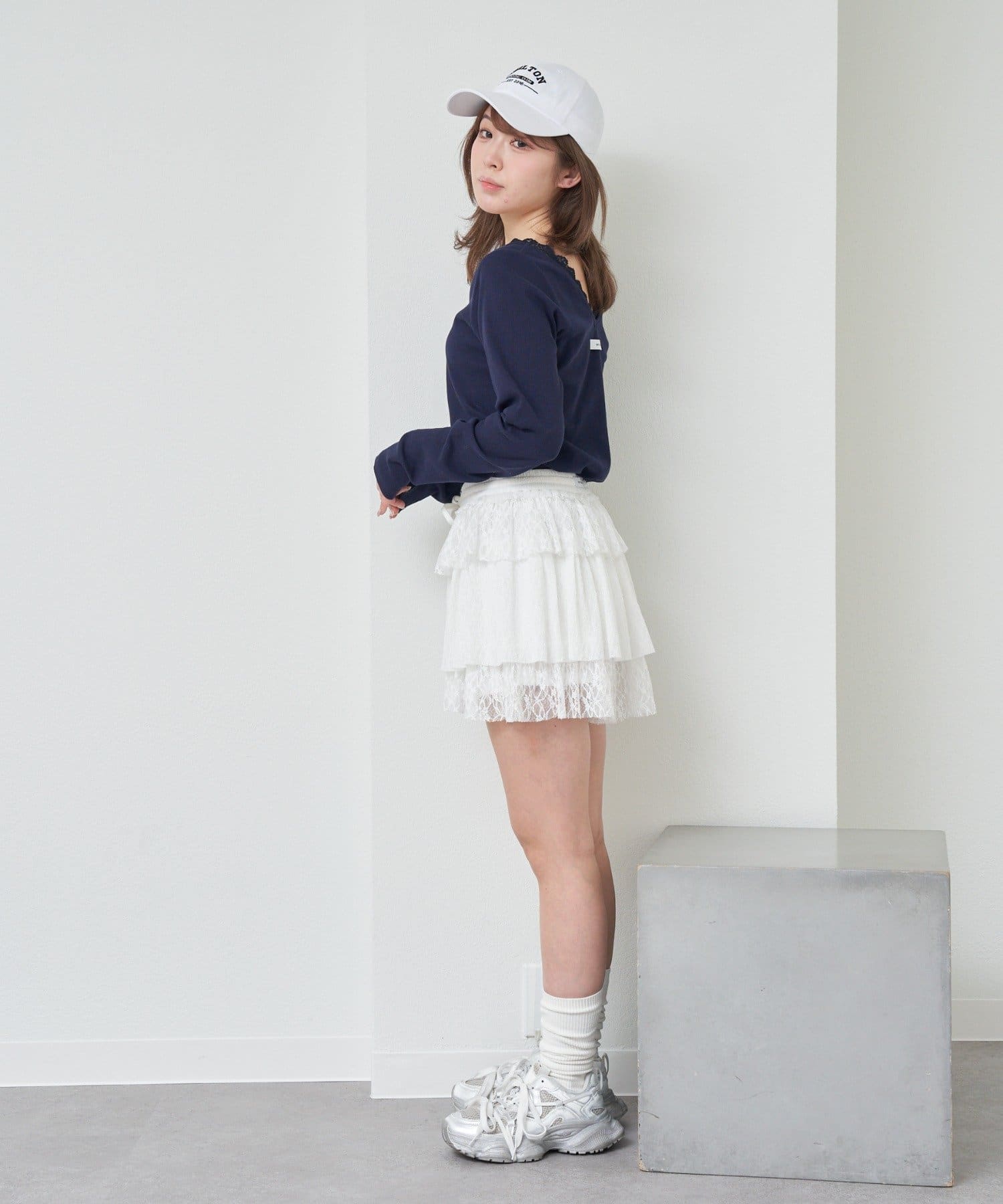 ・スッキリとしたシルエットとレースデザインが女性らしいアイテム。