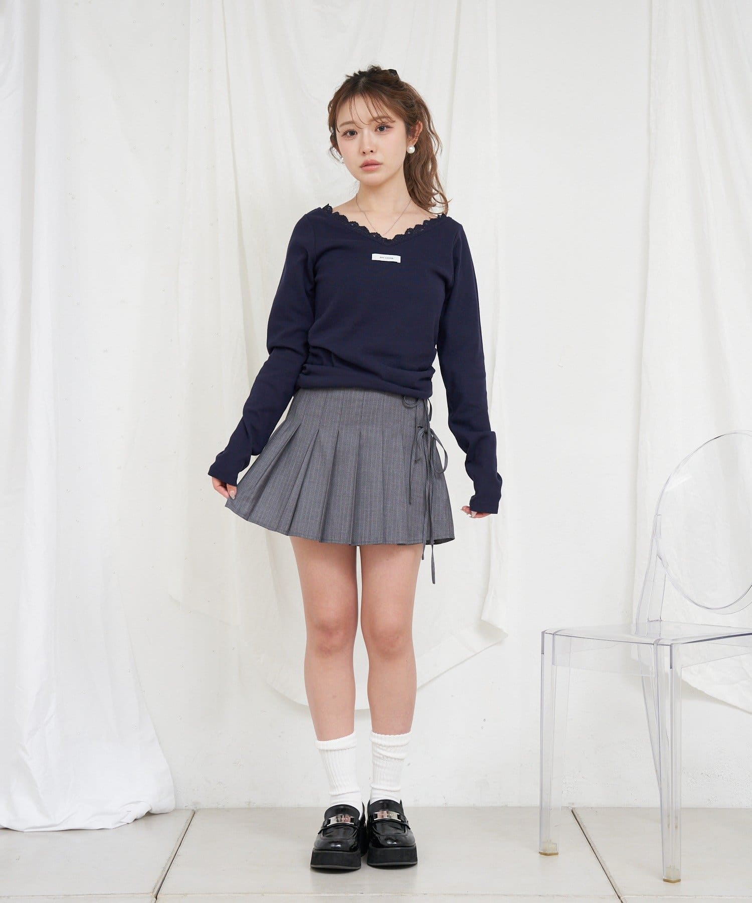 Vの部分が深いですが内側にレースが付いている為、胸元がぺたんとならずに着用できます。