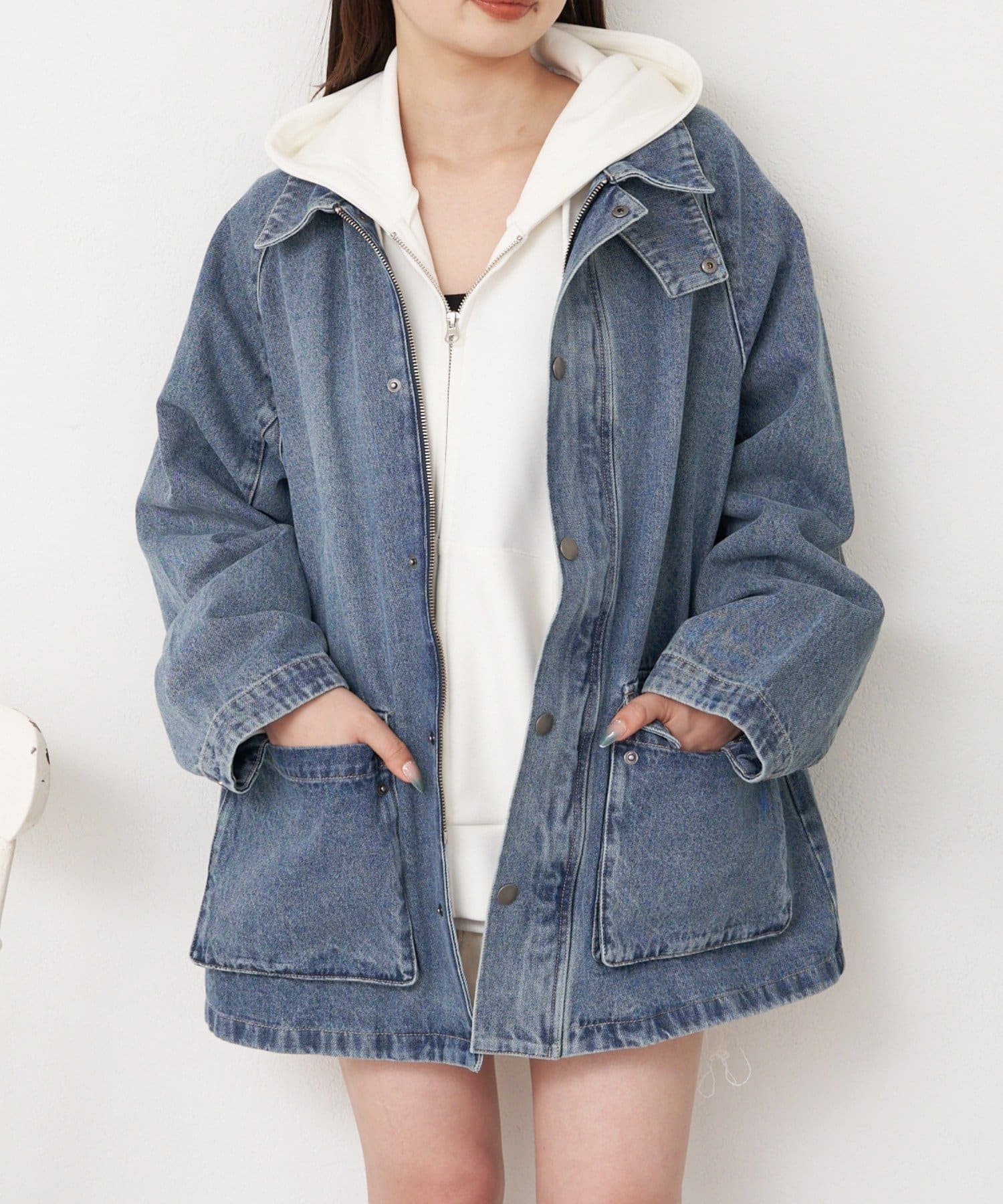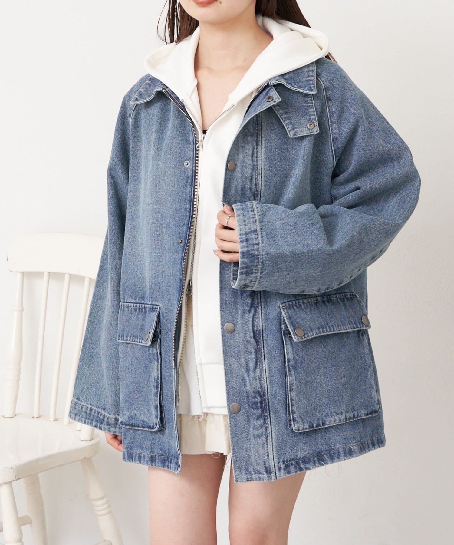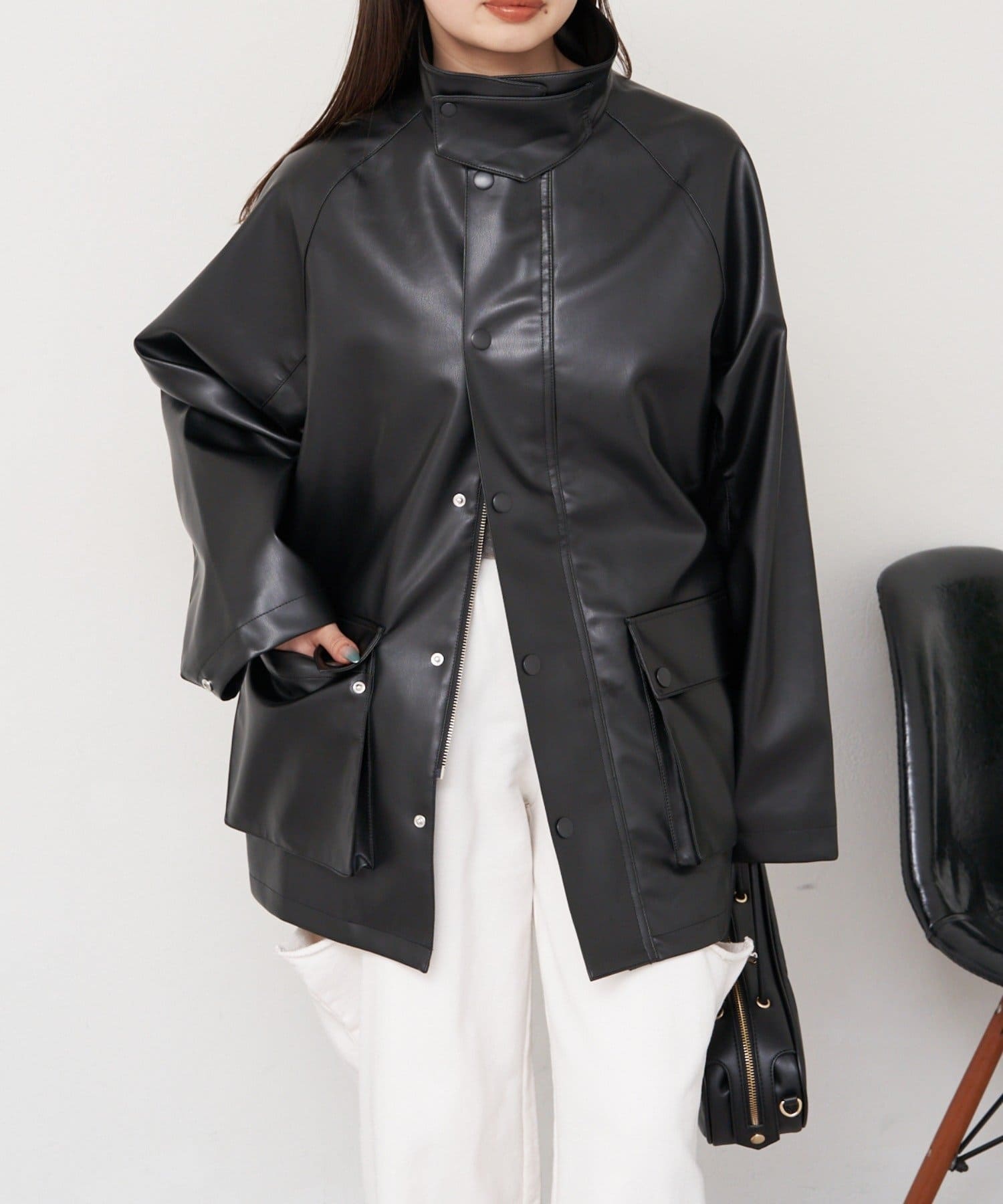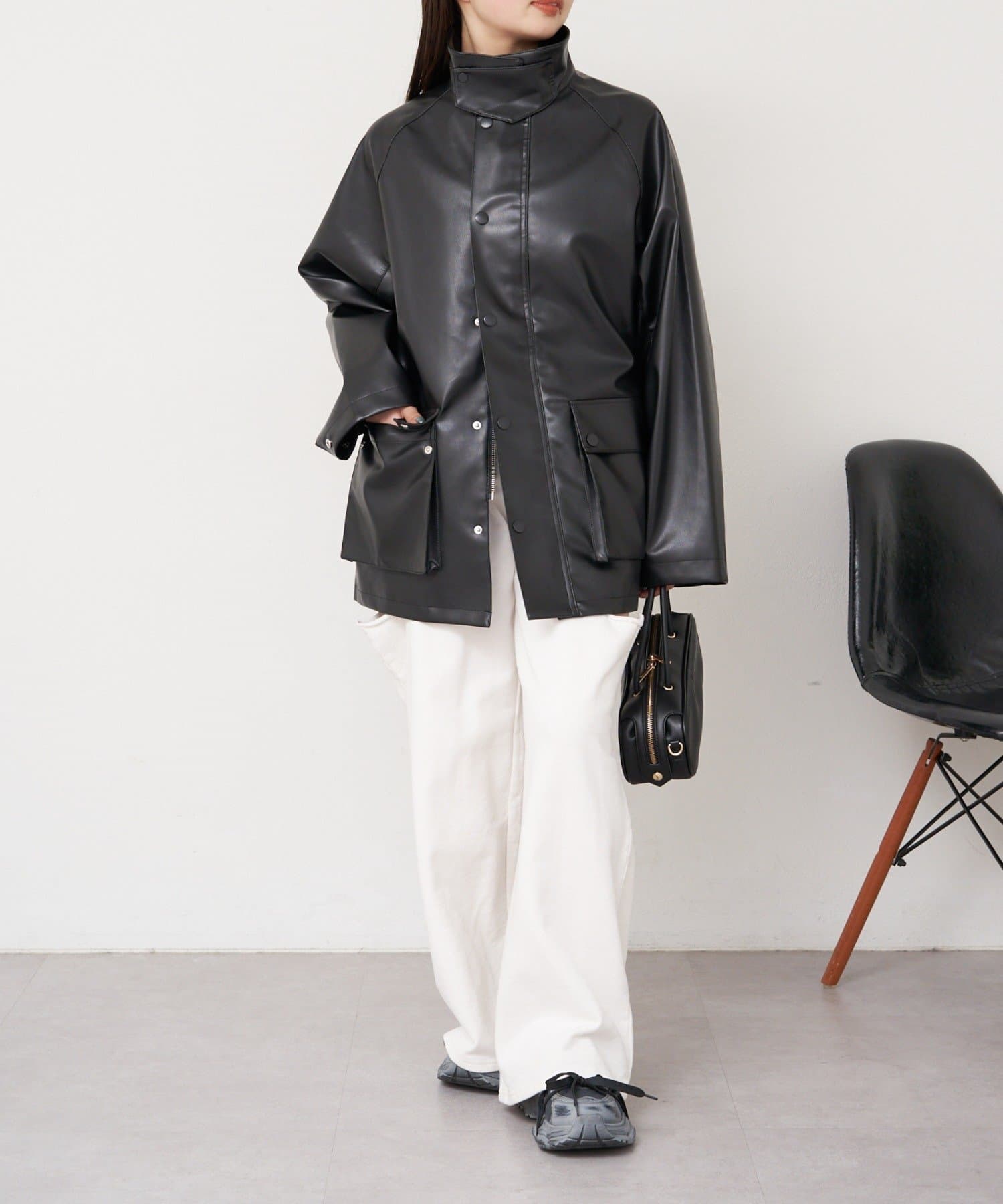 細見えアウター / スタンドカラー / デニム / レザー / ワーク