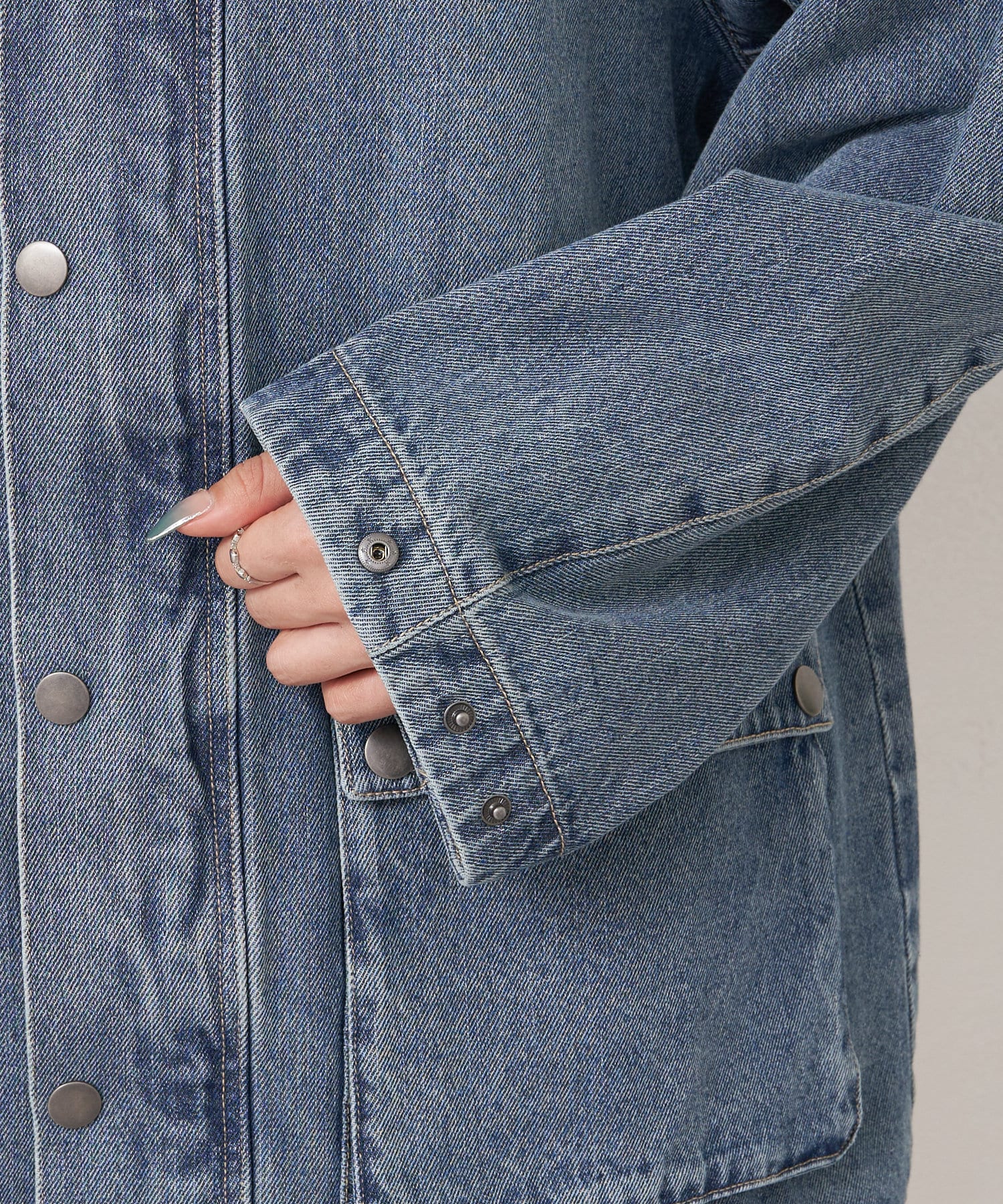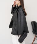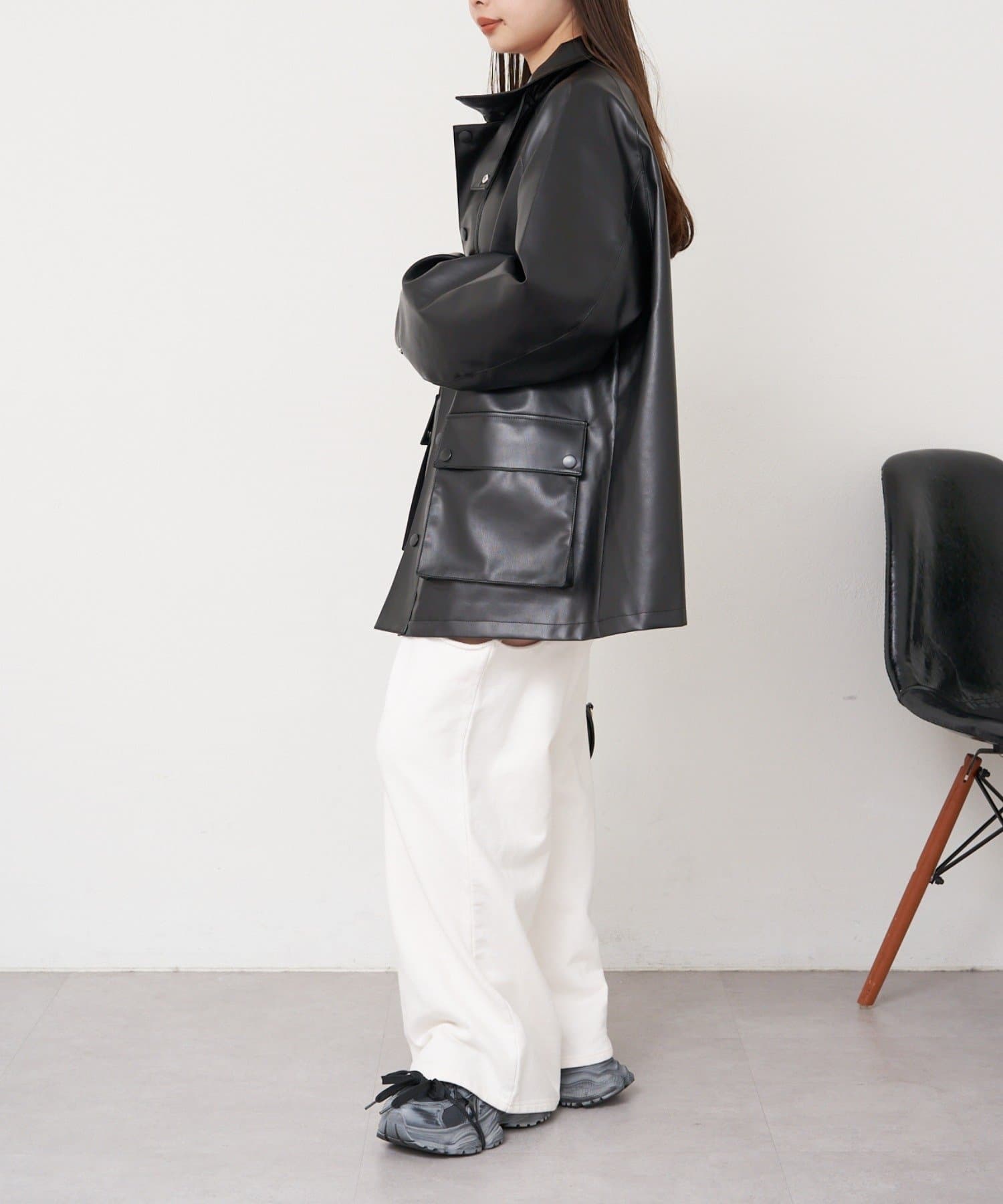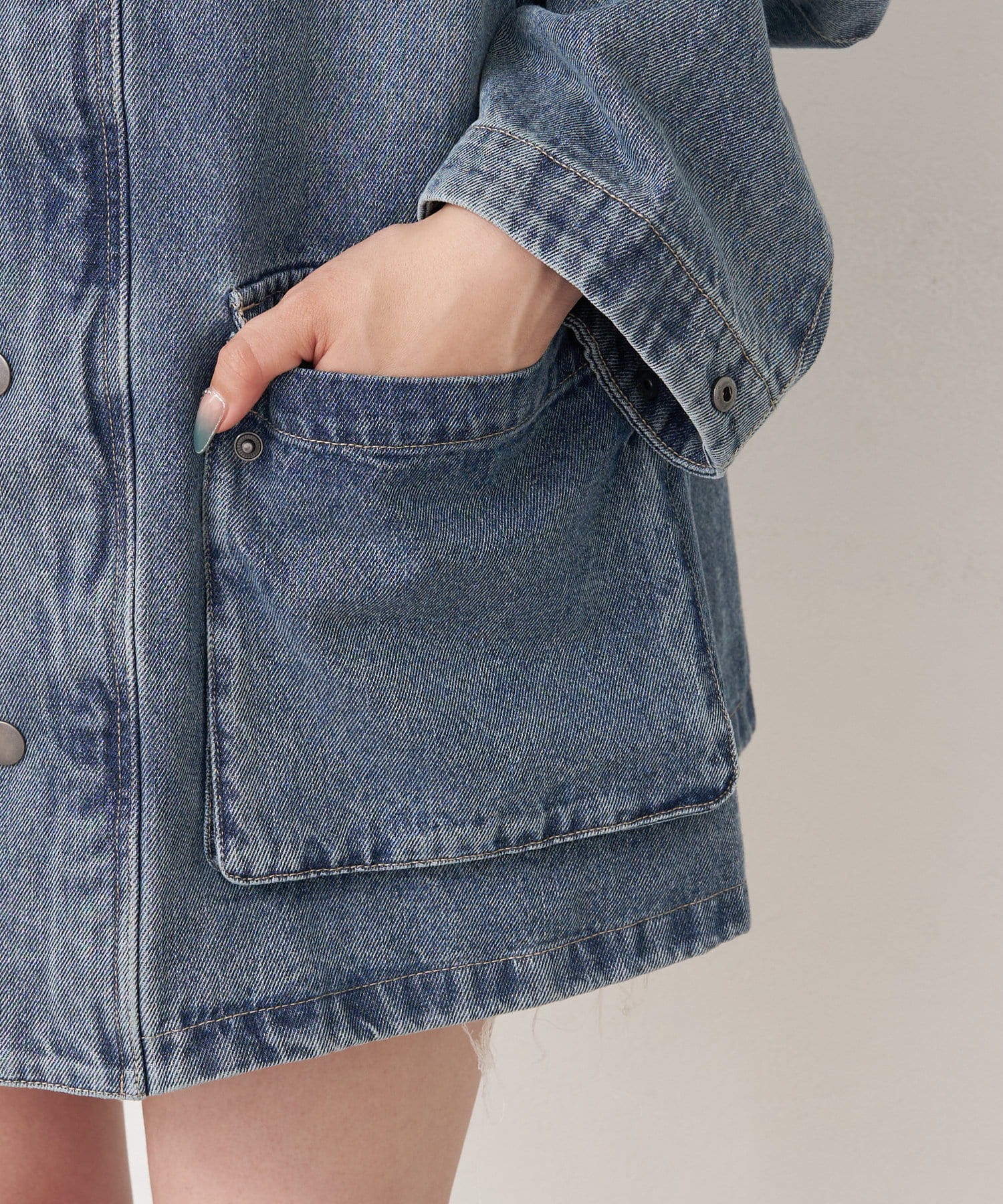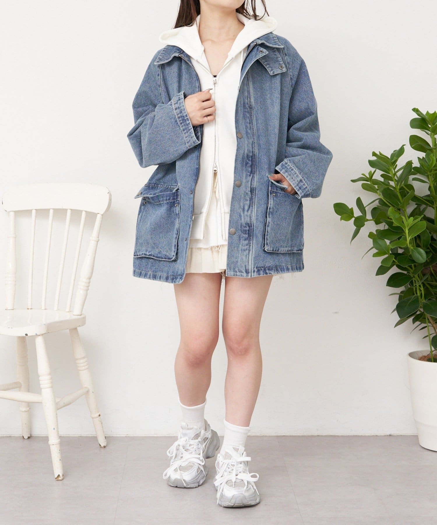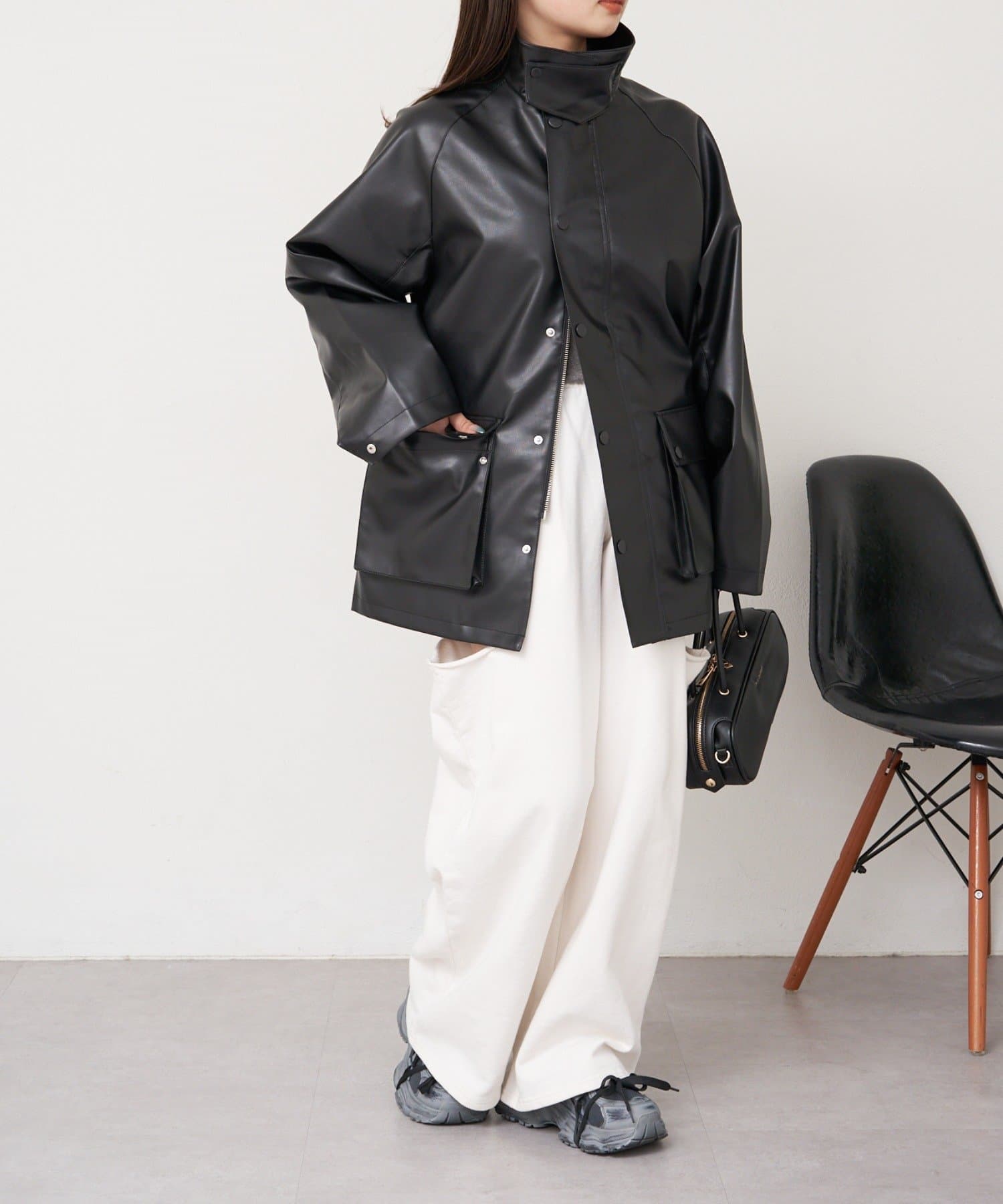 細見えアウター / スタンドカラー / デニム / レザー / ワーク