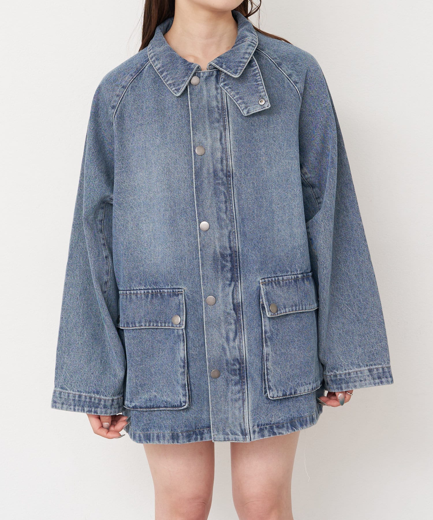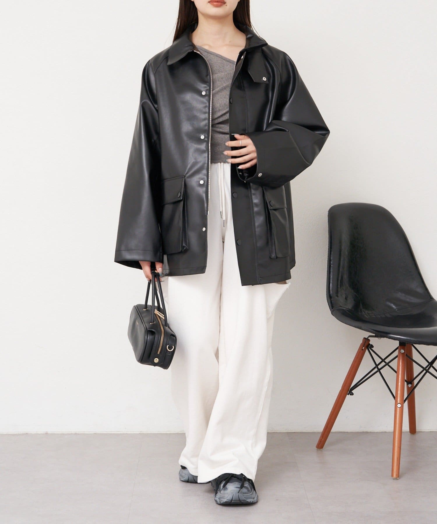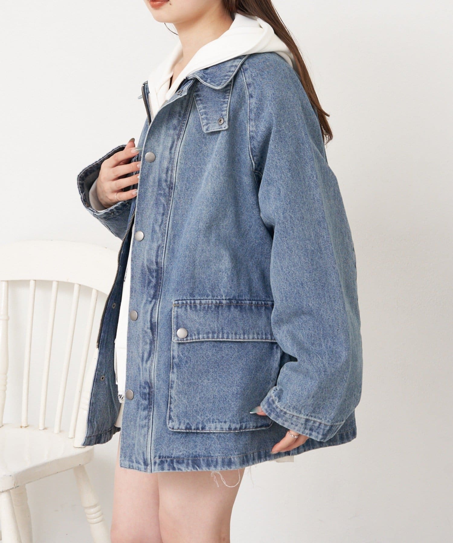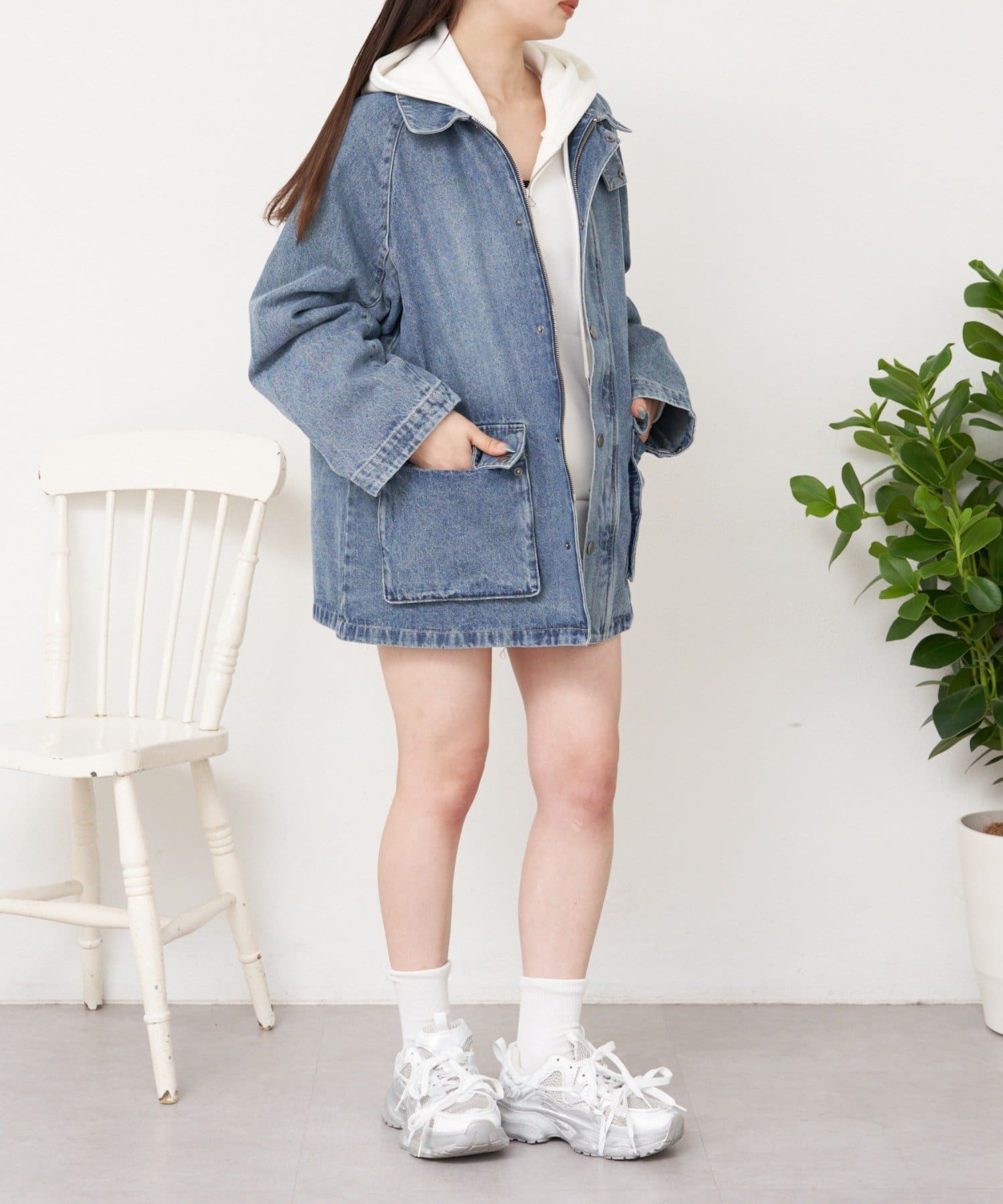 細見えアウター / スタンドカラー / デニム / レザー / ワーク