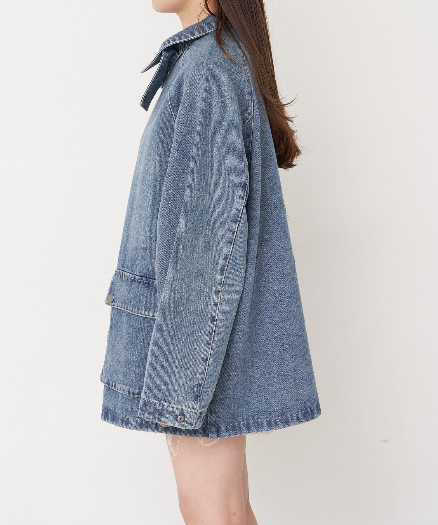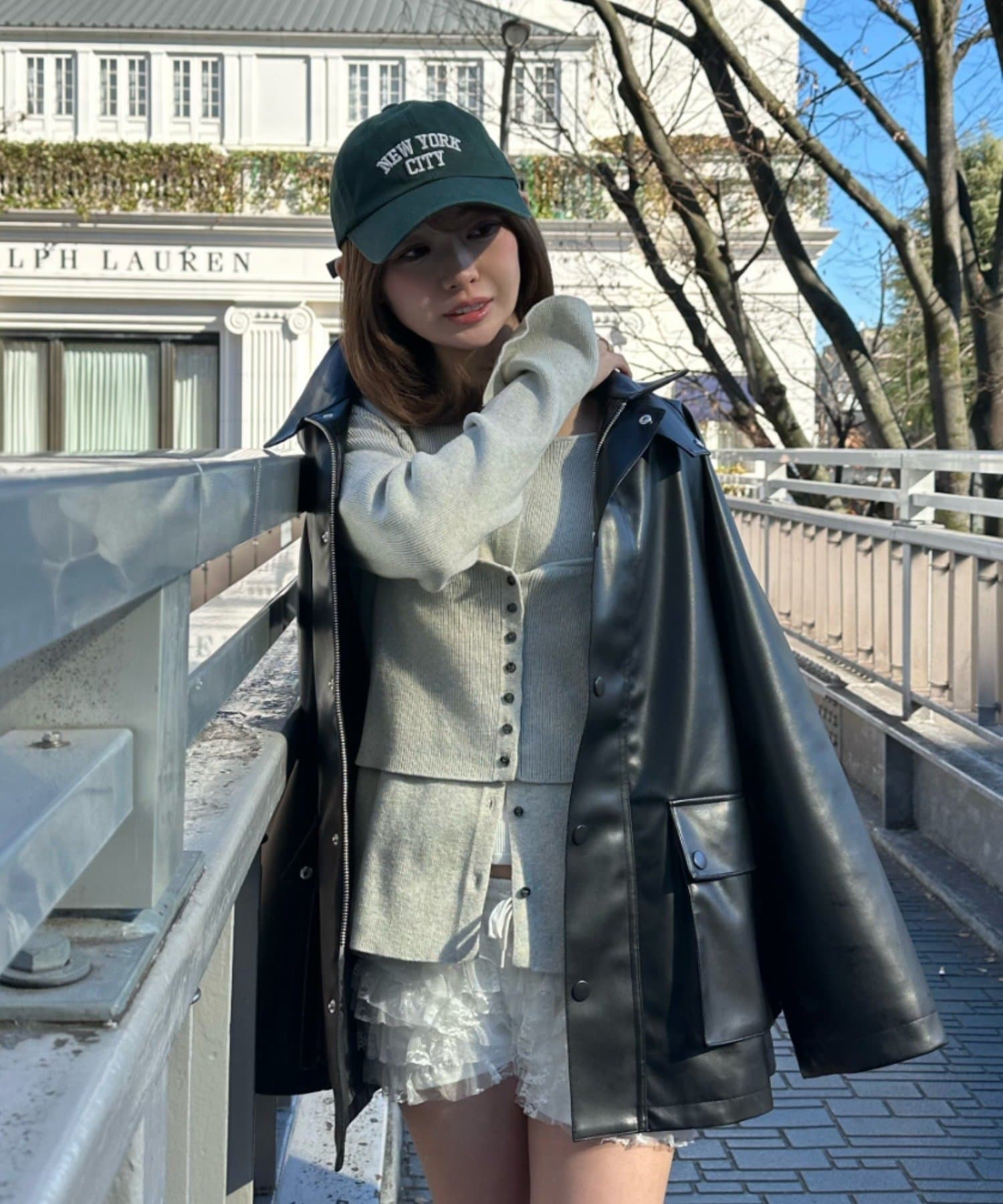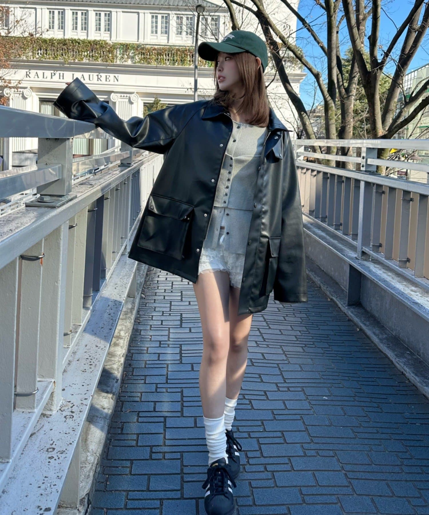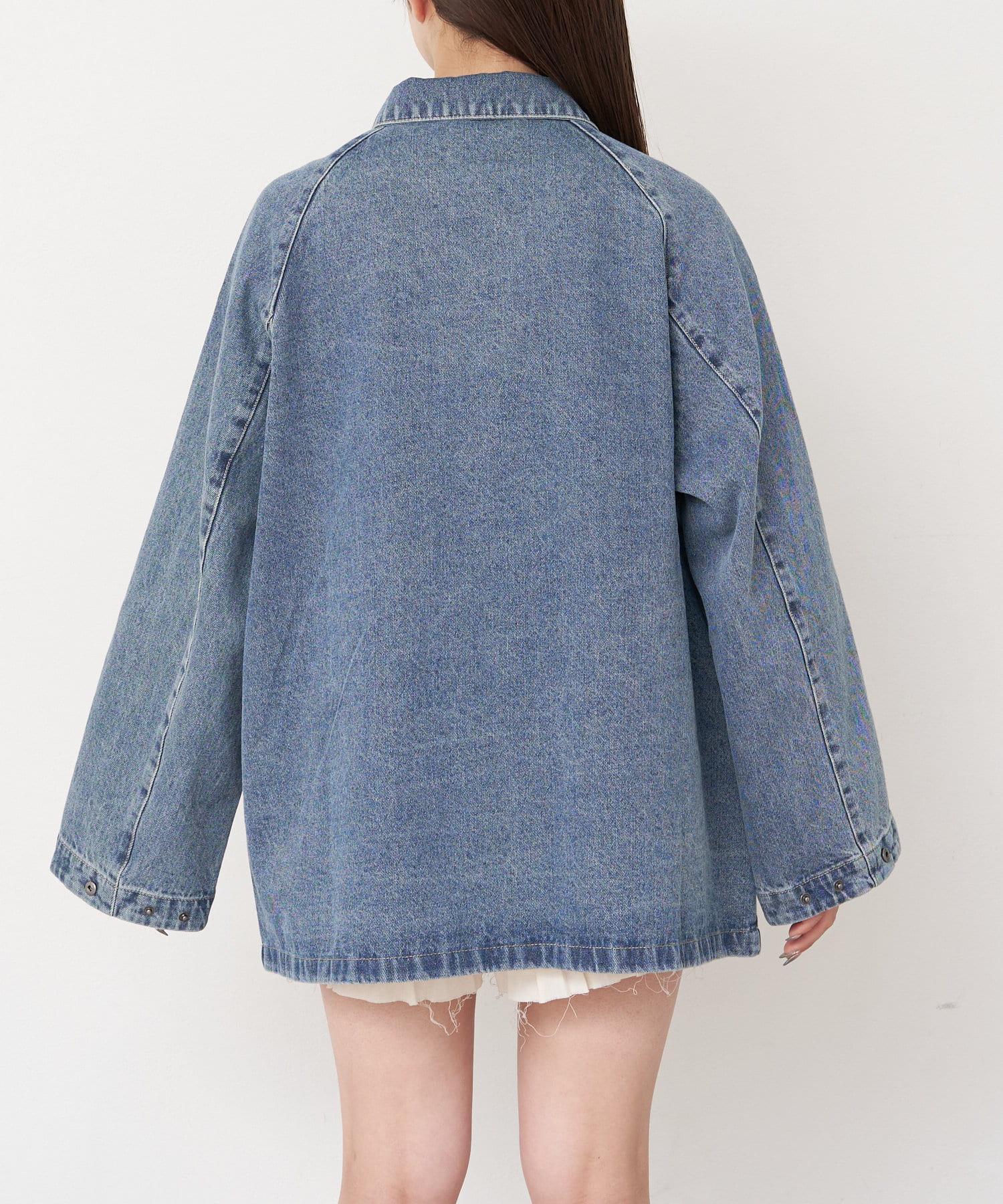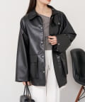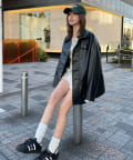 細見えアウター / スタンドカラー / デニム / レザー / ワーク