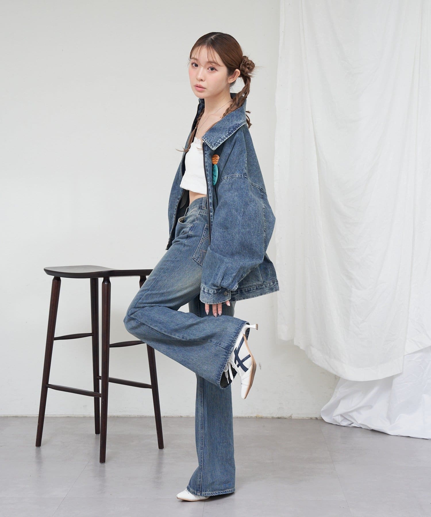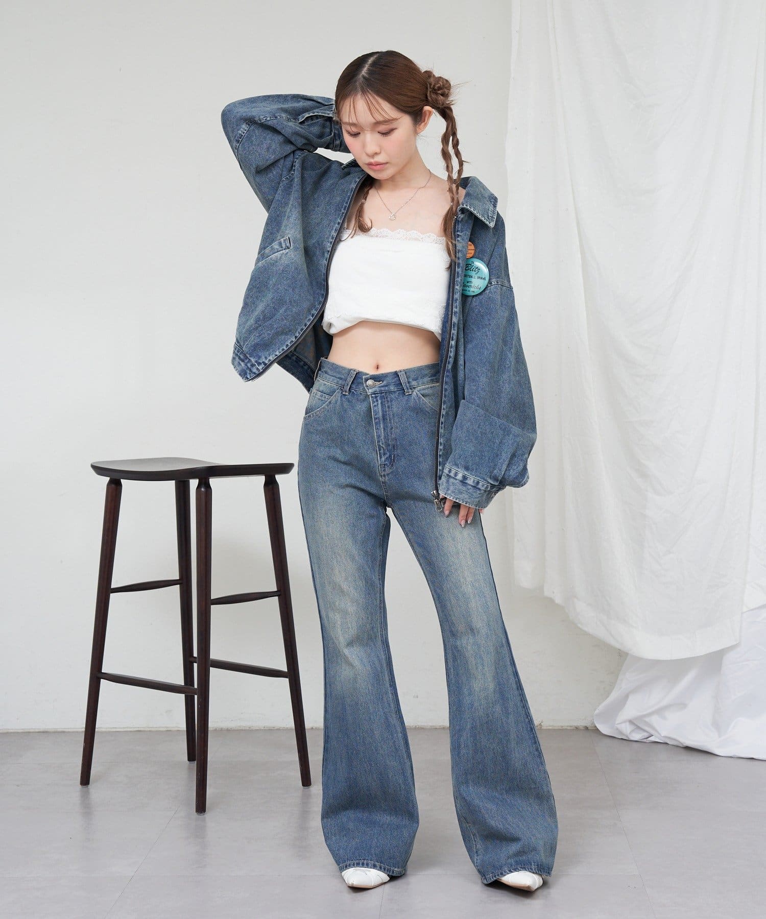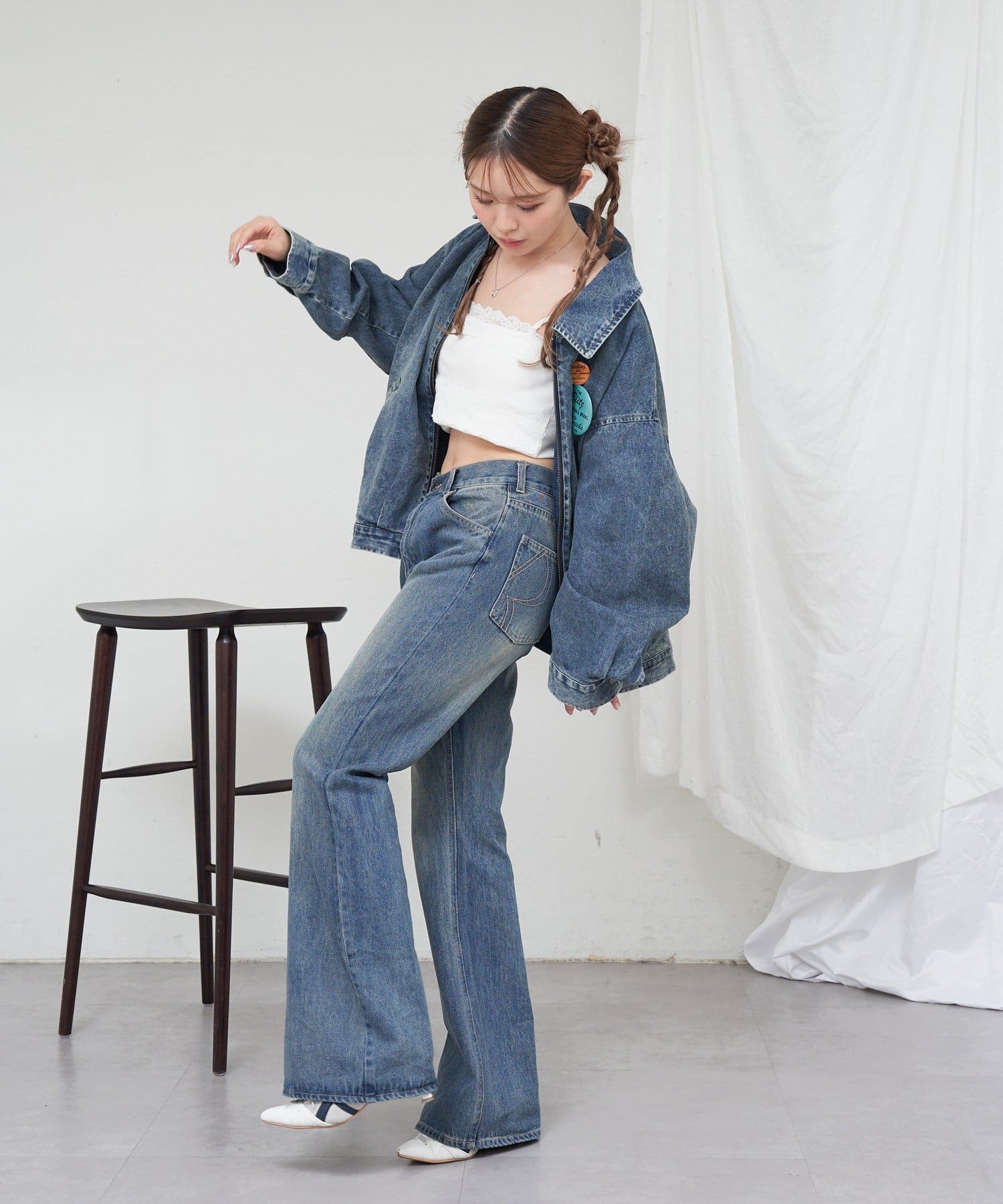 【サイズ展開あり/ウエスト調整可】フレアデニムパンツ