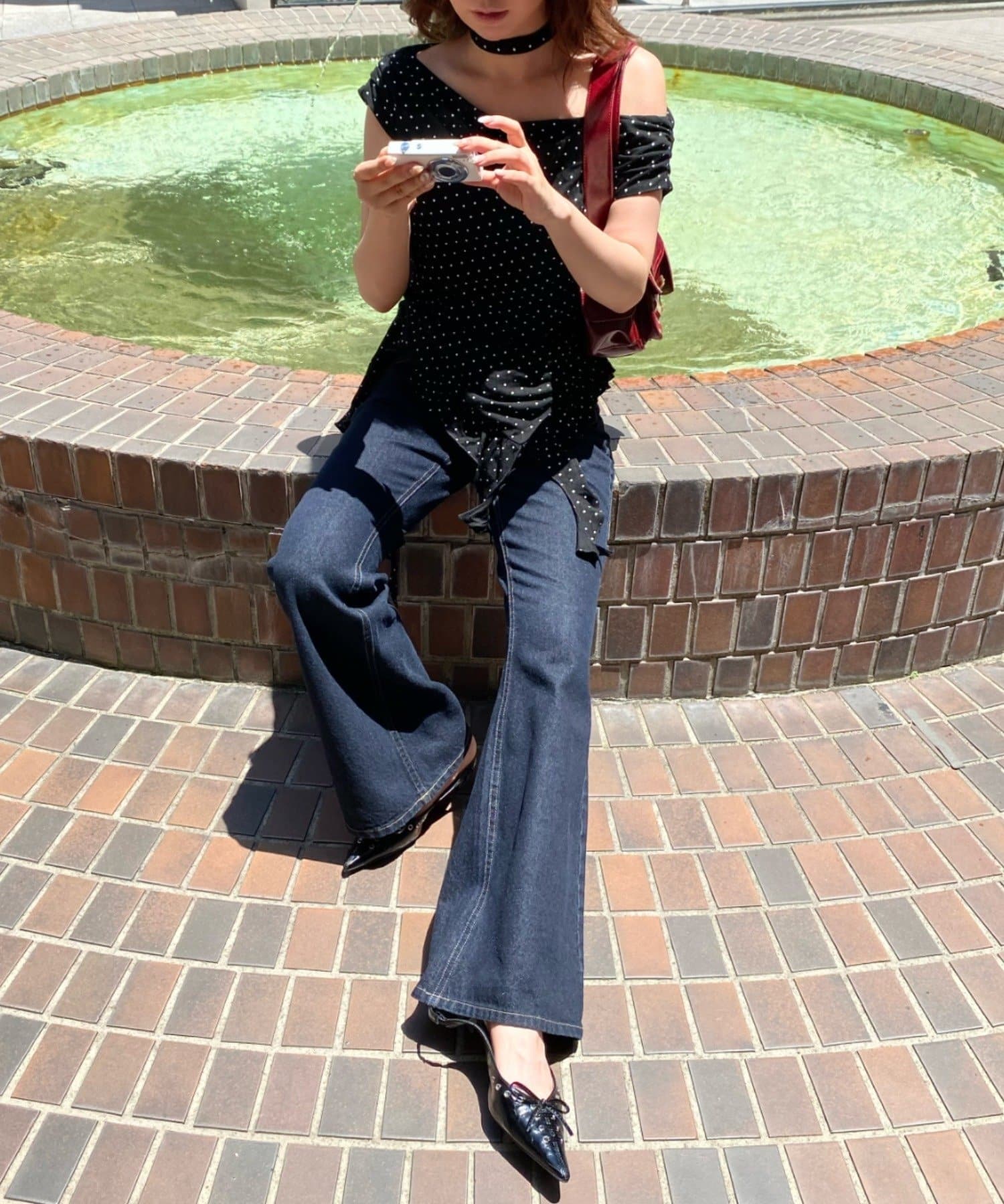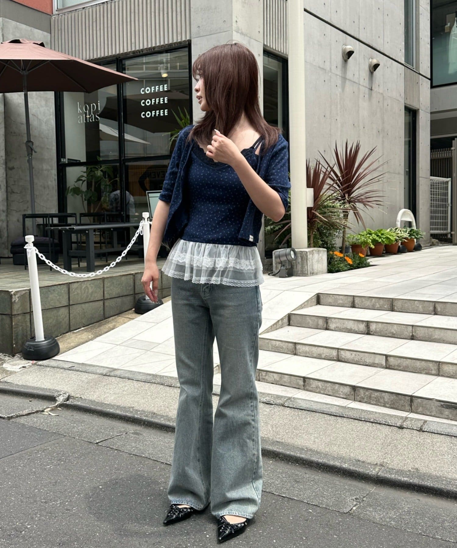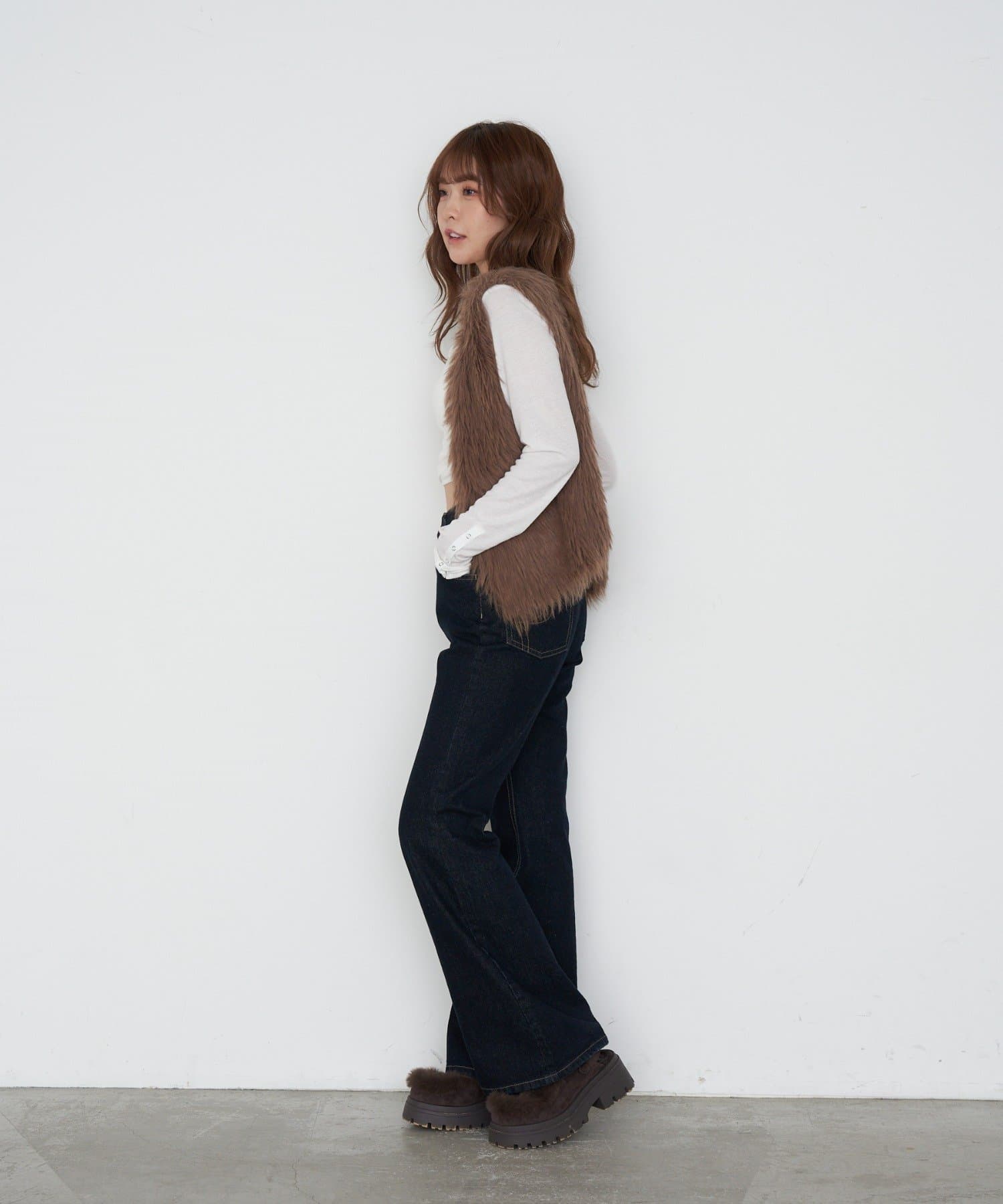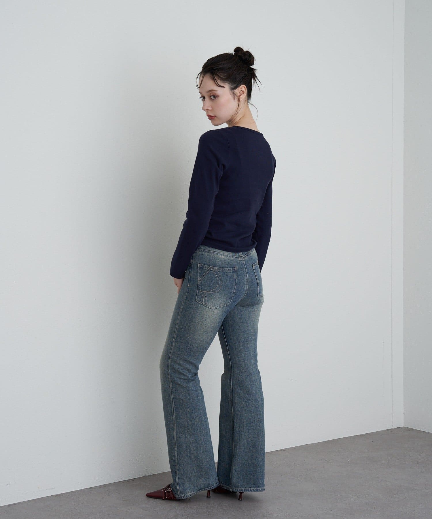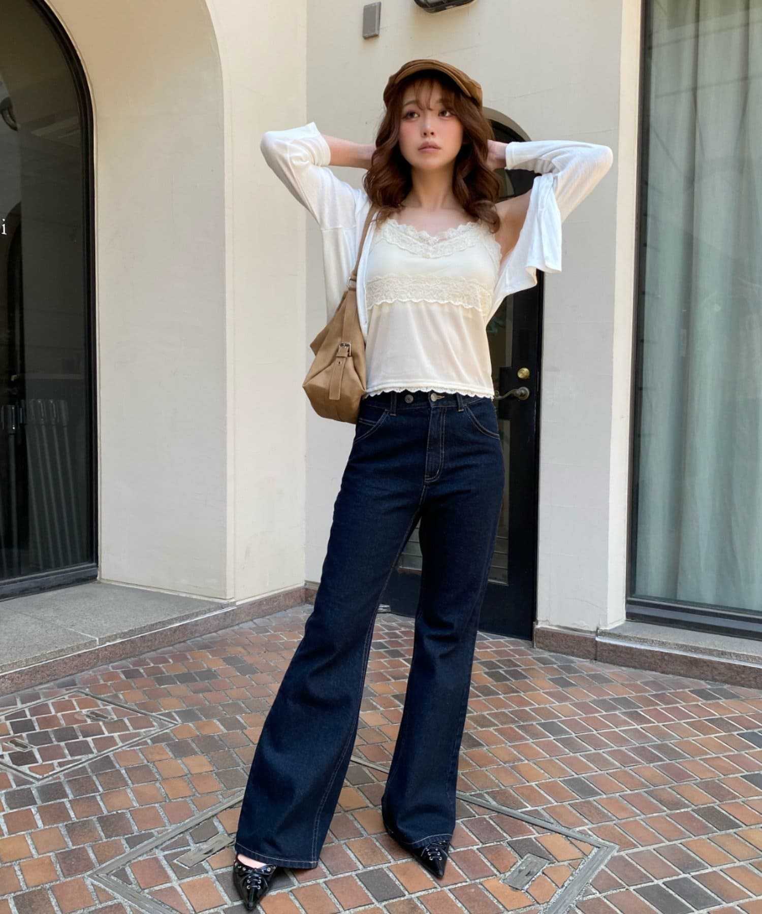 脚のラインがスラッと見えるフレアデニムは、ボリュームがあるニットなど、冬の定番アイテムとの相性も抜群◎