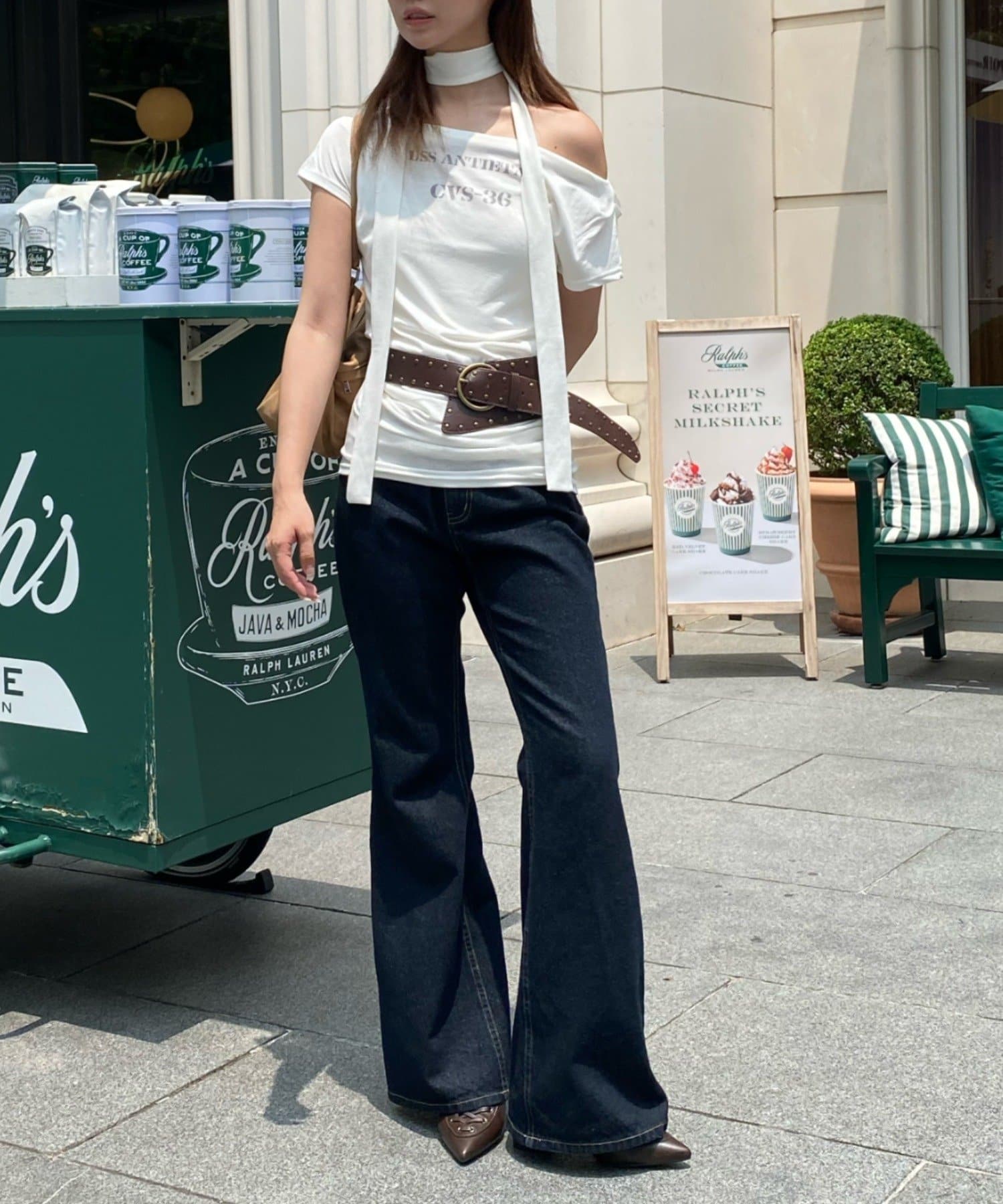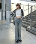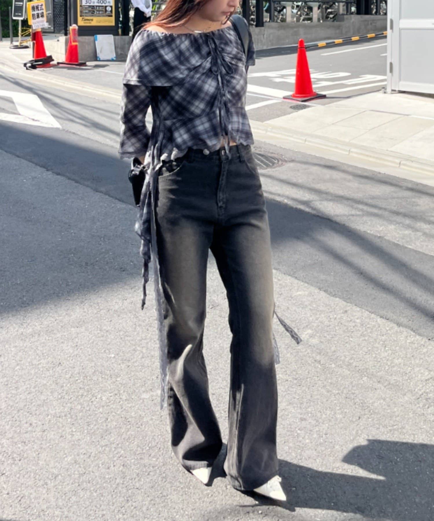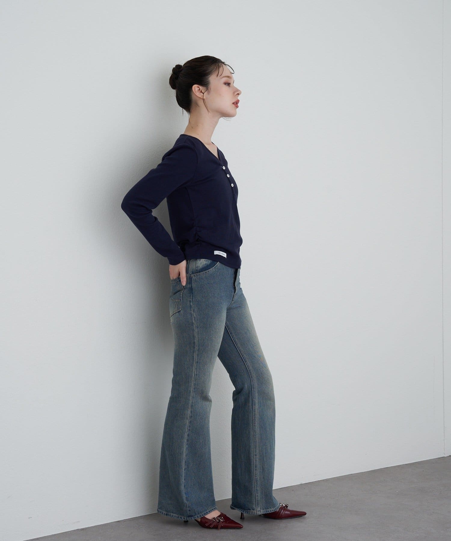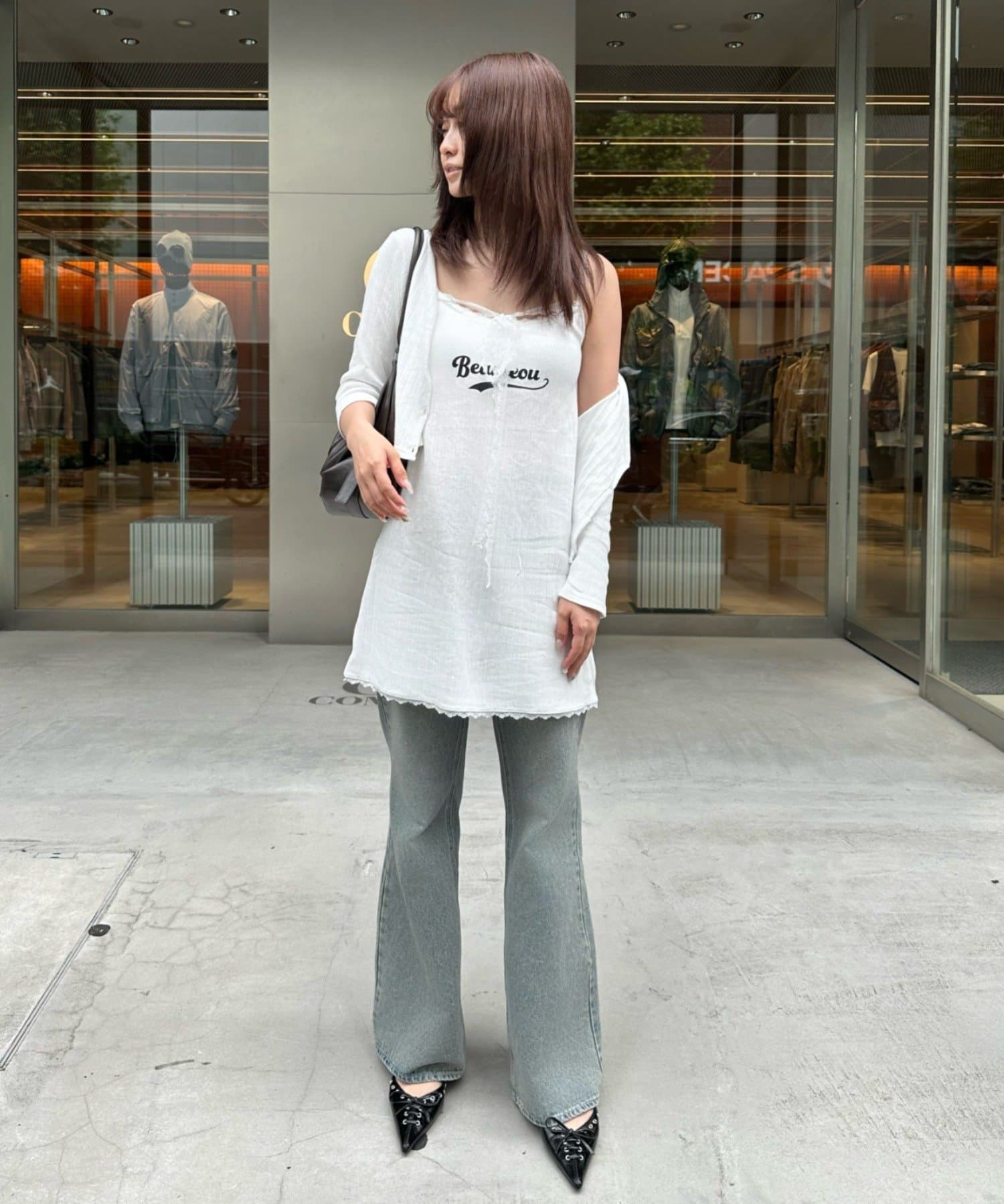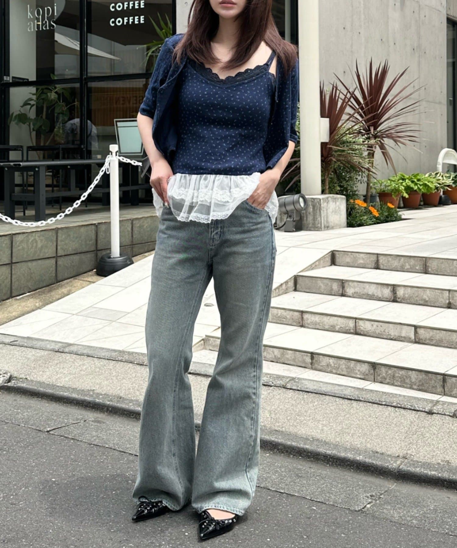 脚のラインがスラッと見えるフレアデニムは、ボリュームがあるニットなど、冬の定番アイテムとの相性も抜群◎