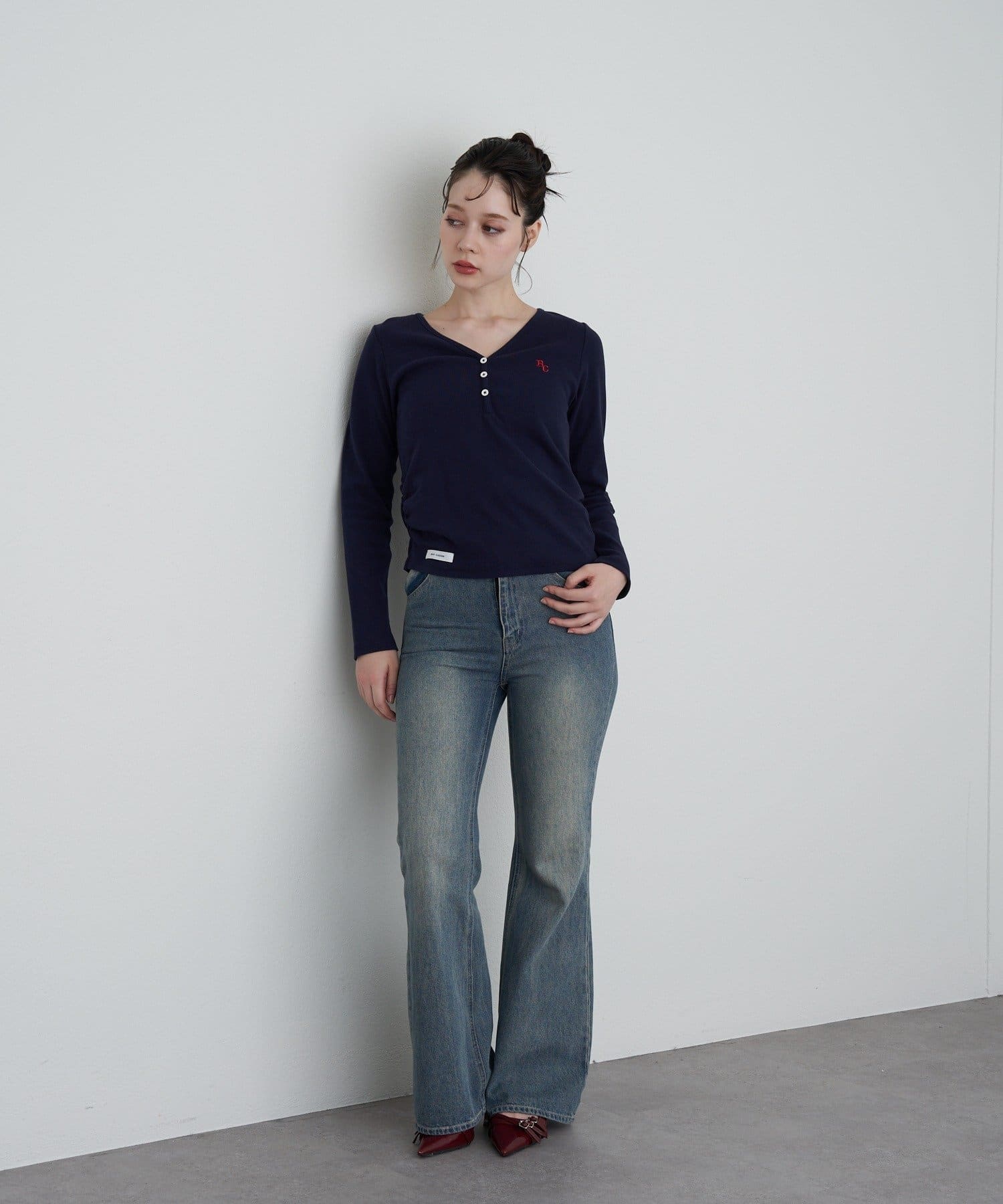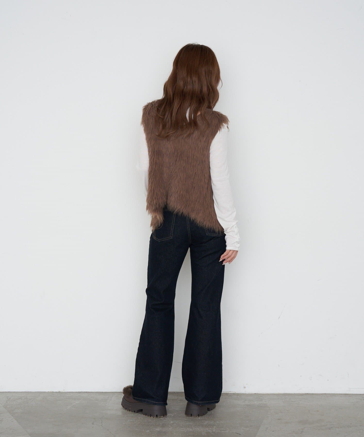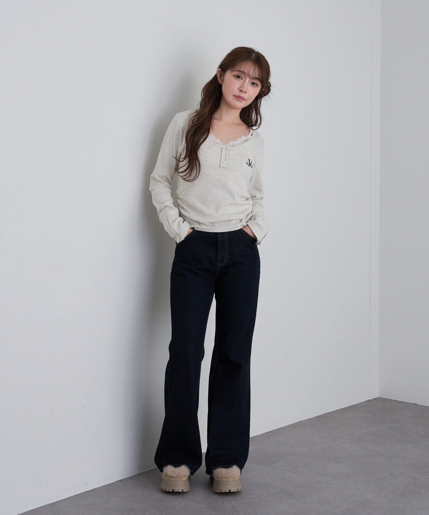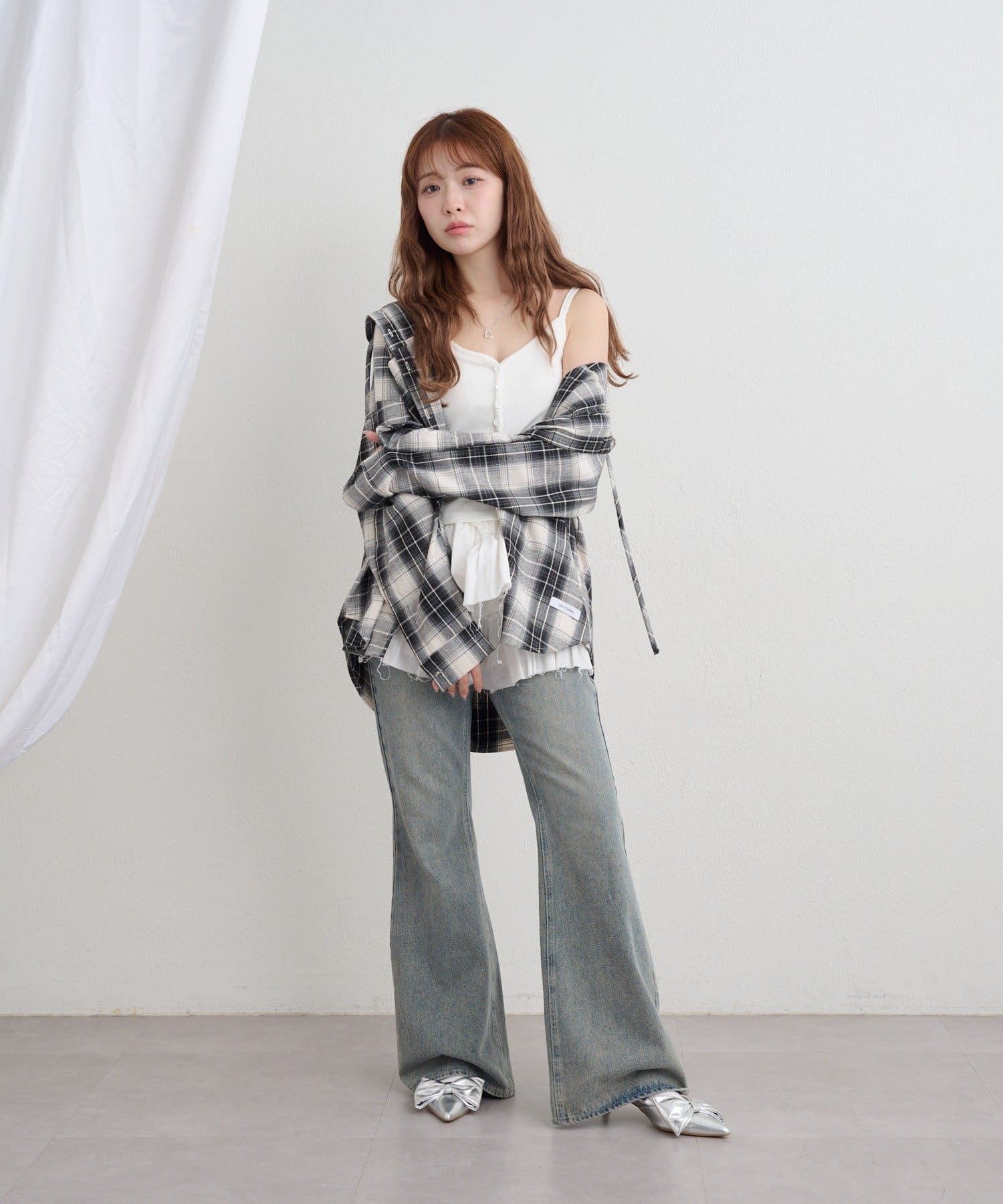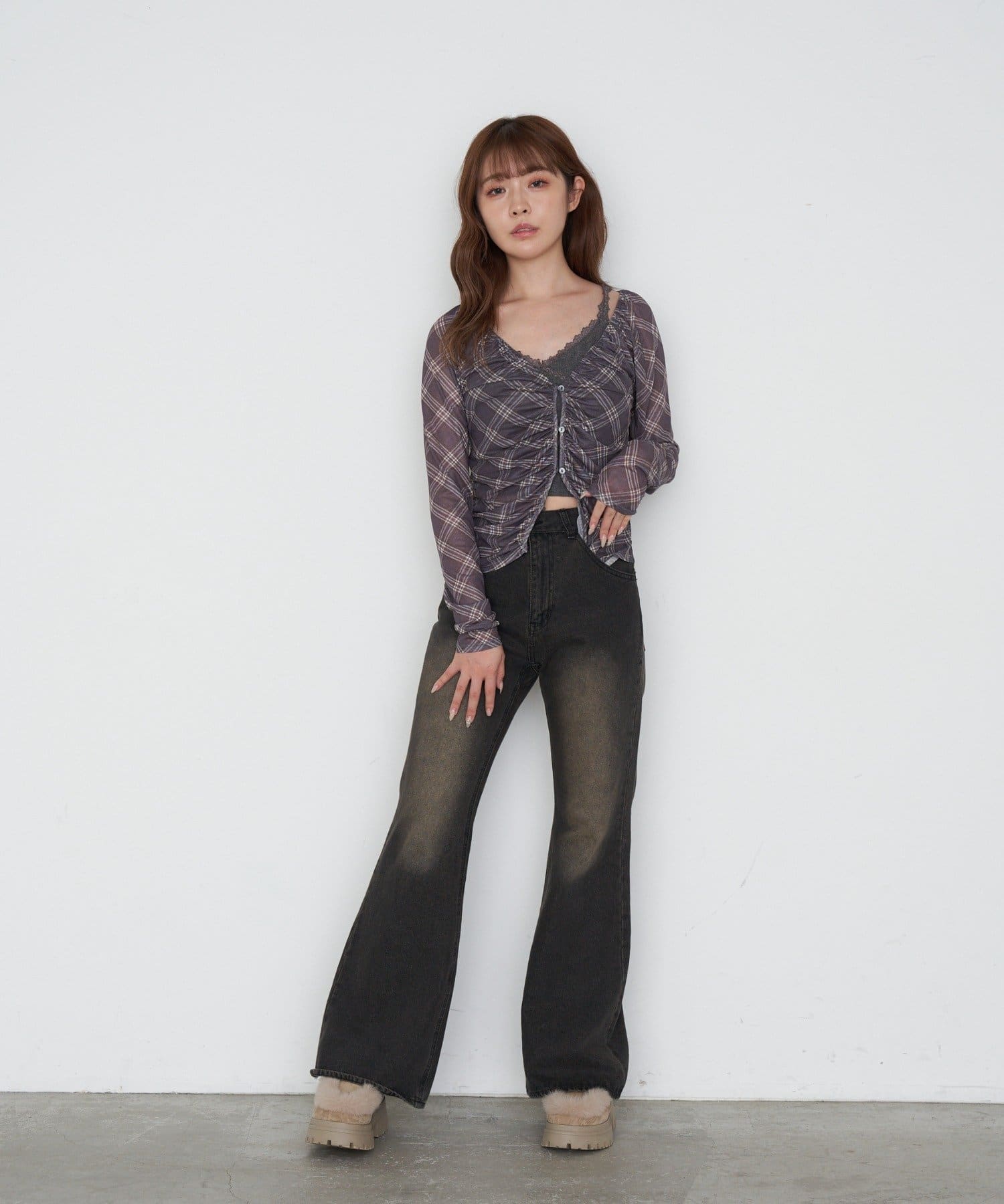 脚のラインがスラッと見えるフレアデニムは、ボリュームがあるニットなど、冬の定番アイテムとの相性も抜群◎