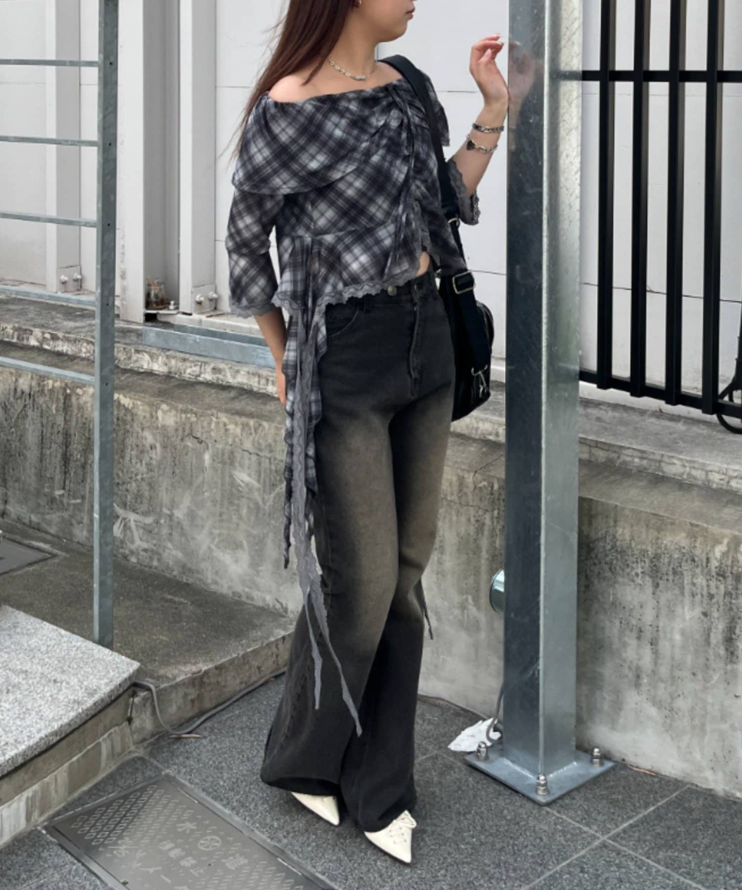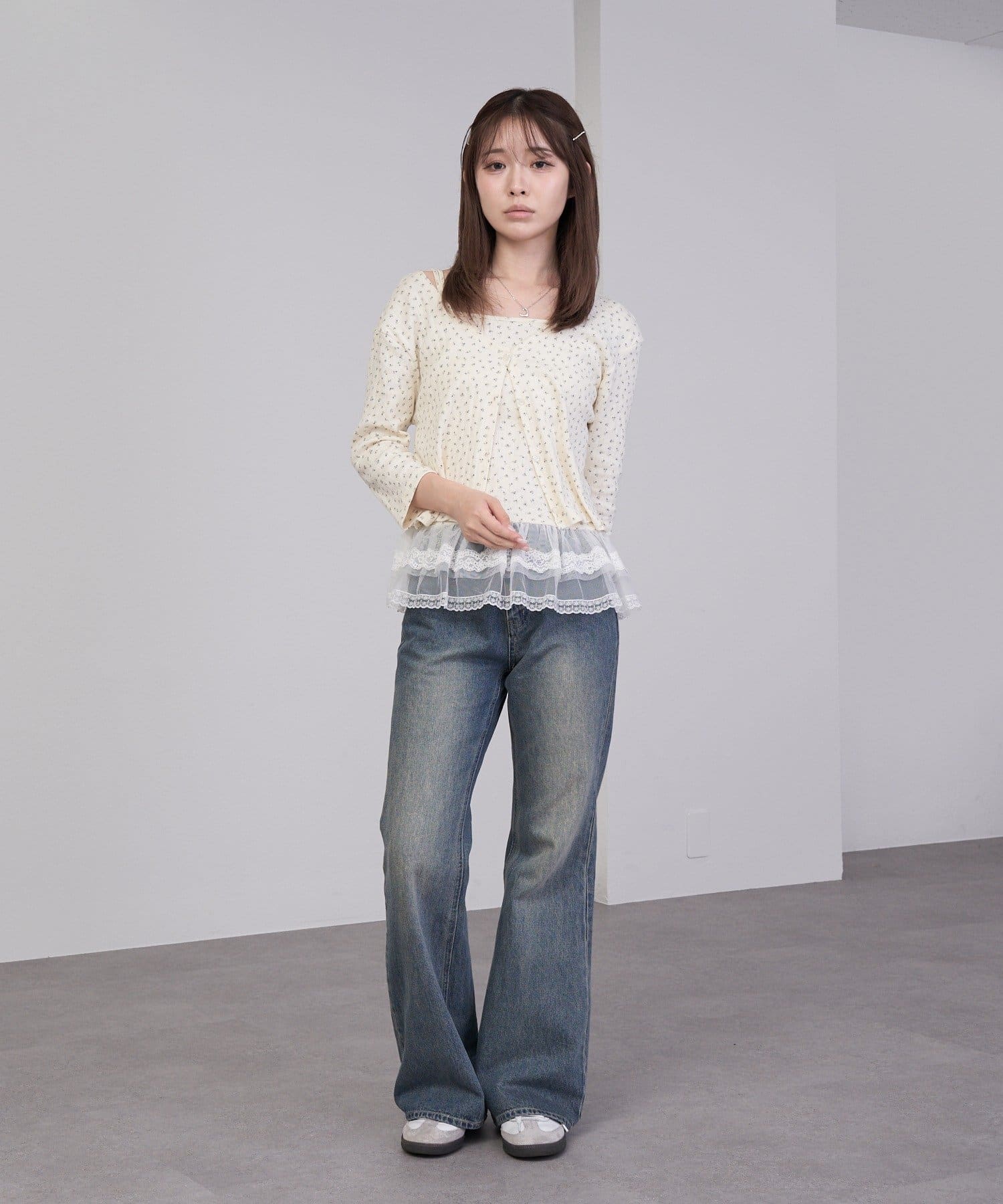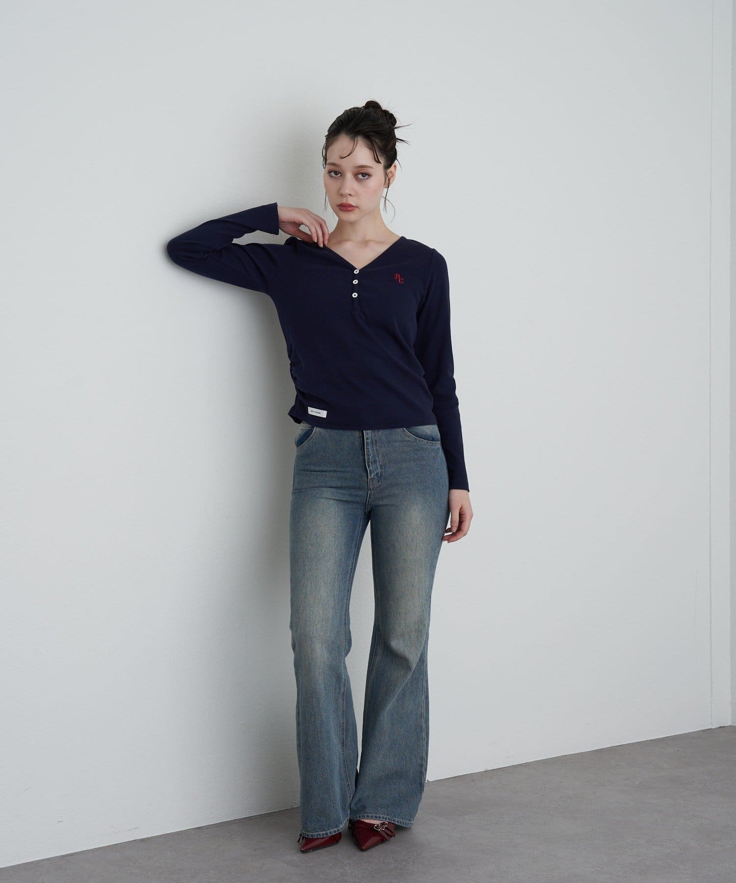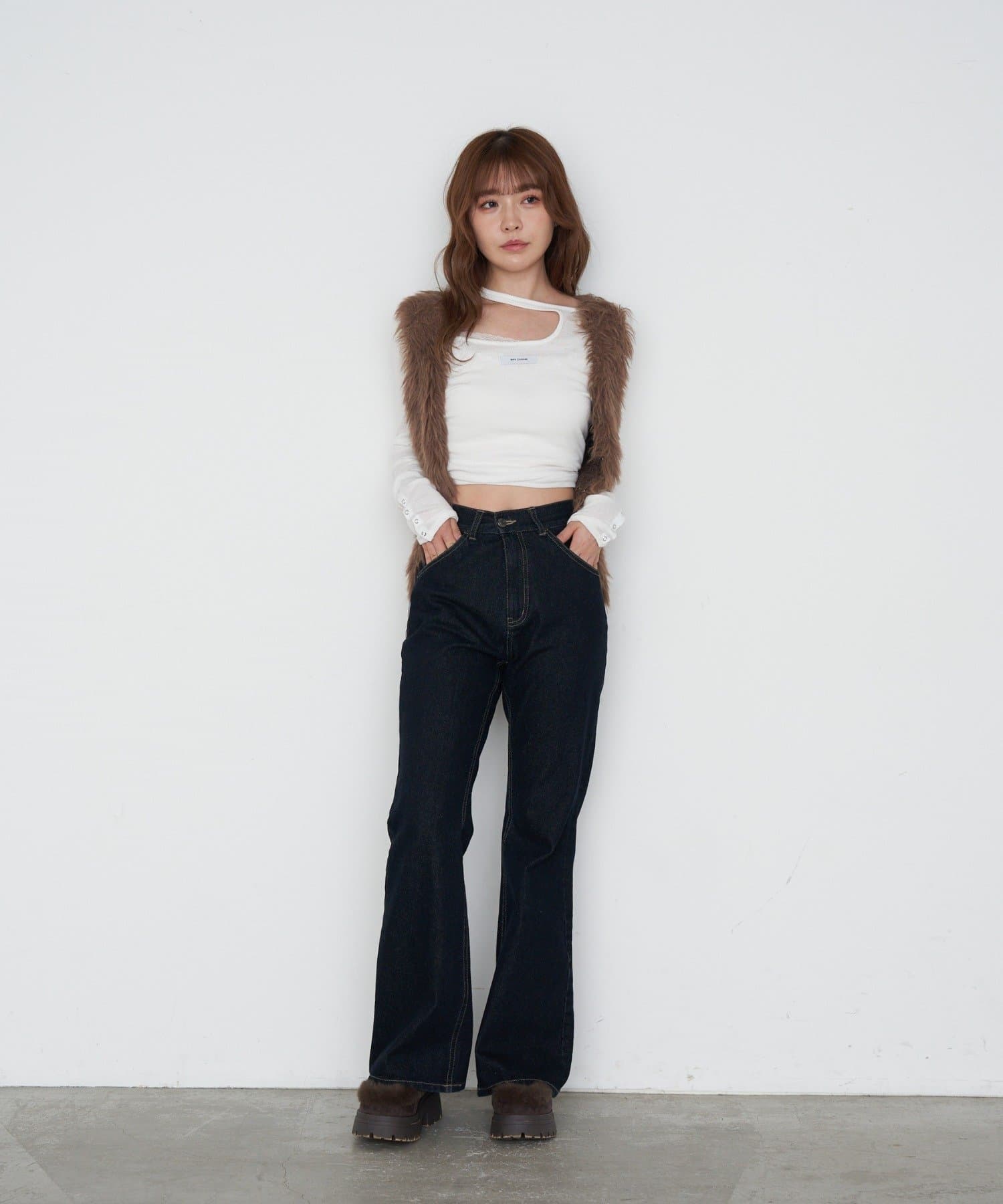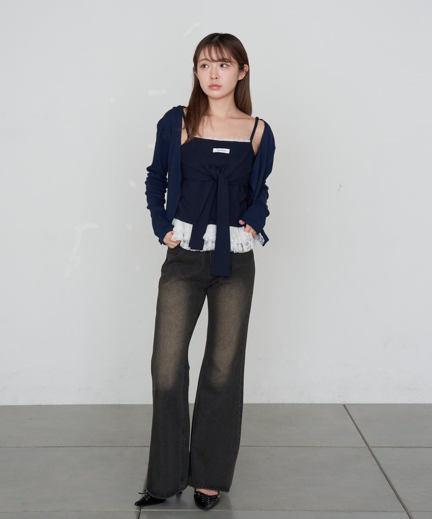 脚のラインがスラッと見えるフレアデニムは、ボリュームがあるニットなど、冬の定番アイテムとの相性も抜群◎