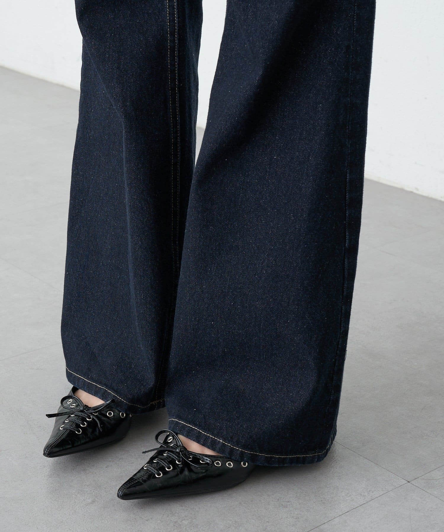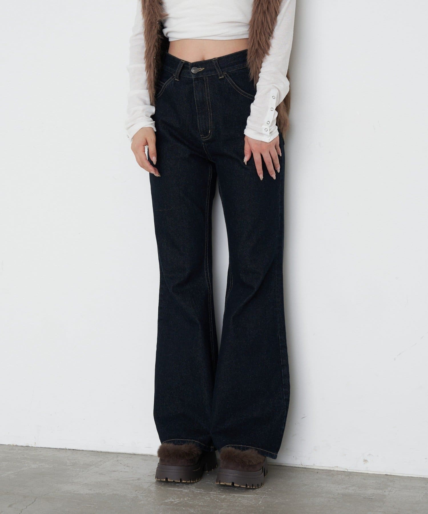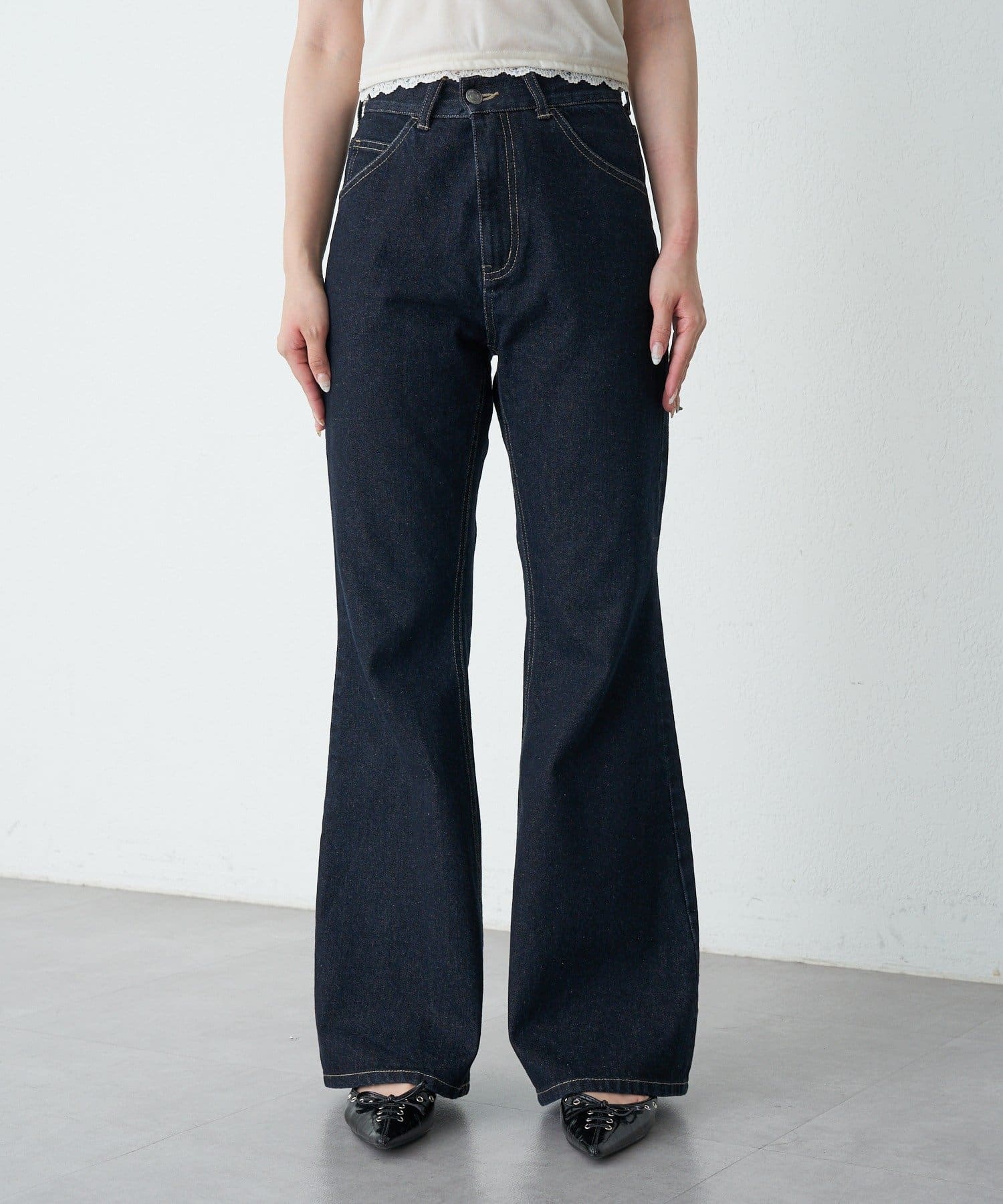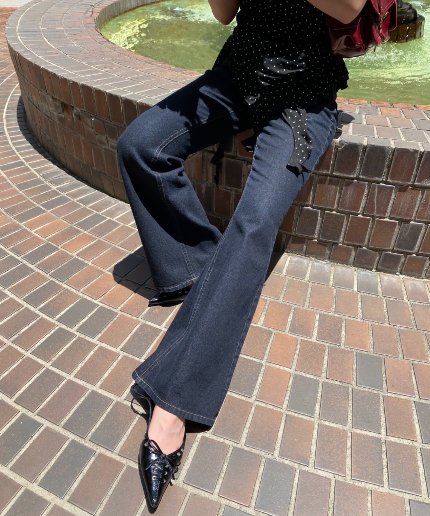 【サイズ展開あり/ウエスト調整可】フレアデニムパンツ