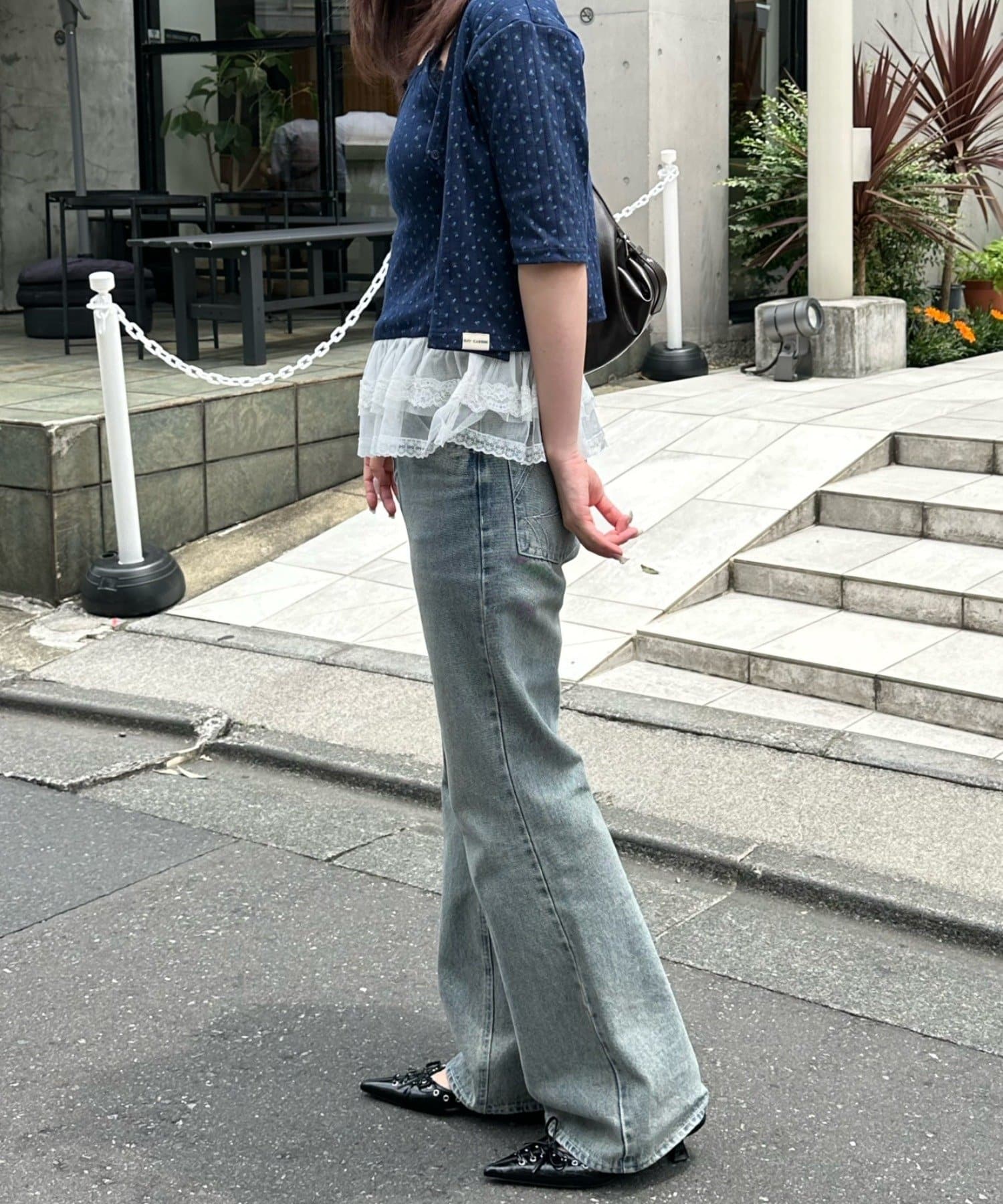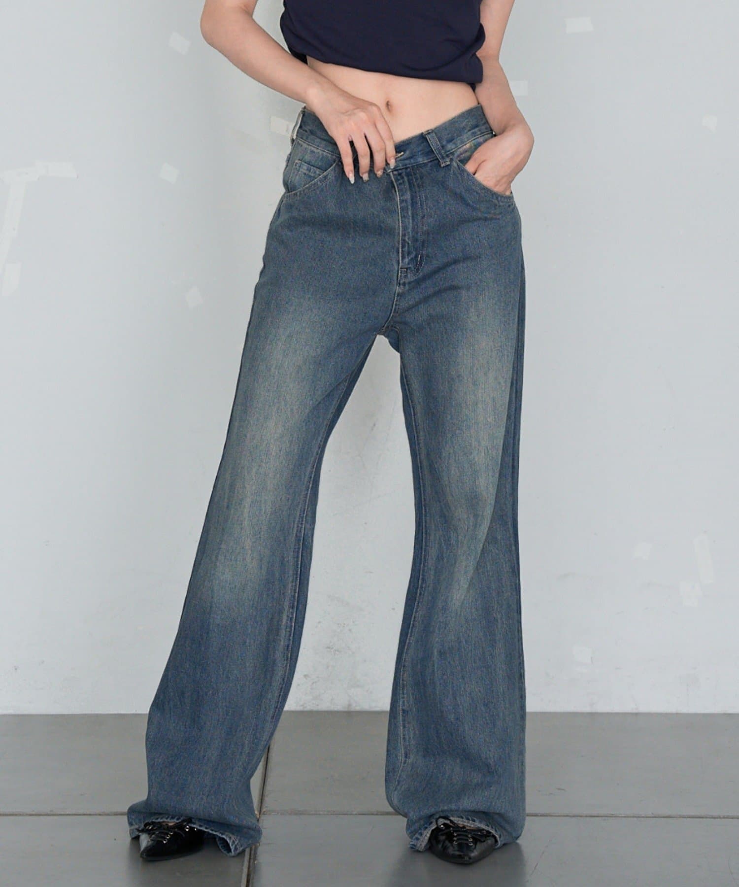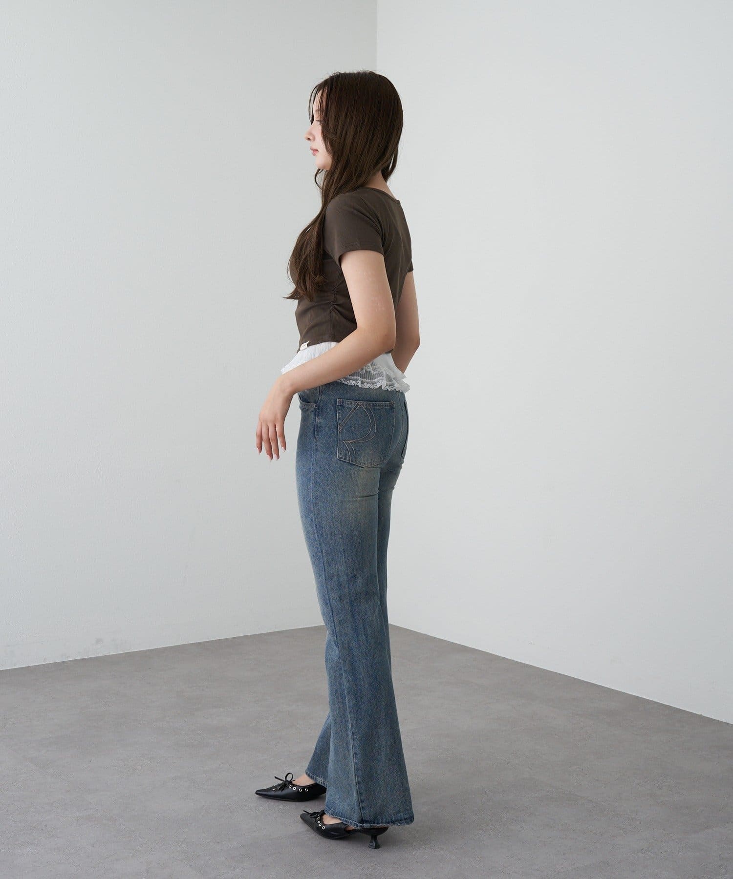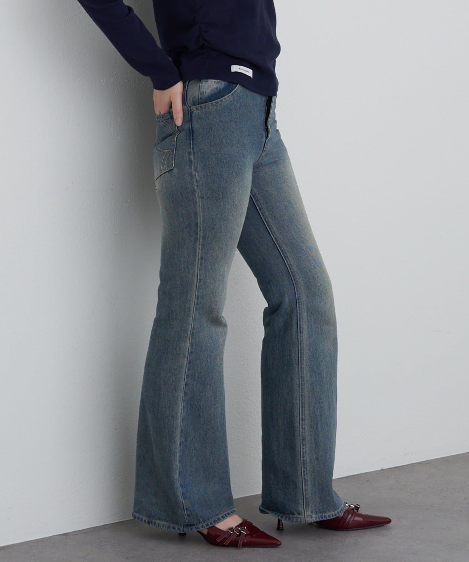 【サイズ展開あり/ウエスト調整可】フレアデニムパンツ