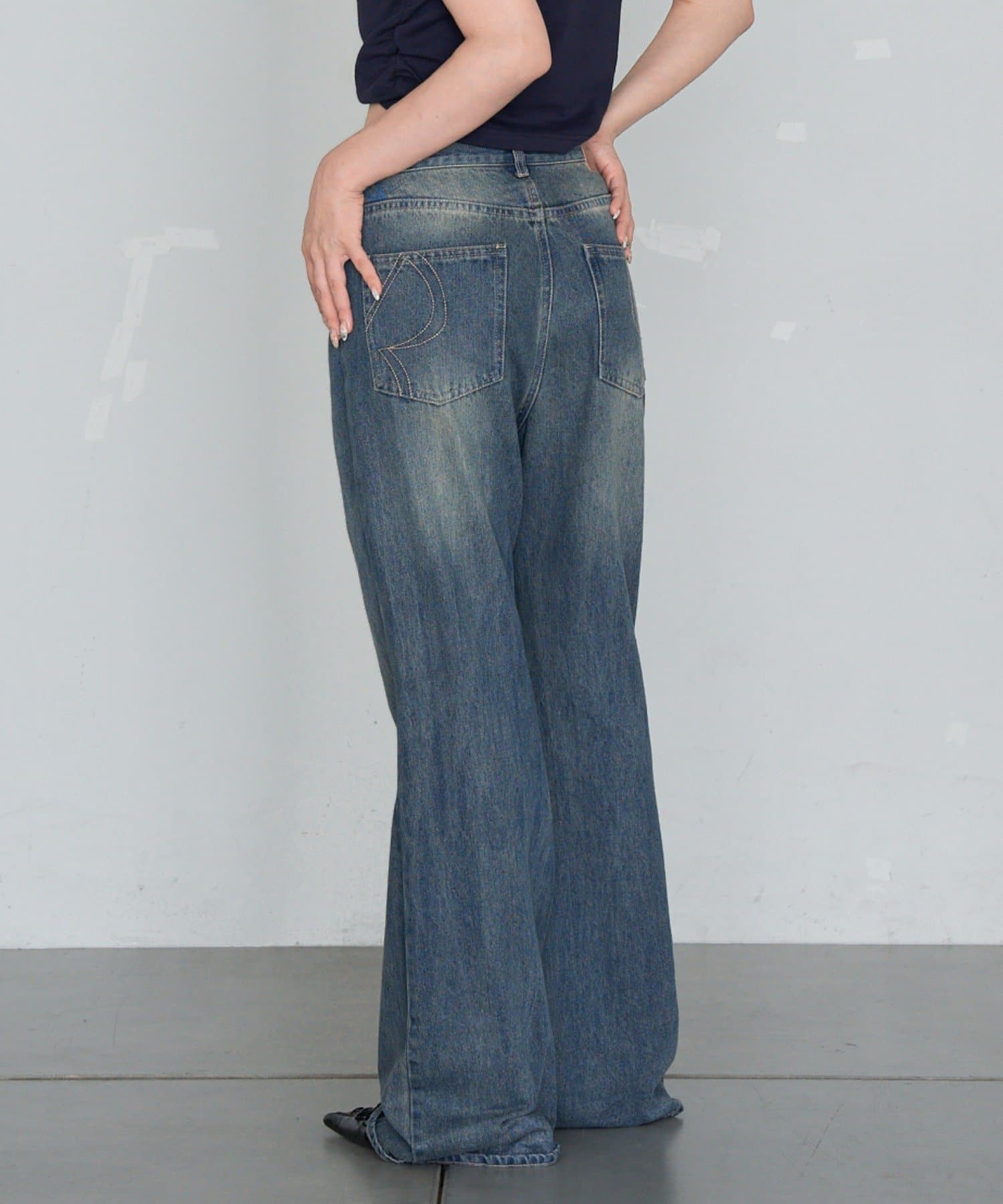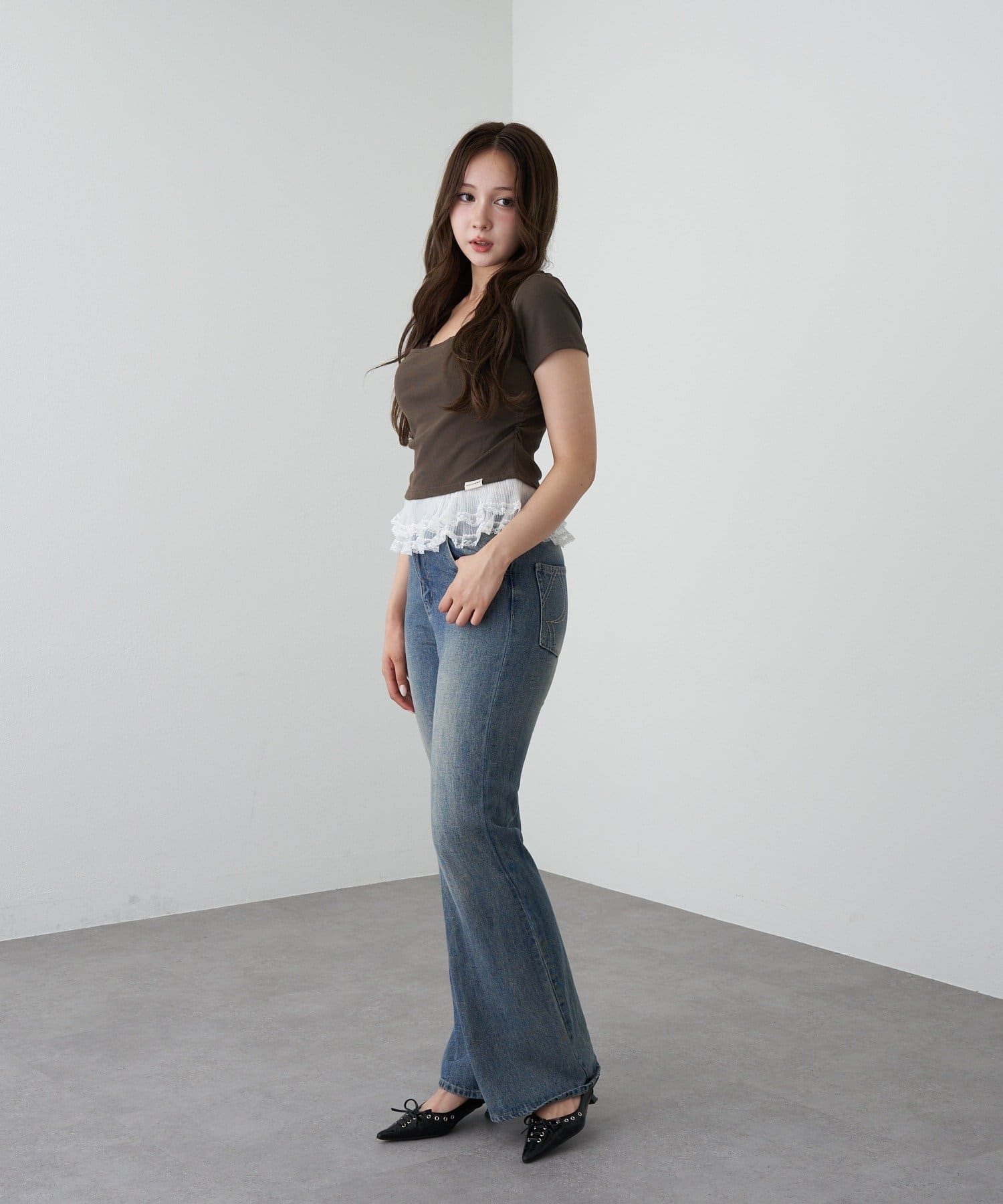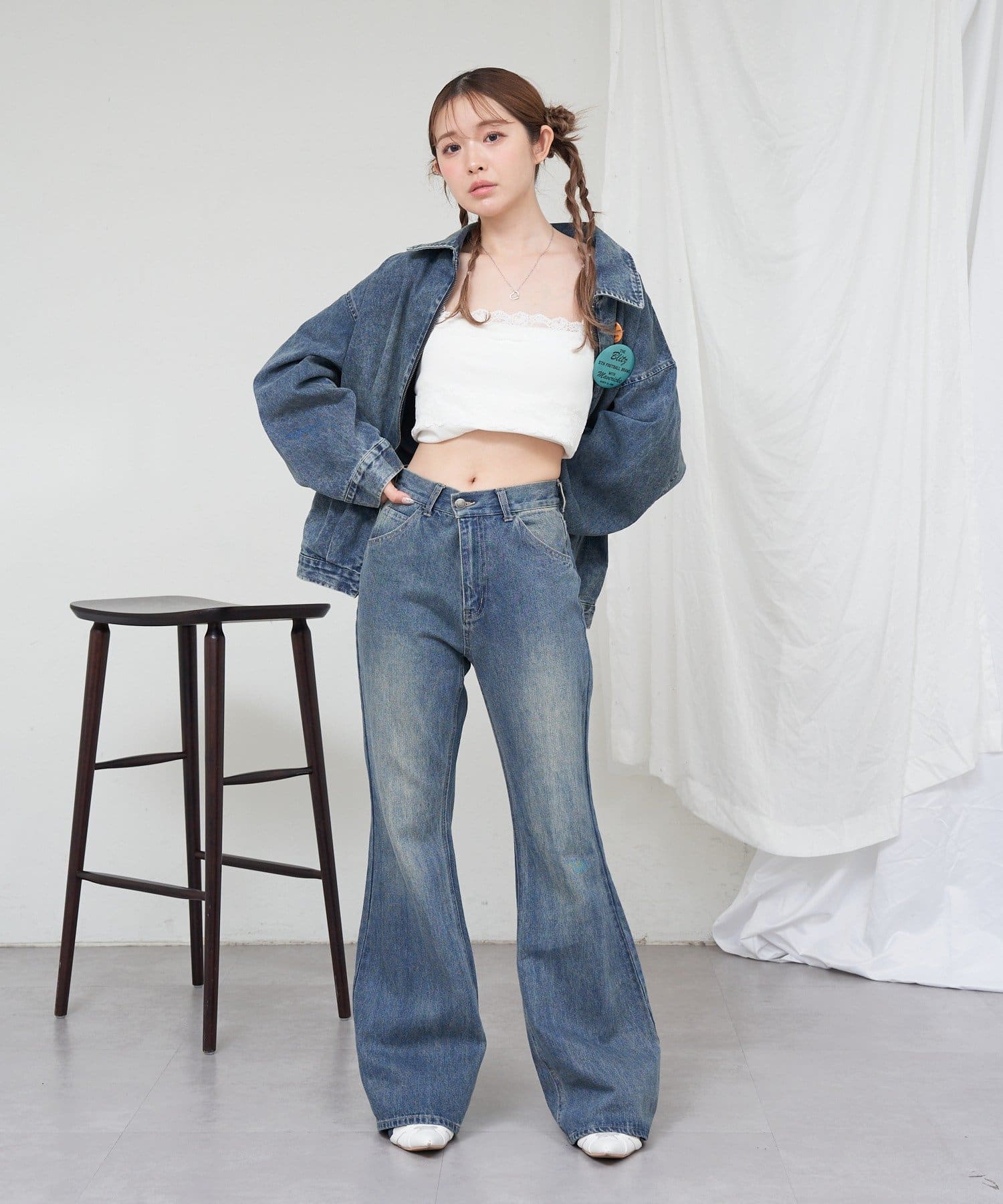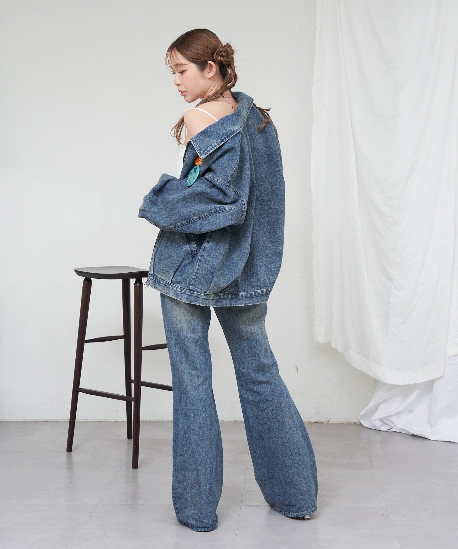 【サイズ展開あり/ウエスト調整可】フレアデニムパンツ