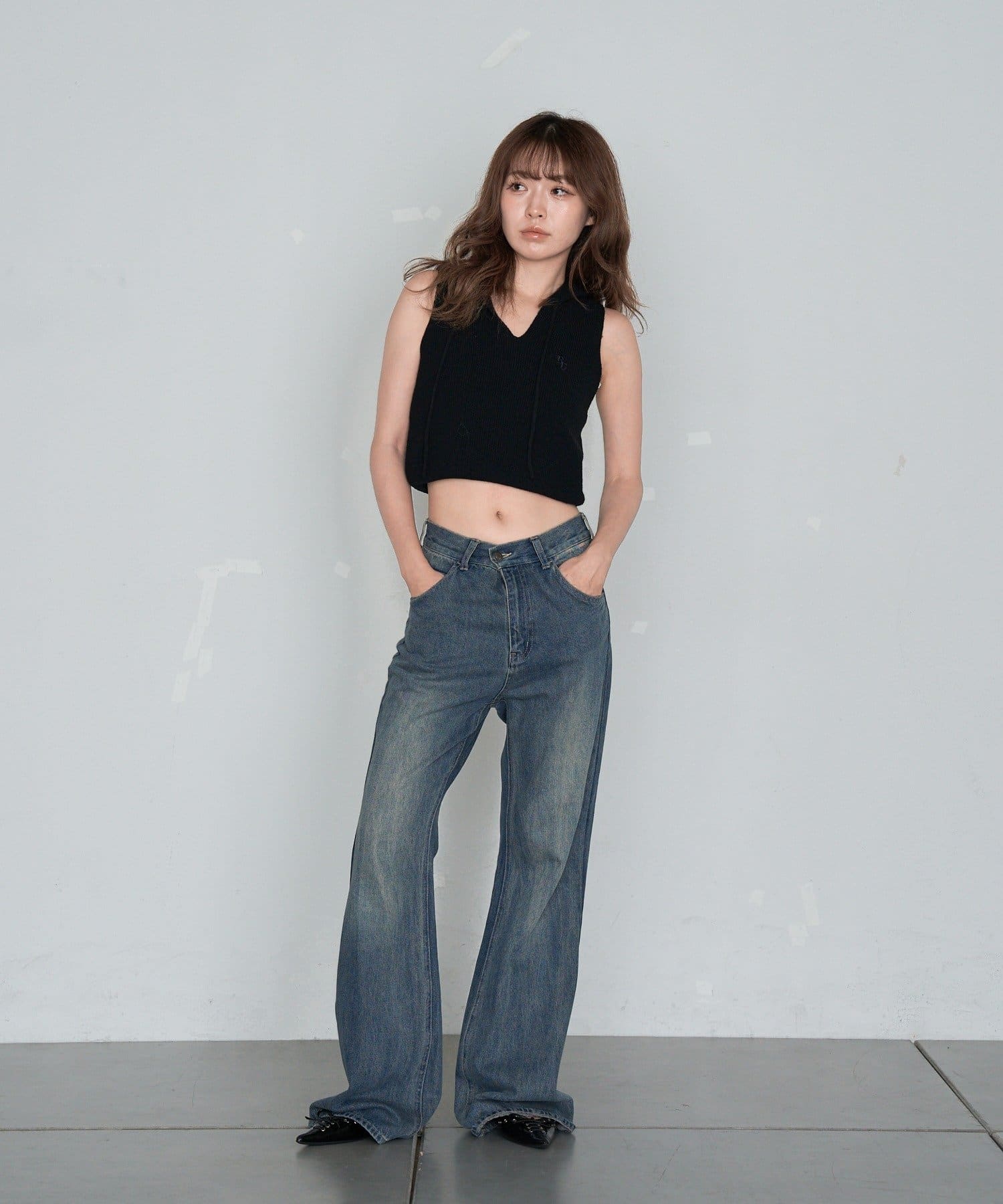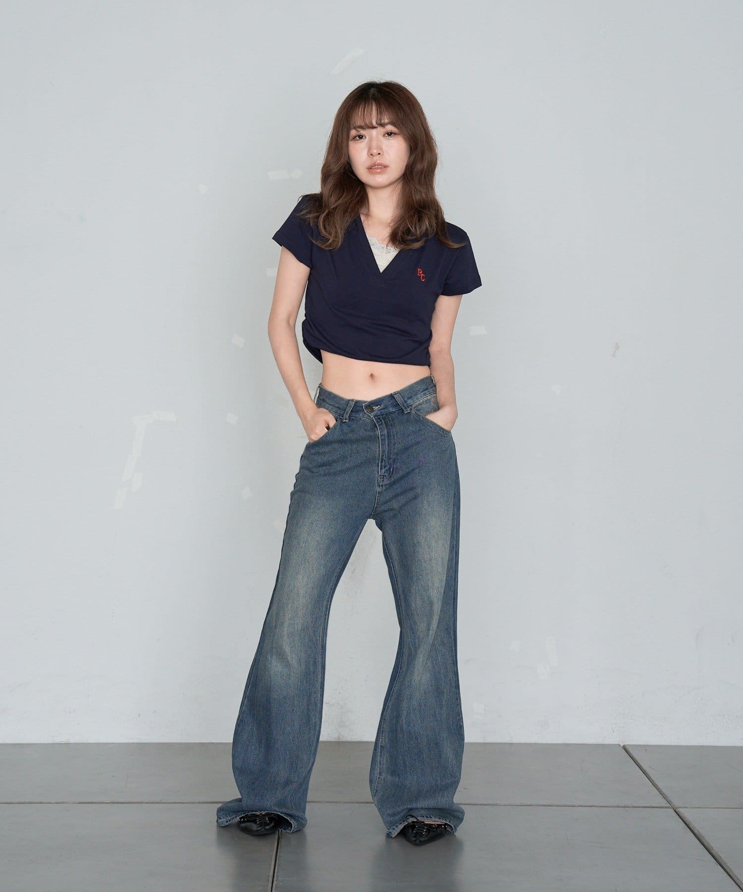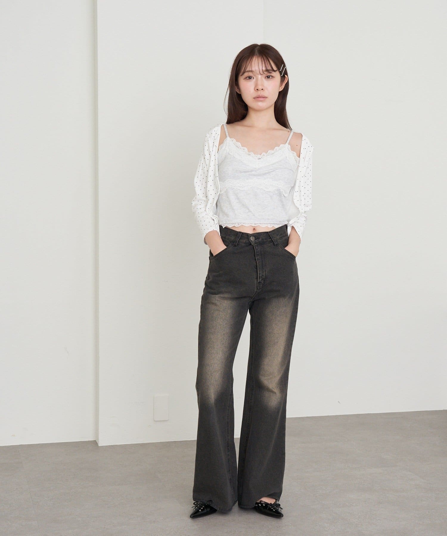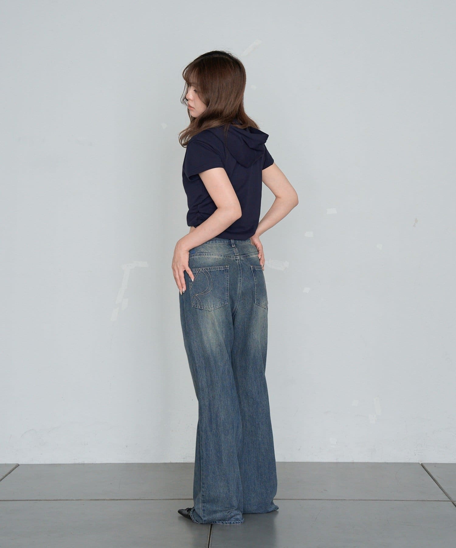 【サイズ展開あり/ウエスト調整可】フレアデニムパンツ