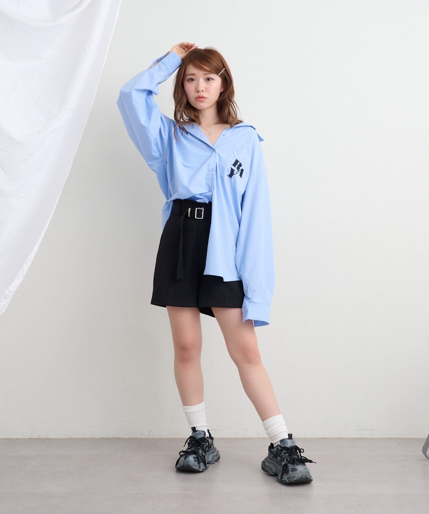 オーバーサイズなのでベルトでメリハリをつけたのが骨スト着痩せポイントです。