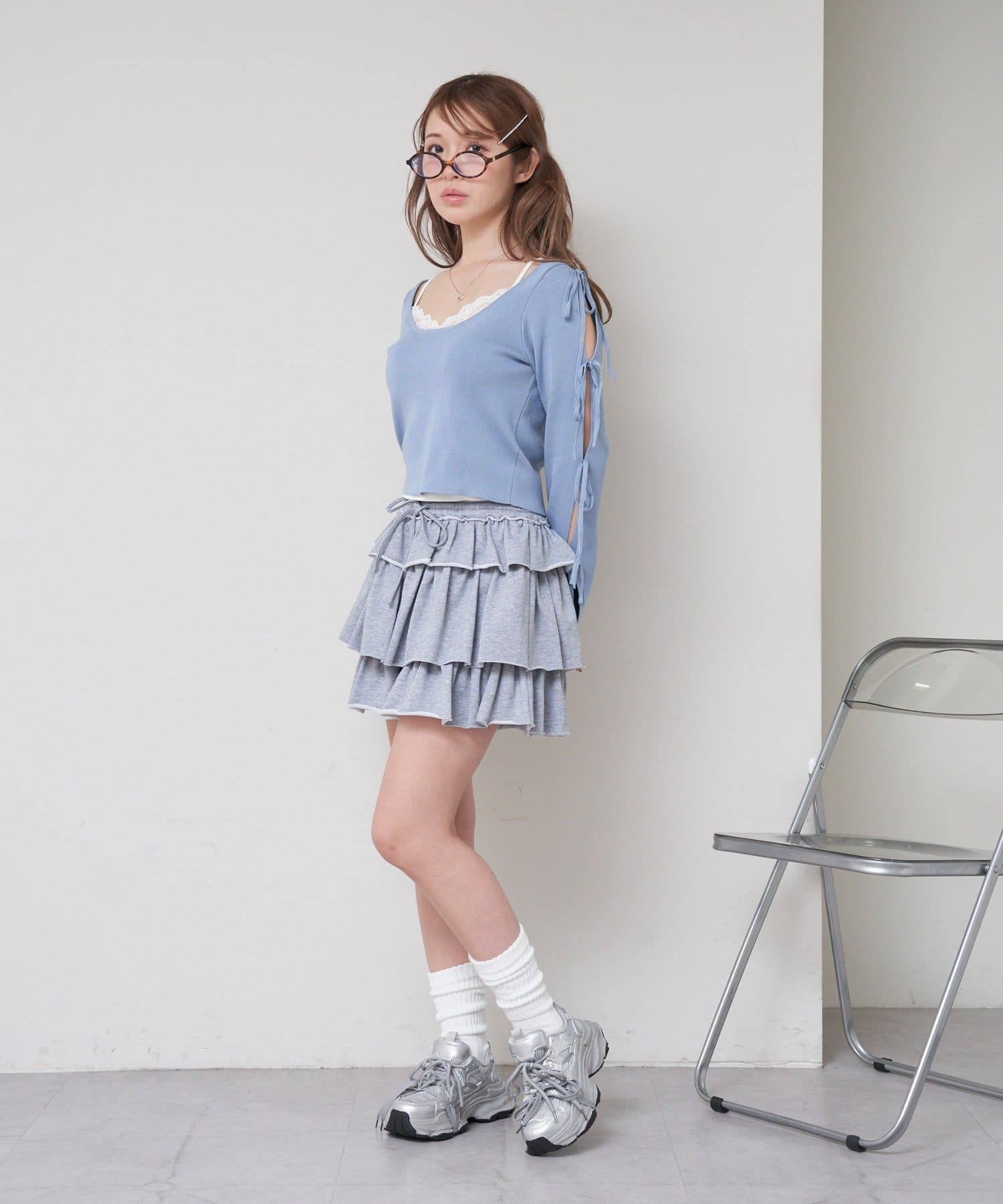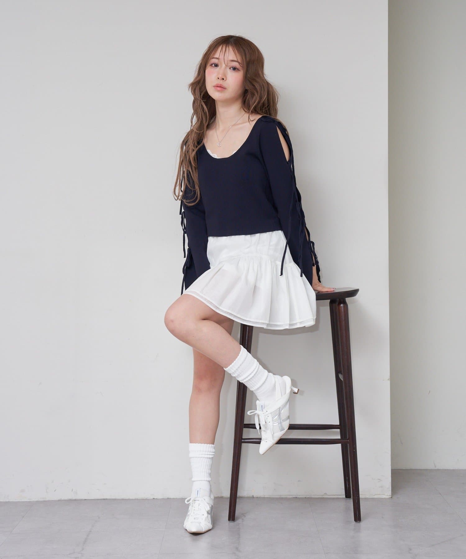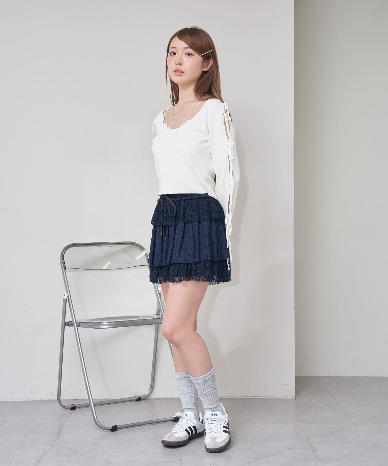 ・ミニ丈ボトムス合わせでさらにスタイルアップ。