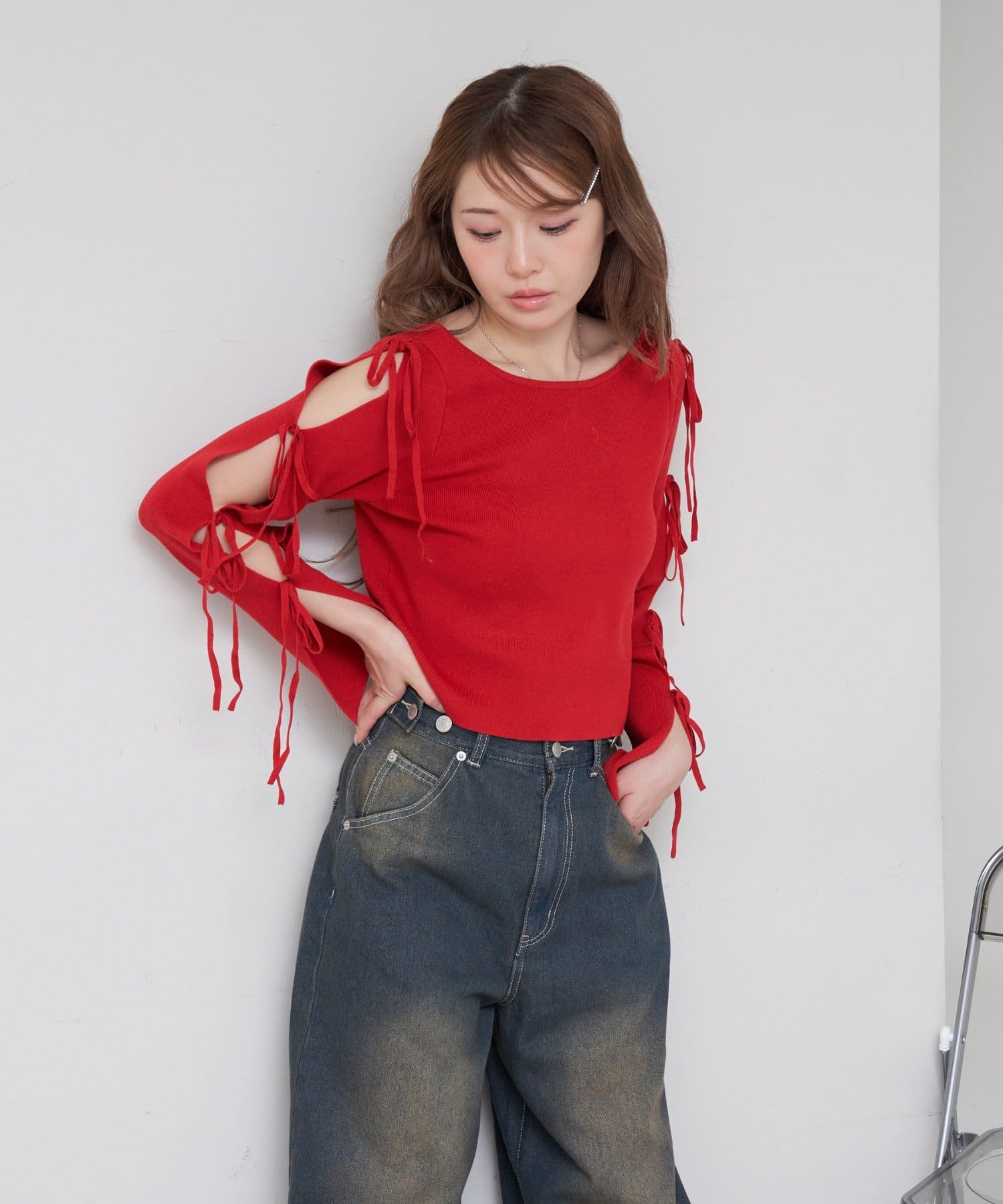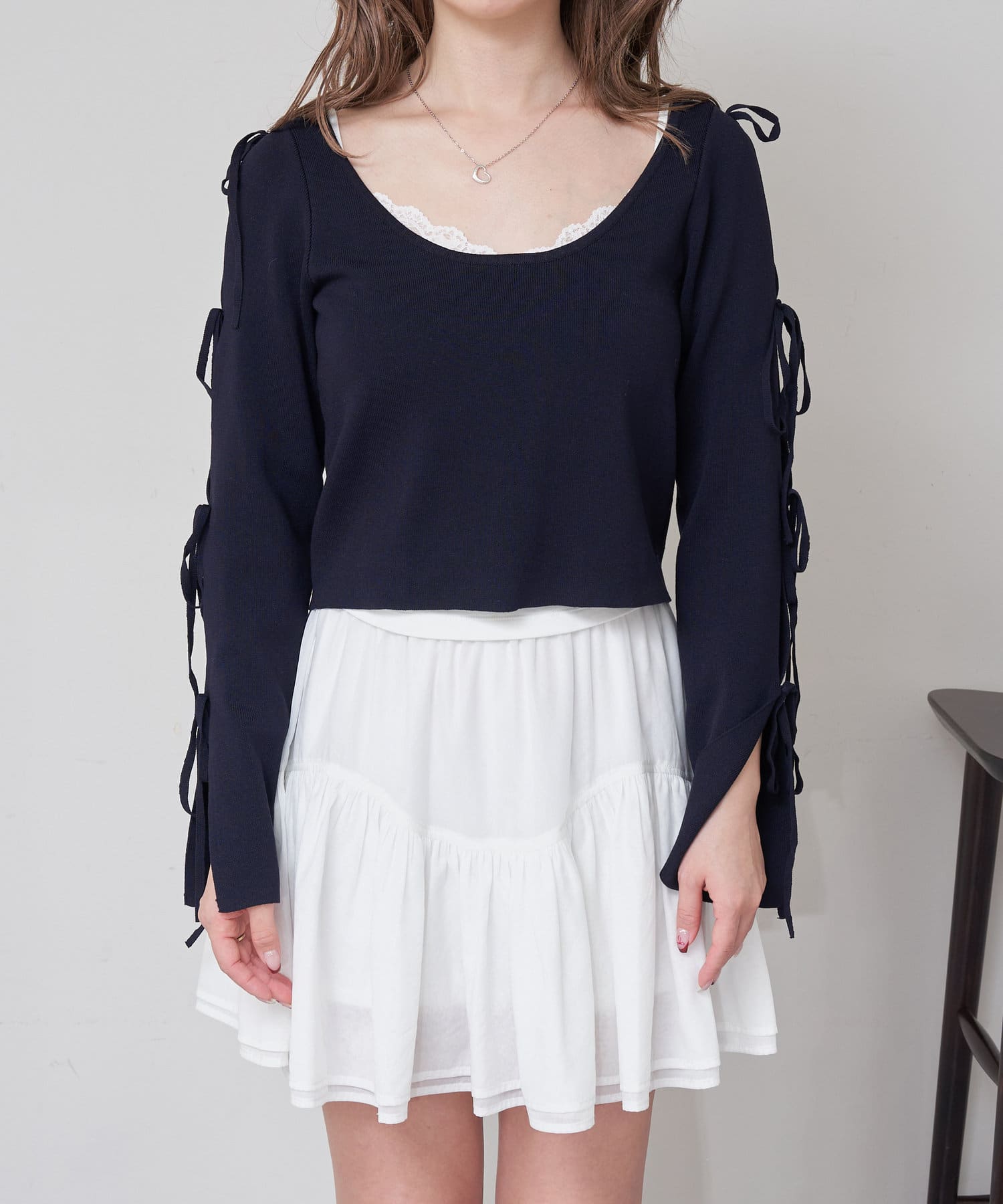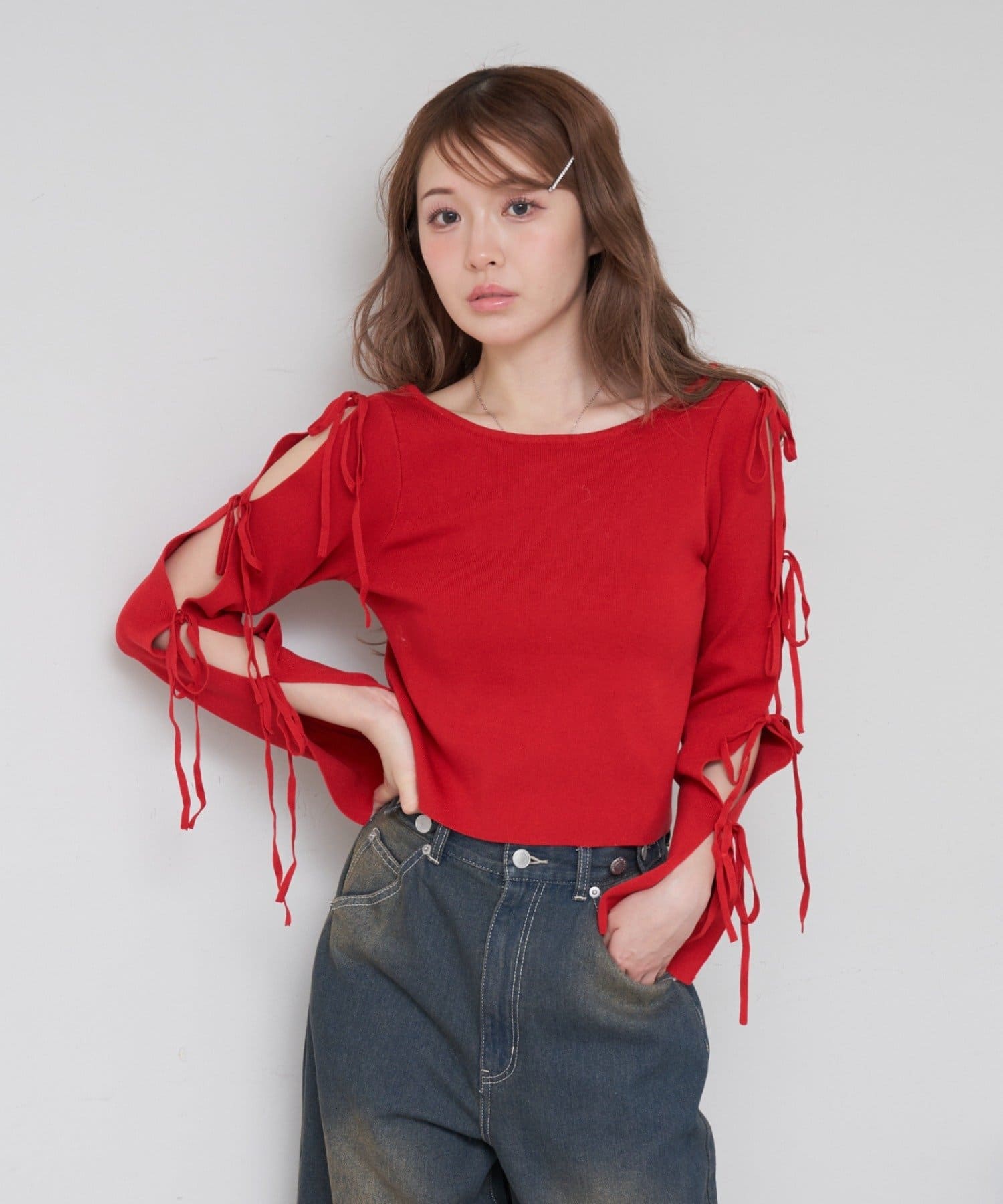 コンパクトニット / リボン / 袖デザイン