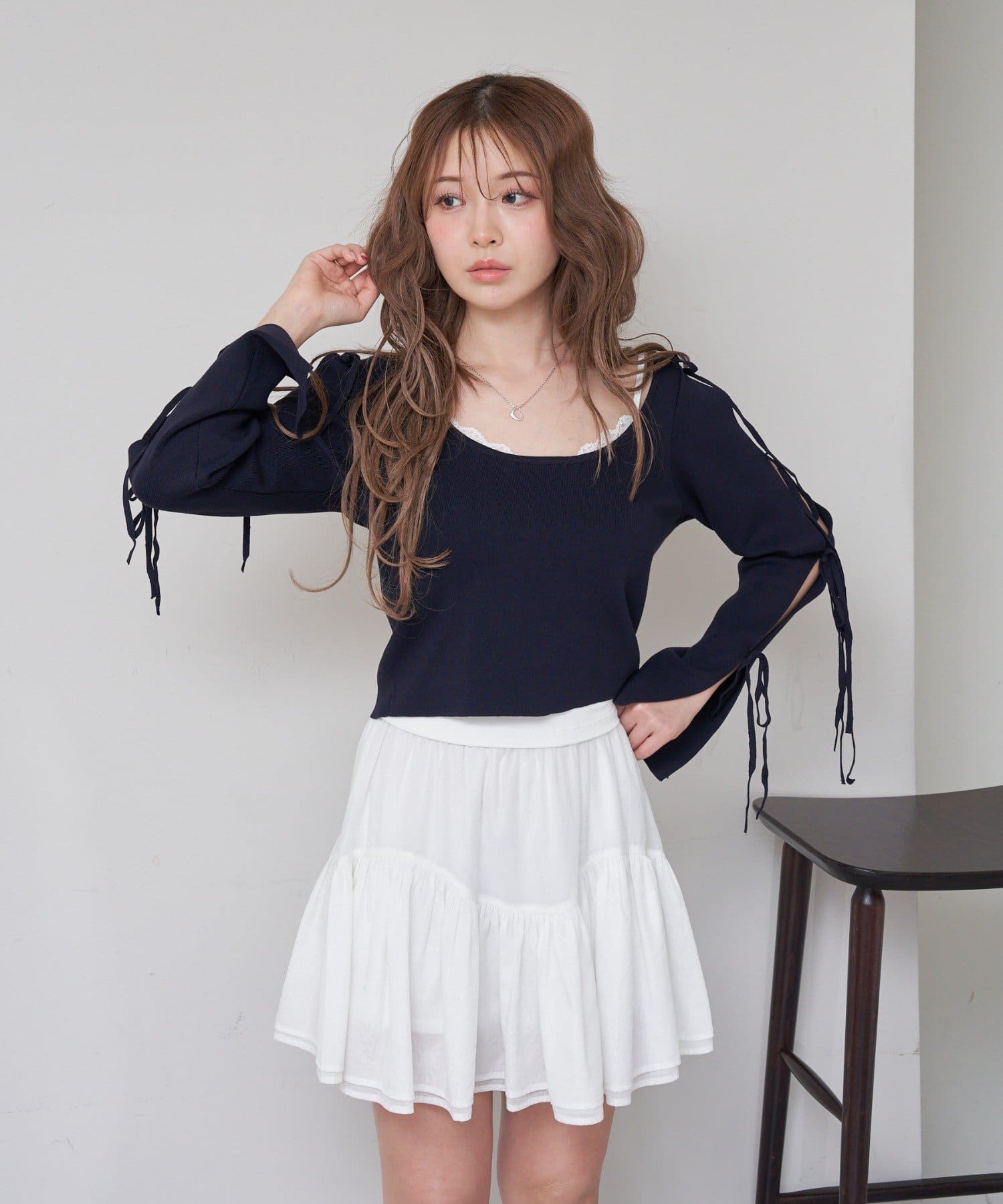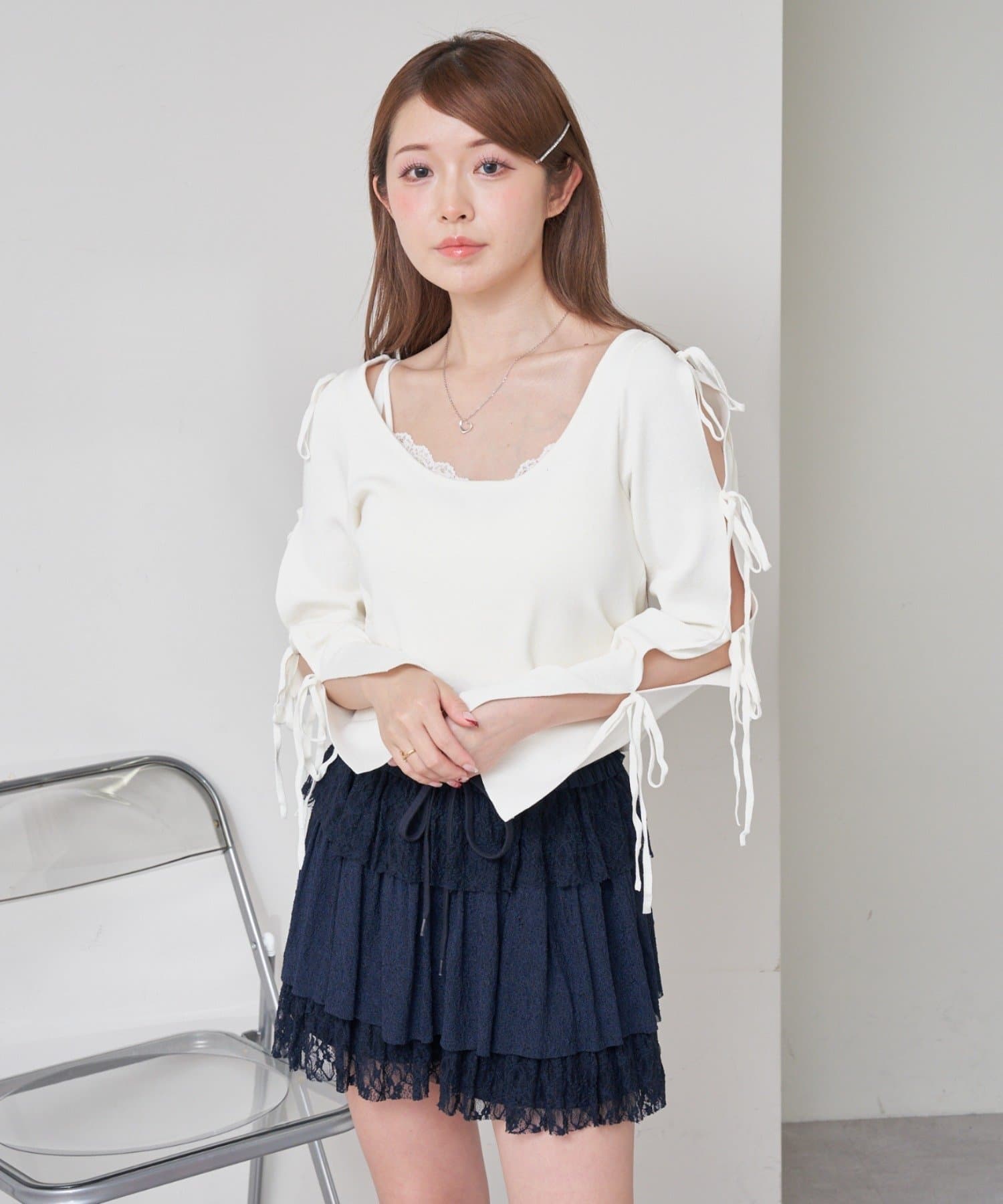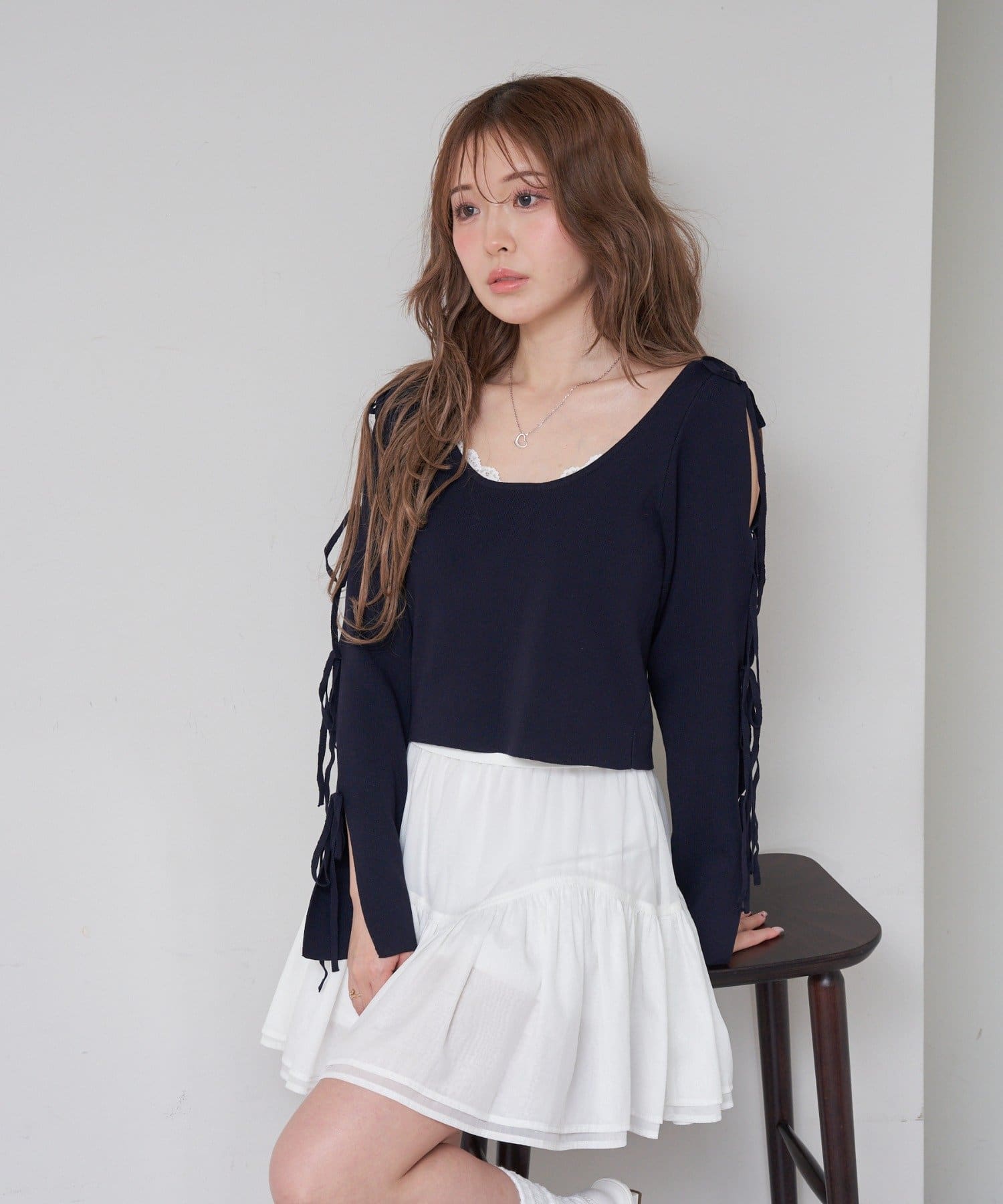 コンパクトニット / リボン / 袖デザイン