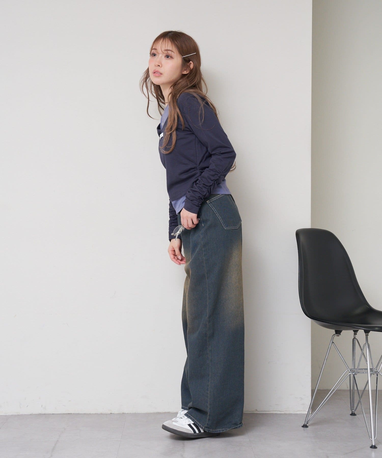 ・コンパクトなシルエットのため、ボリューム感/ルーズなアイテムが相性抜群。