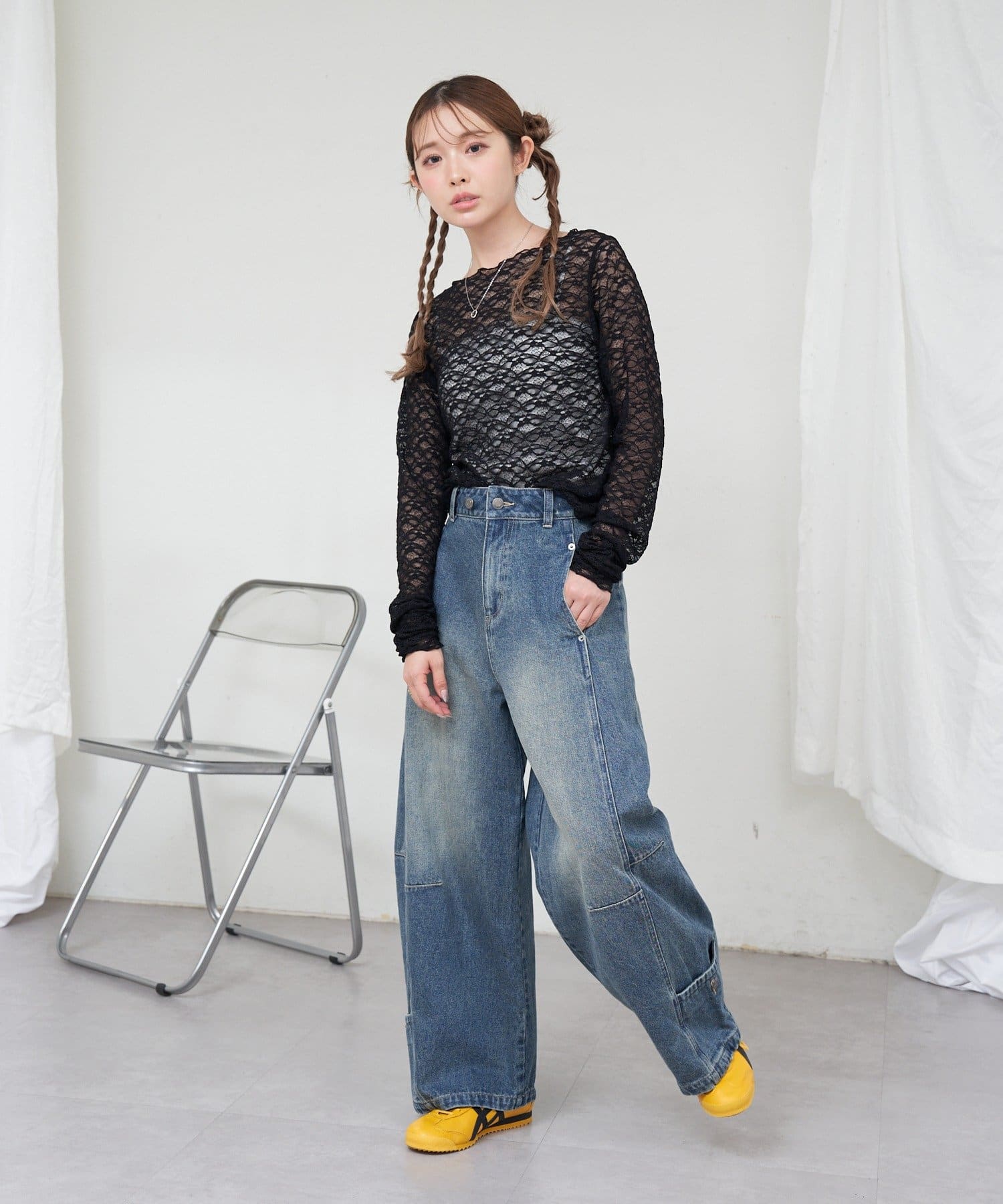 ・ワンピースのインナーとしても、スウェットやTシャツにレイヤードしたスタイルもおすすめ。