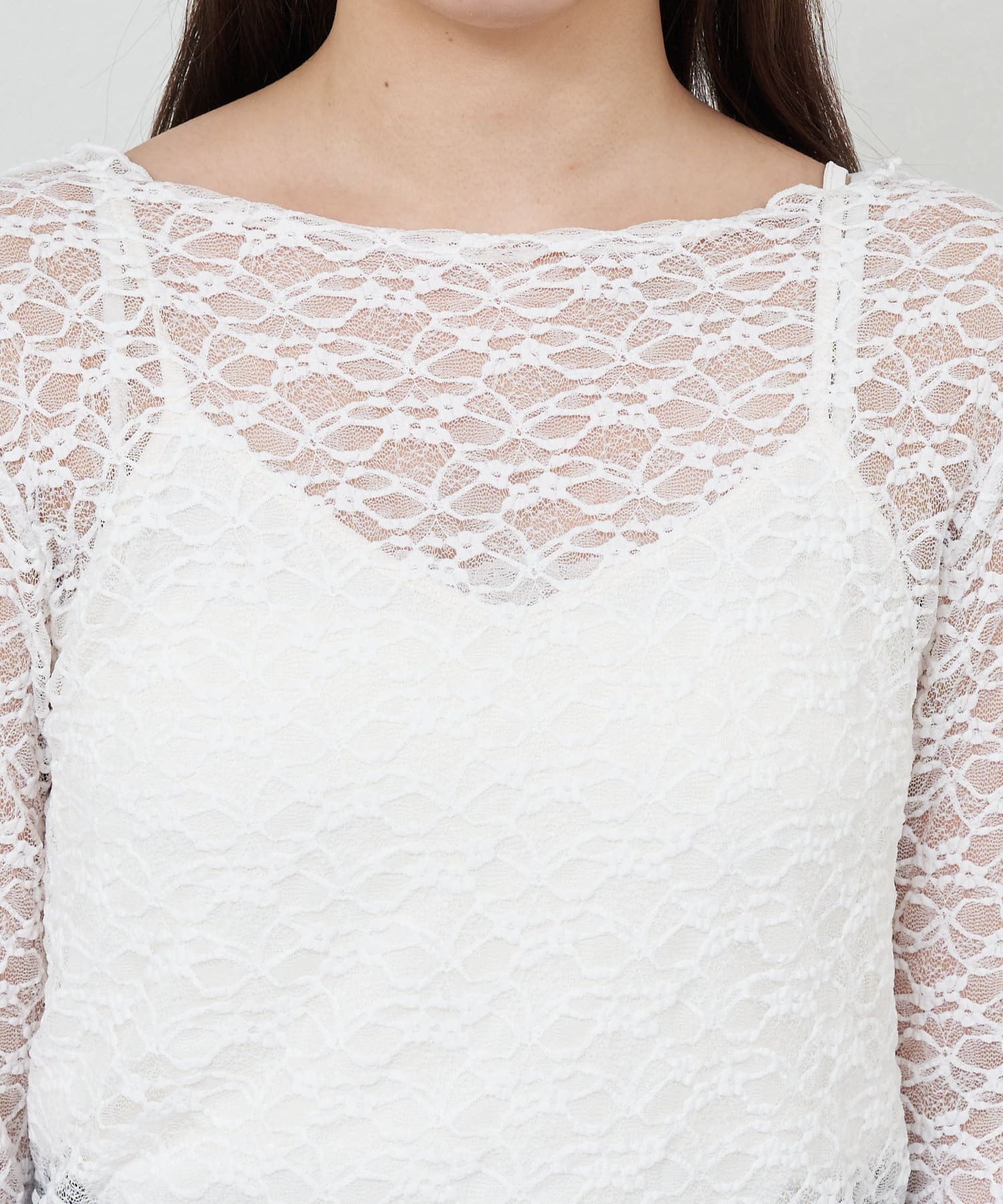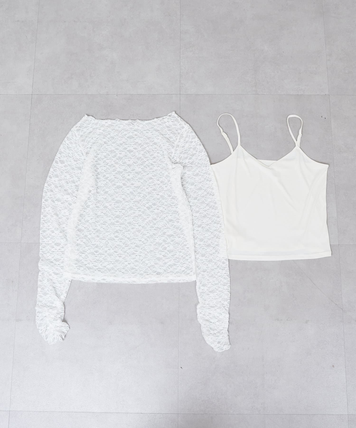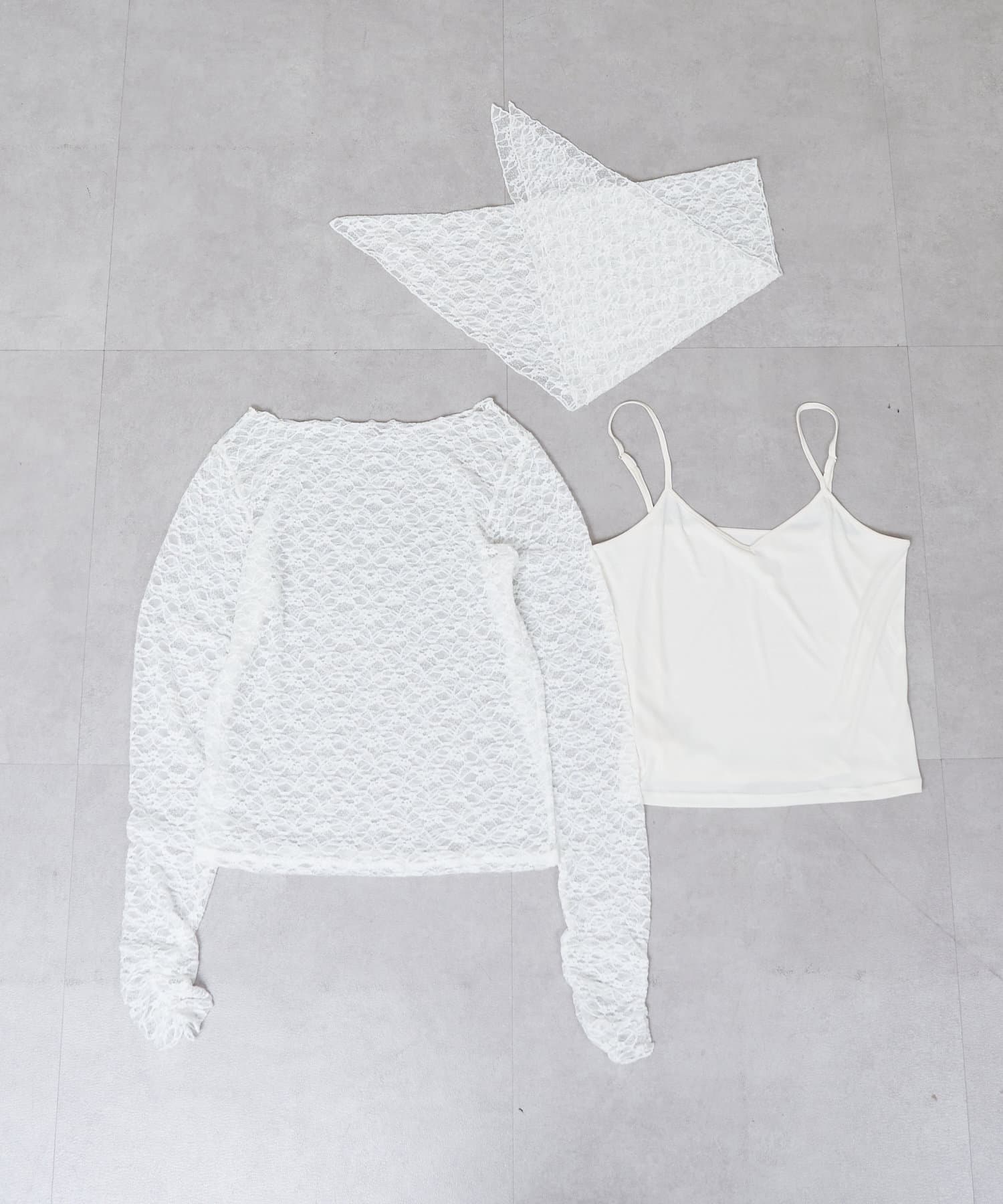 【レーストップス、レーススカーフ、キャミソールの3点セットアイテム】