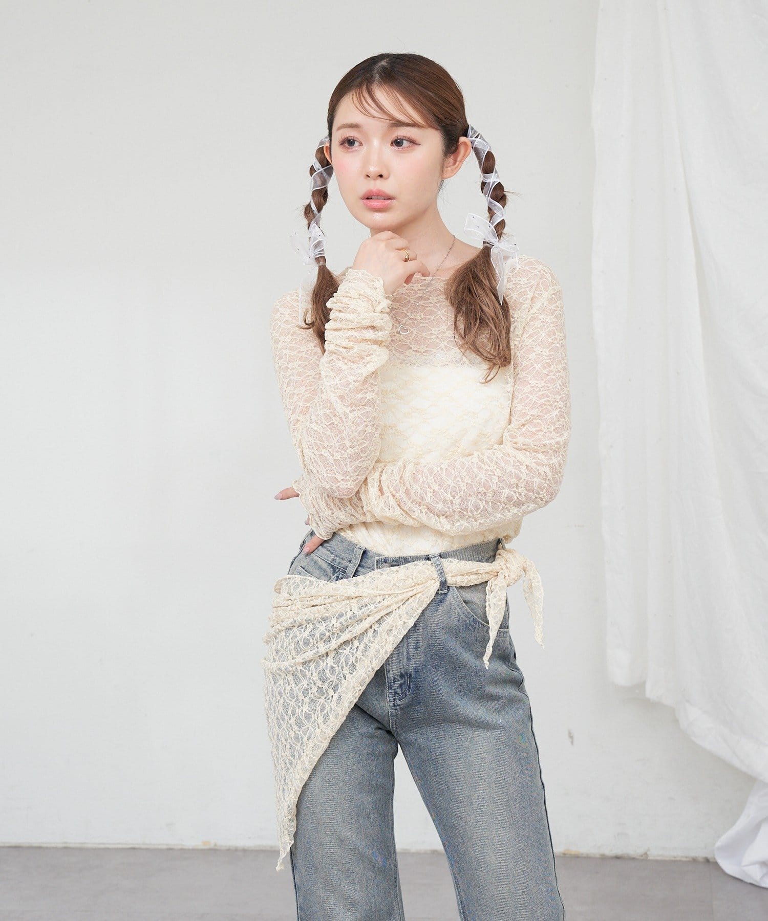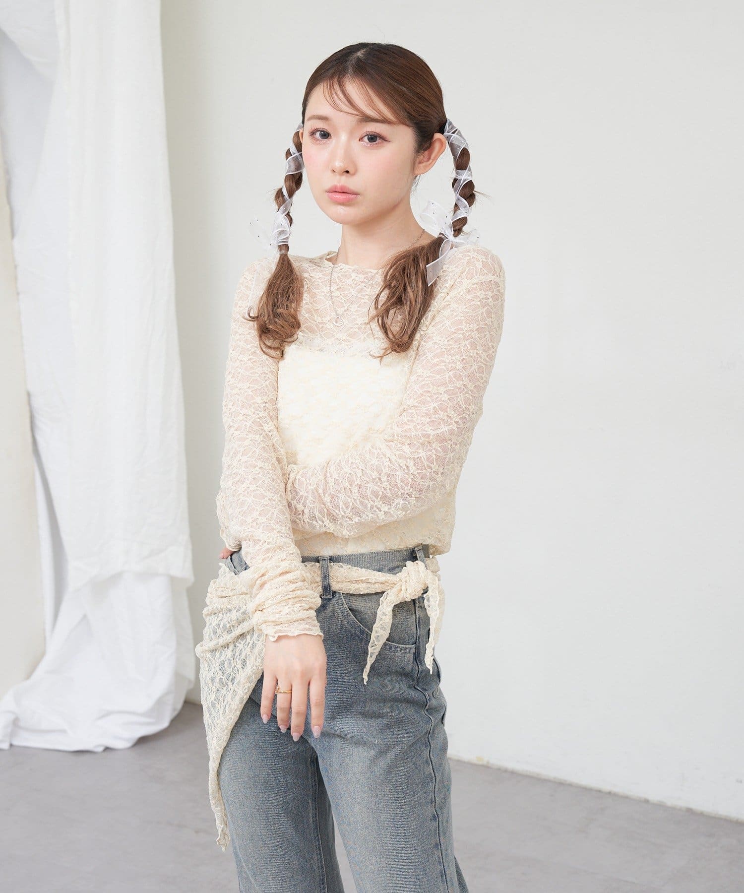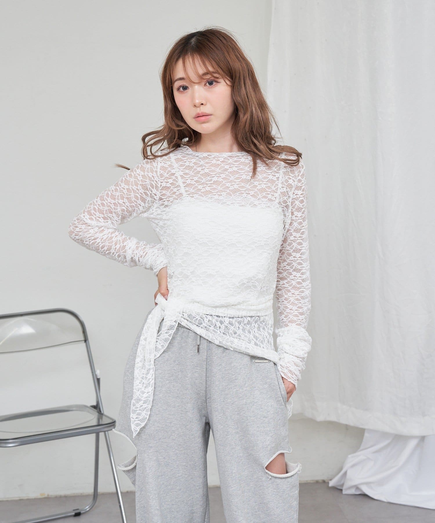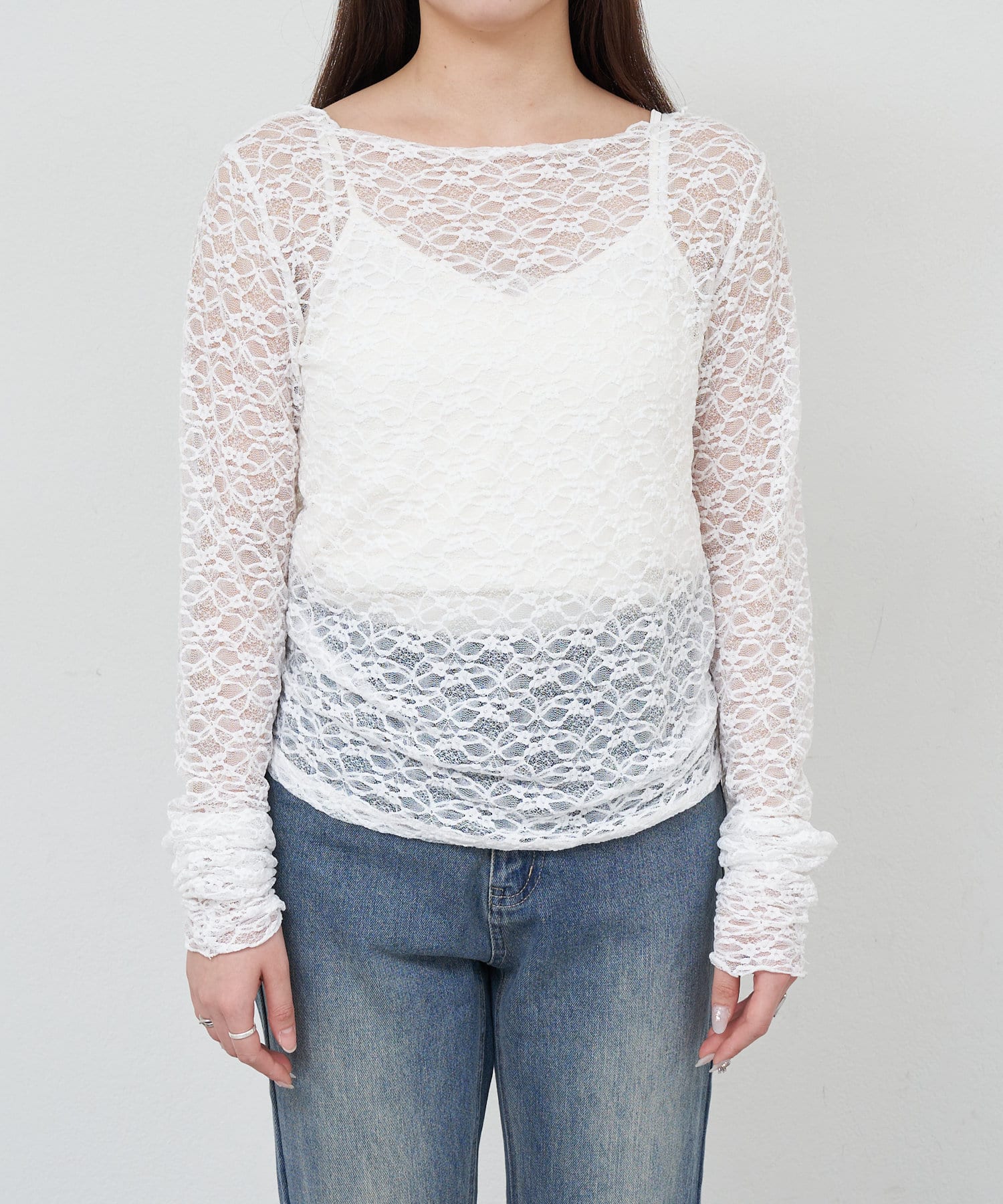【レーストップス、レーススカーフ、キャミソールの3点セットアイテム】