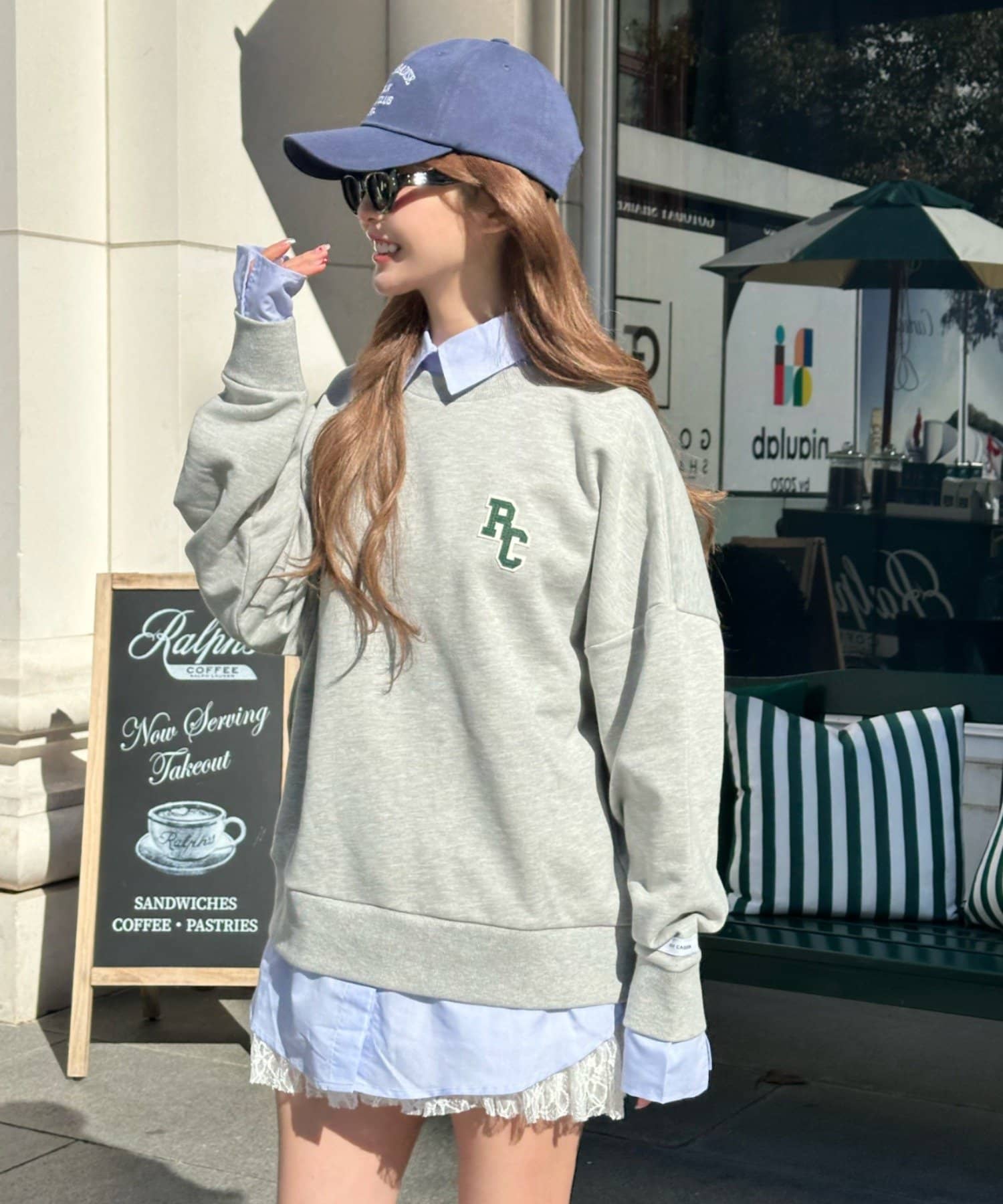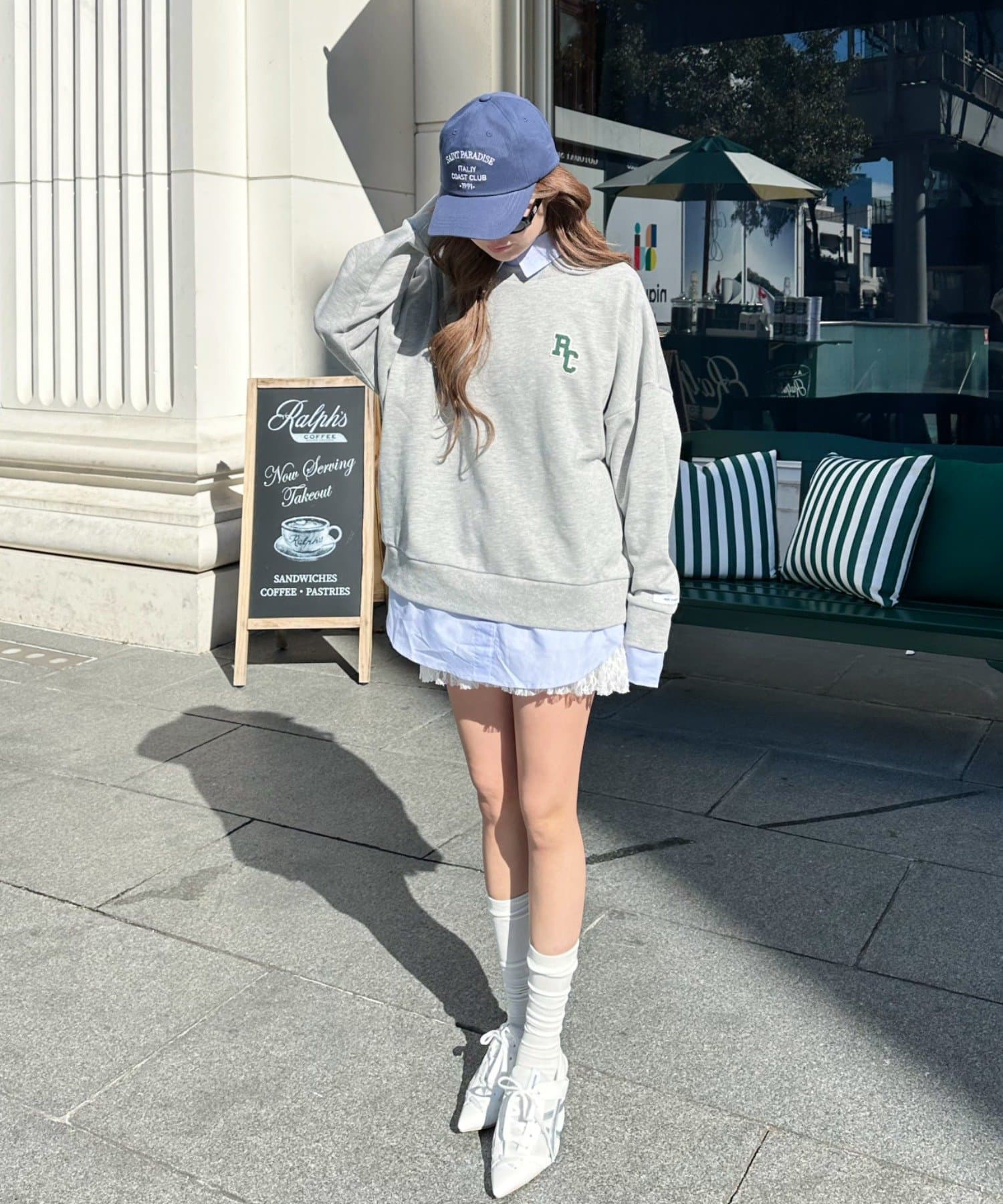 ・カジュアルなロゴと、トレンドな色味がコーデのポイントに。
