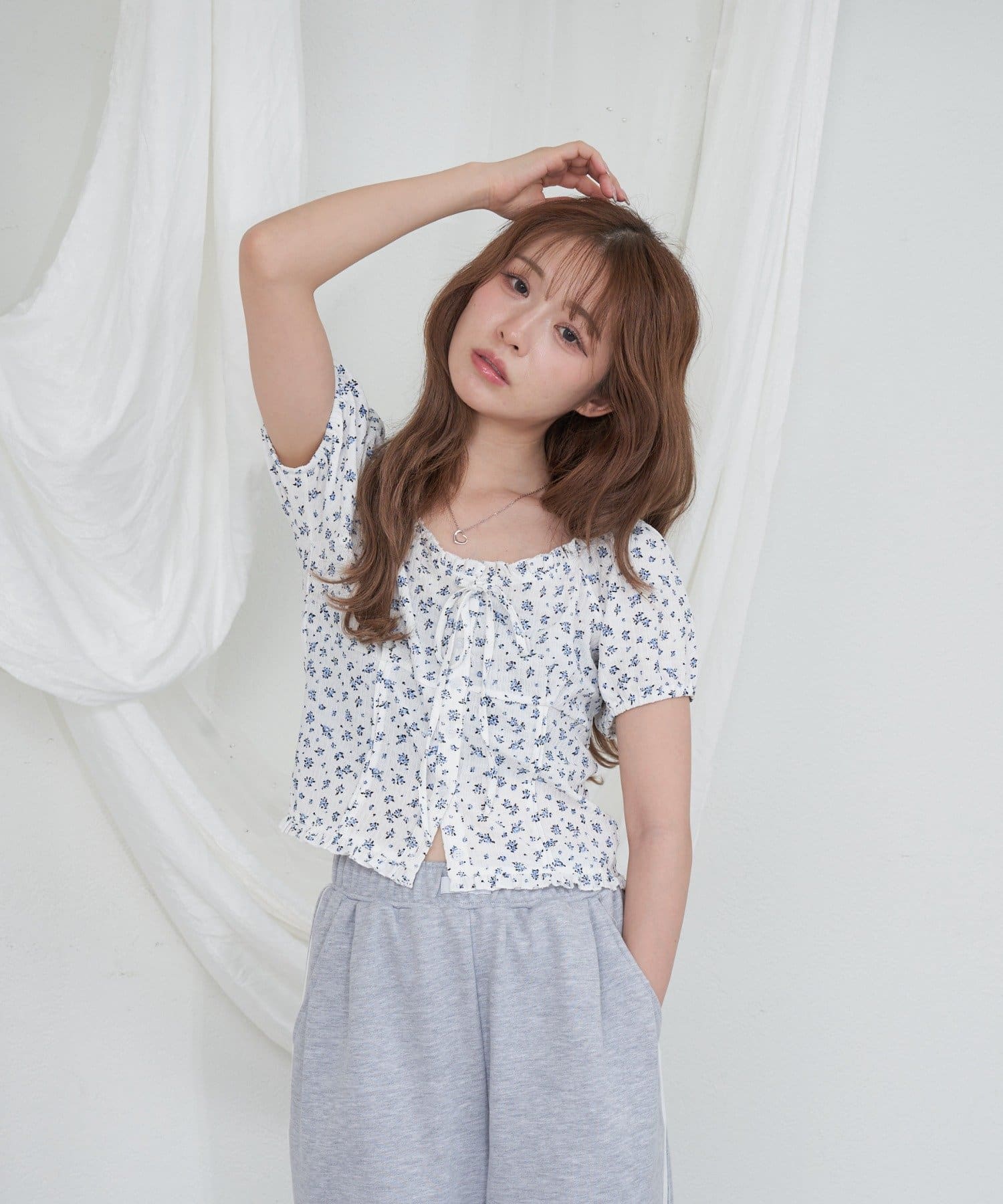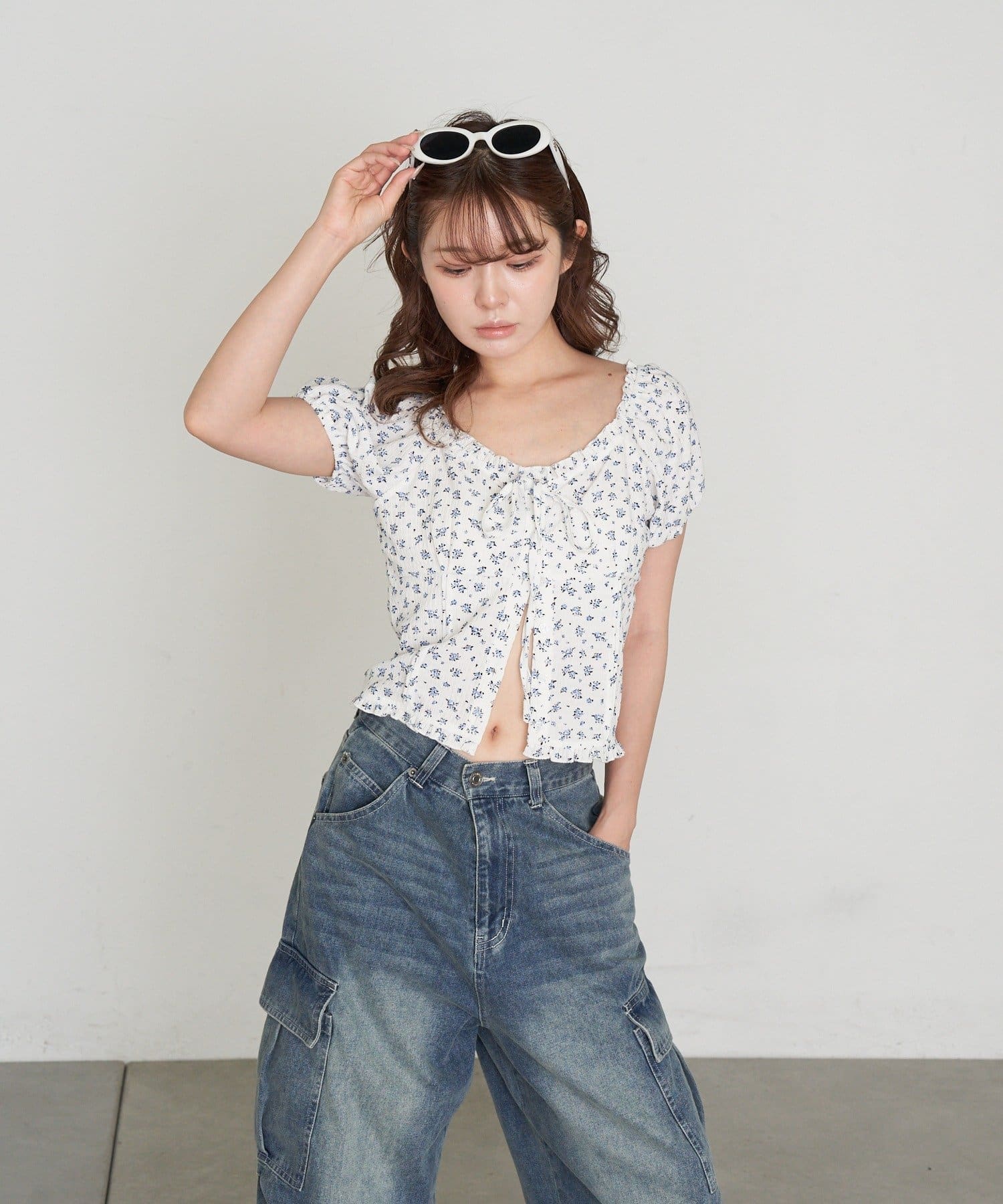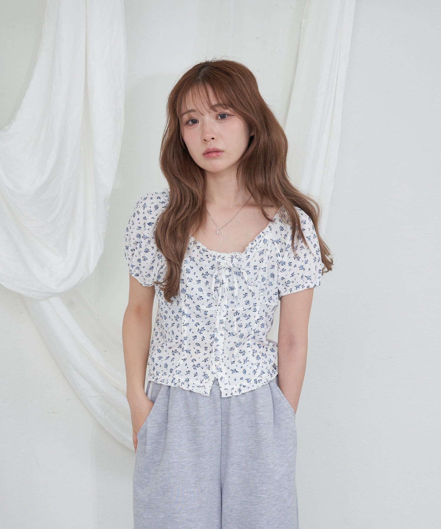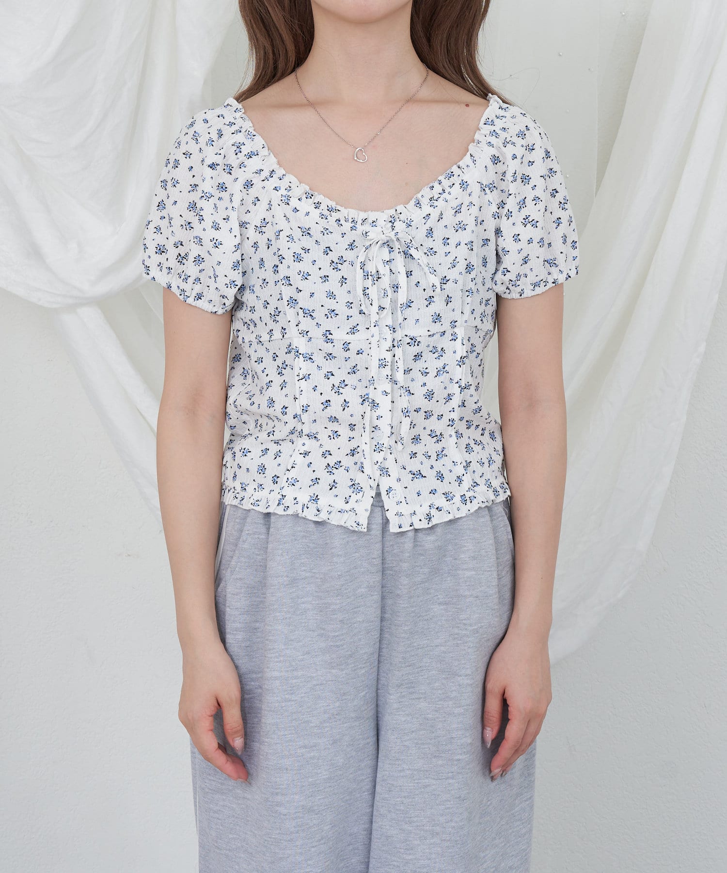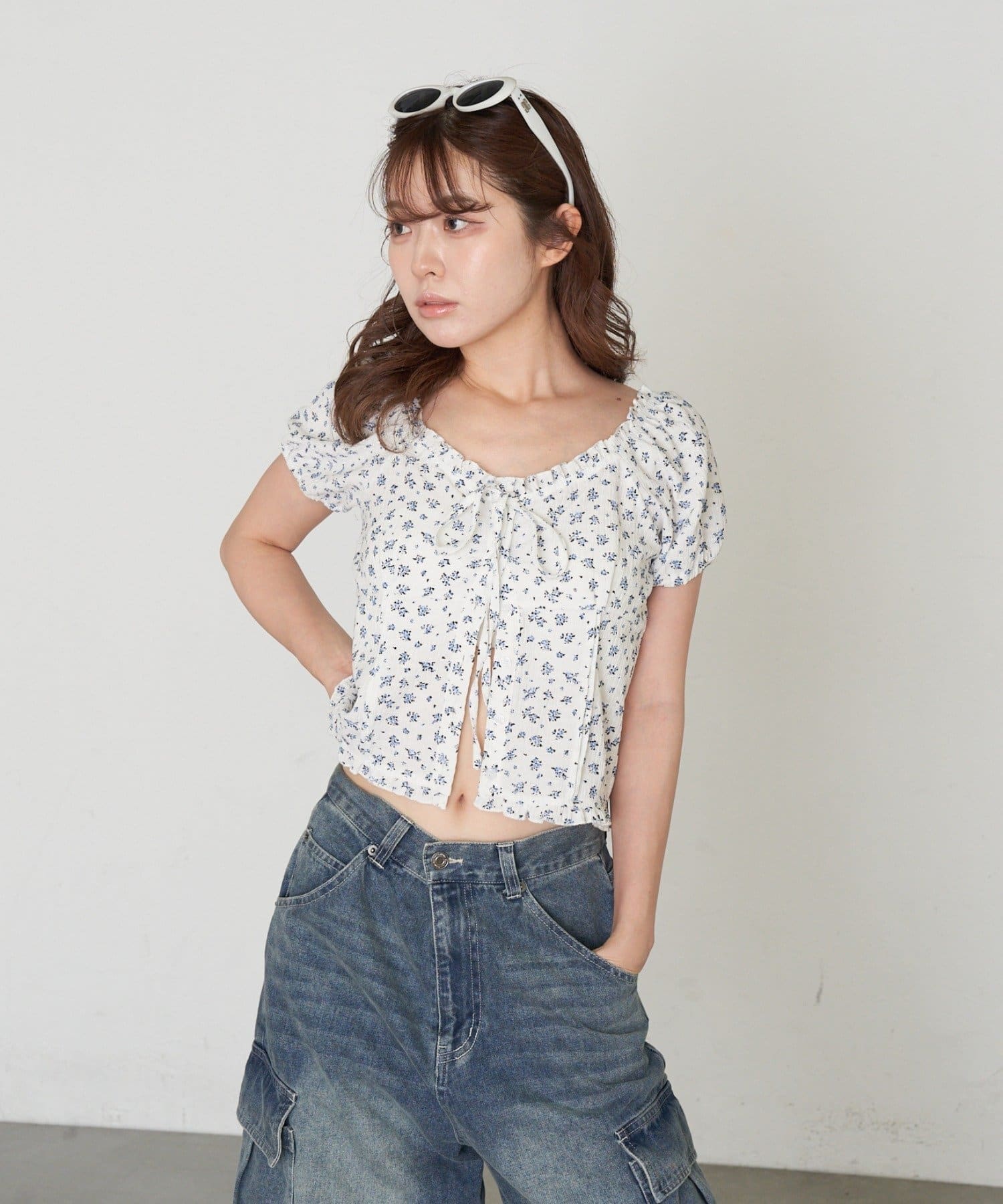海外ファッション / 花柄 / リボン / フリル / パフスリーブ / 羽織り / シャツ