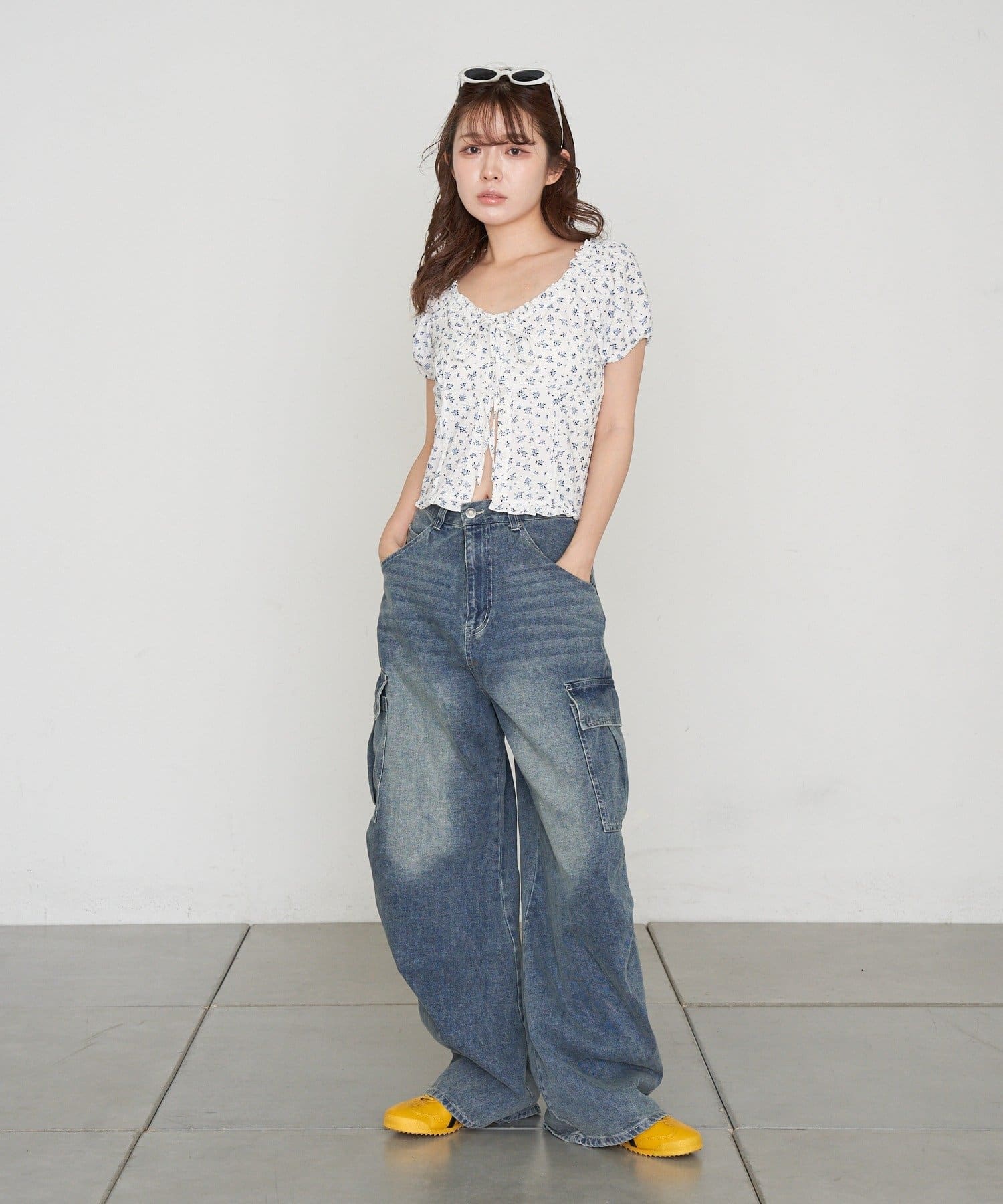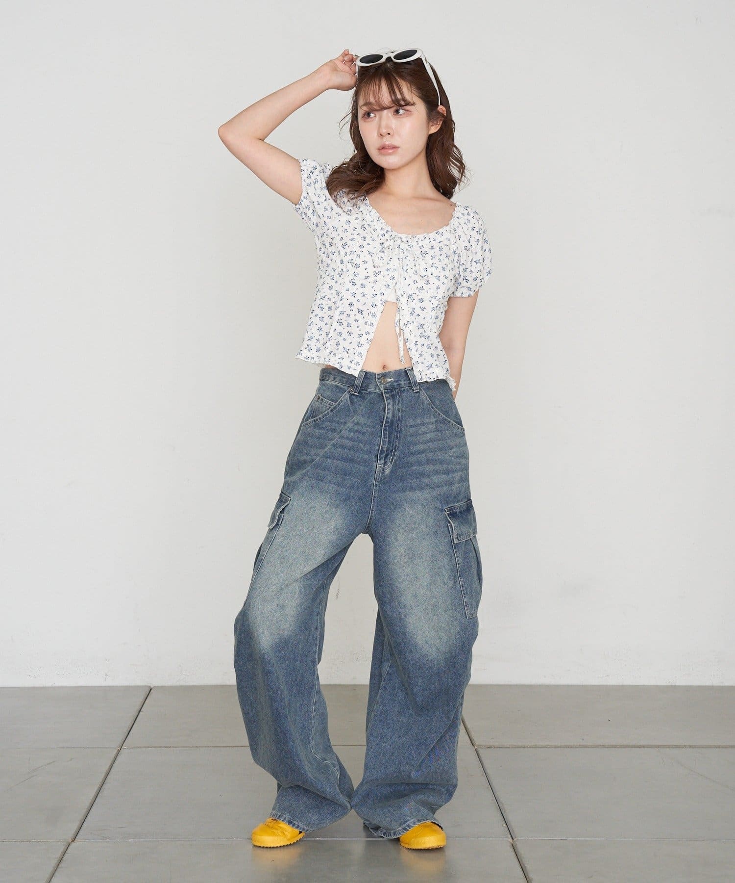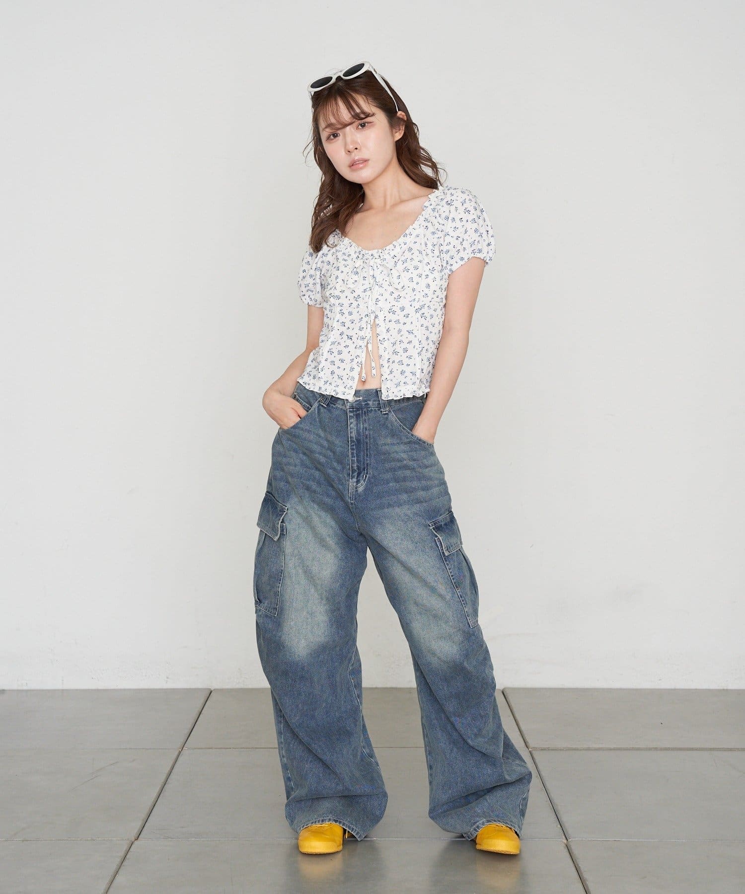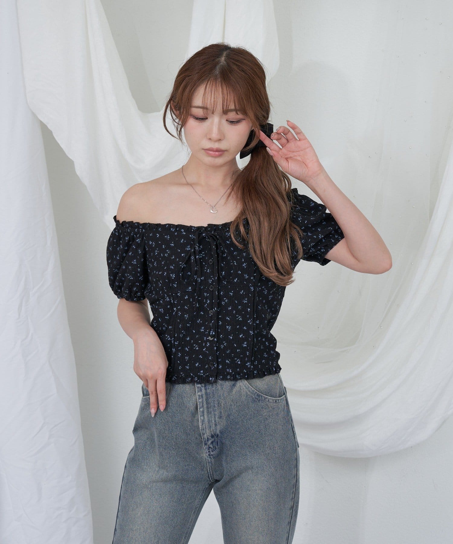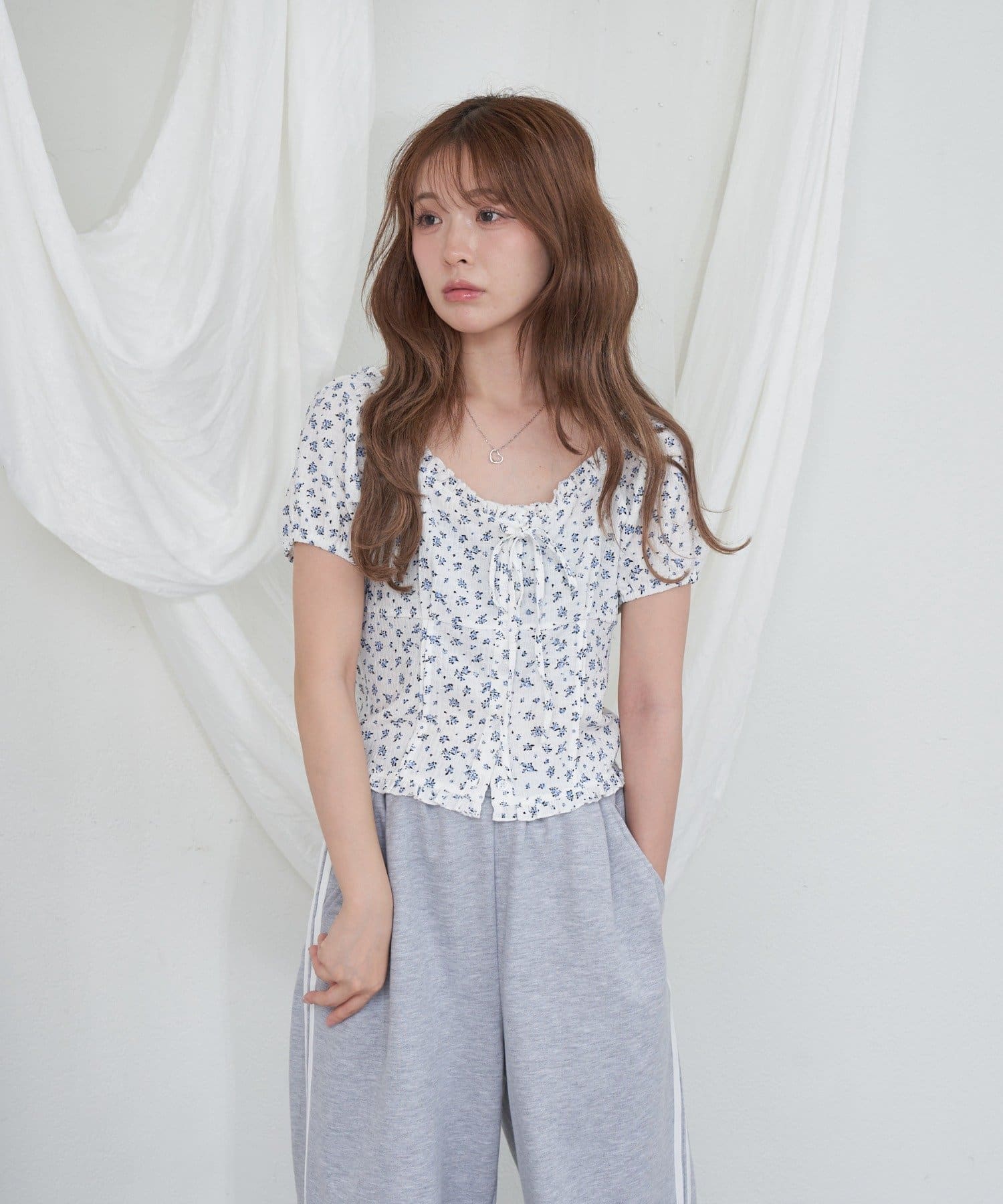 海外ファッション / 花柄 / リボン / フリル / パフスリーブ / 羽織り / シャツ