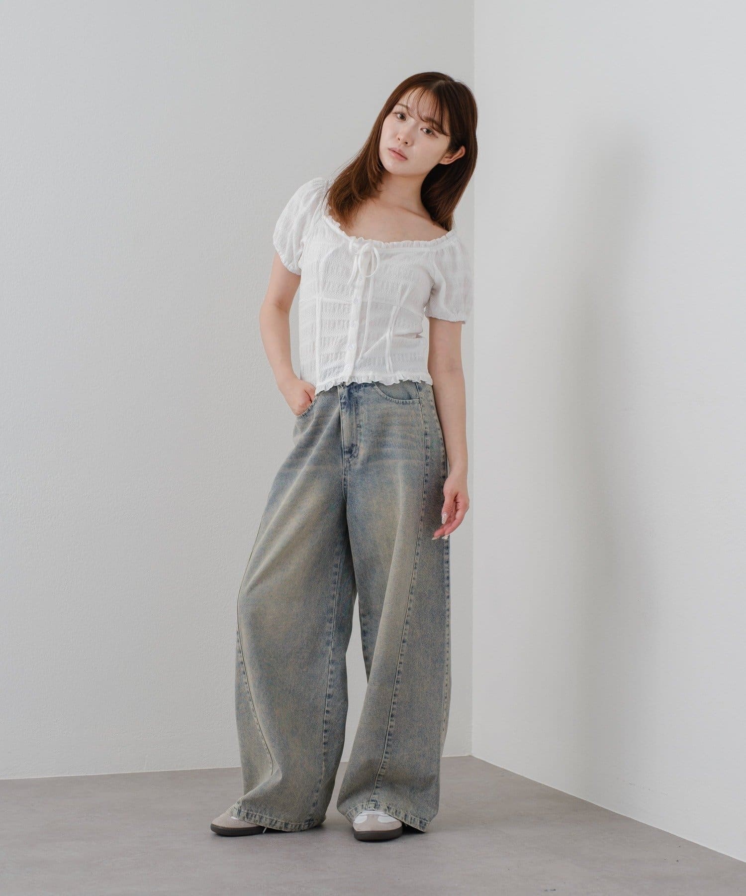 ・コンパクトめなシルエットに、袖のフリルやパフスリーブが女性らしいアイテム。