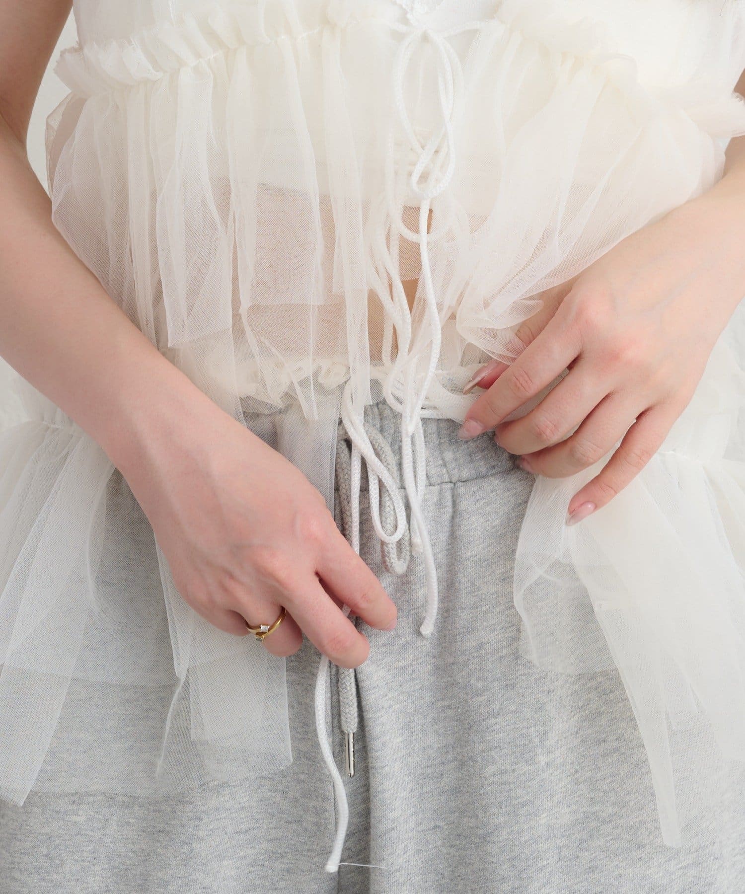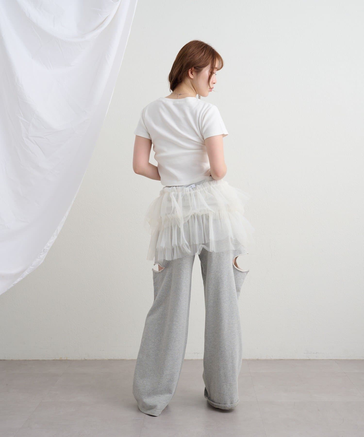 ・チュールとティアードデザインが女性らしいアイテム。
