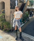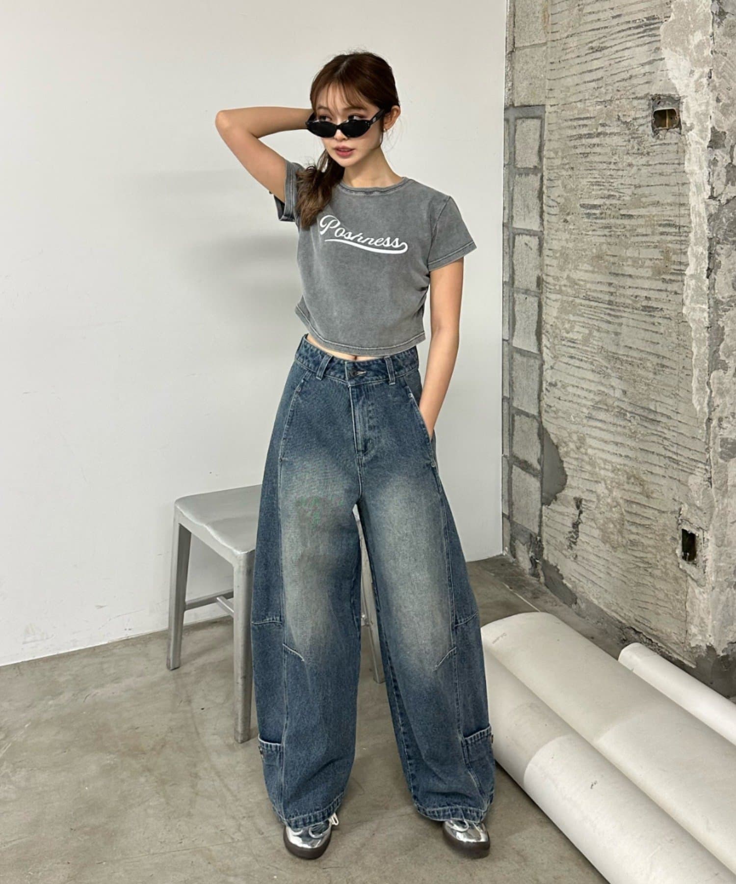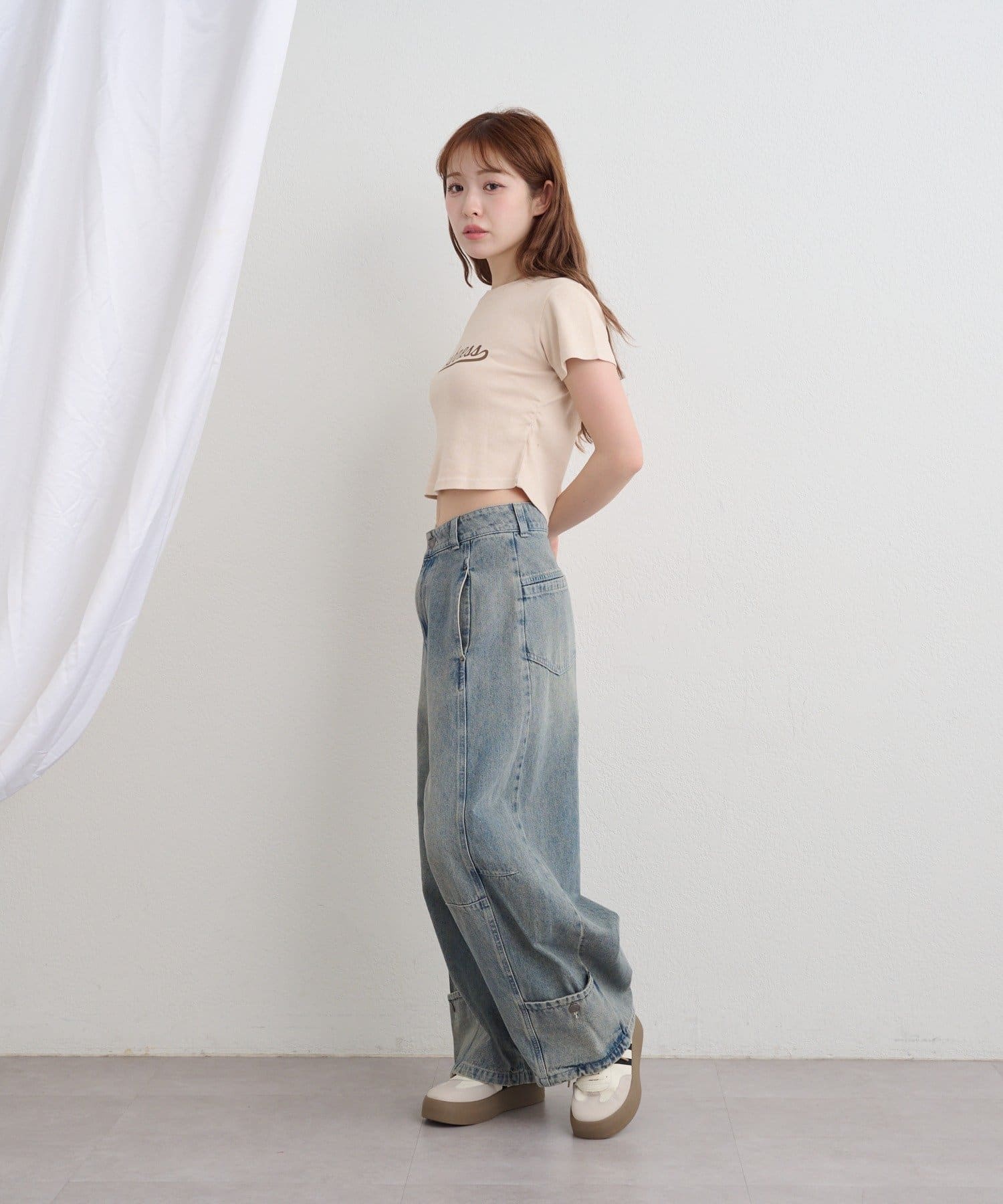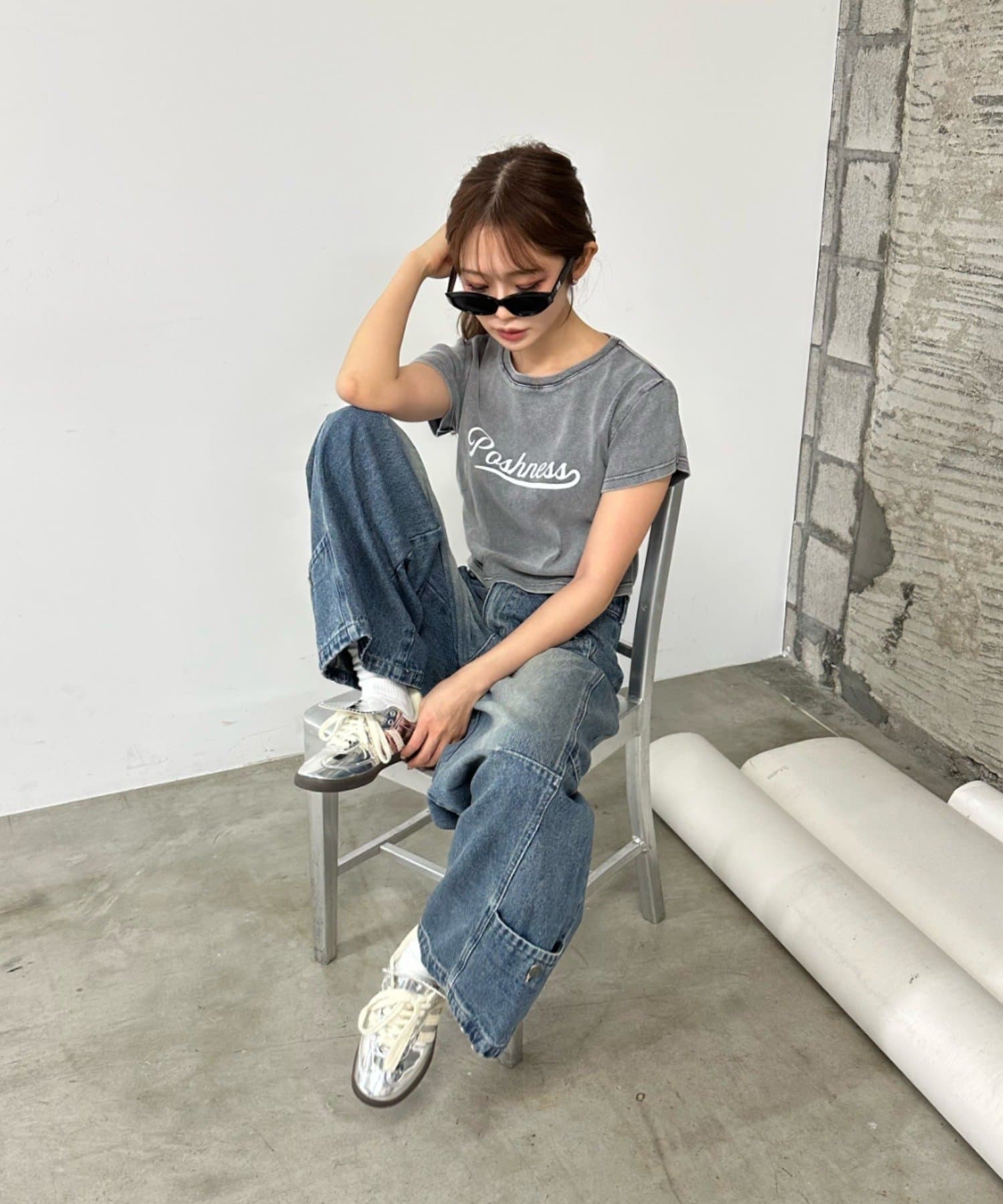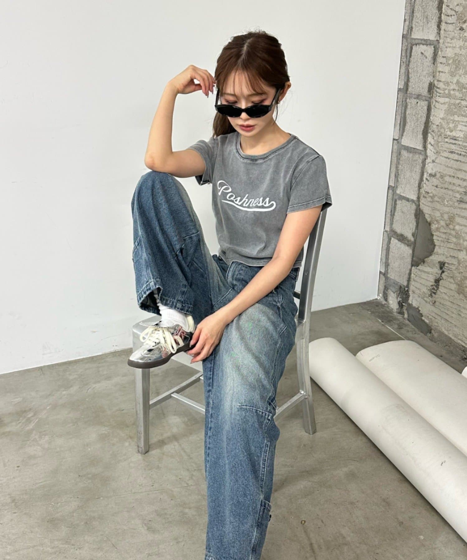 ・ピグメント加工×デニムのスタイルがカジュアルな気分にぴったり。