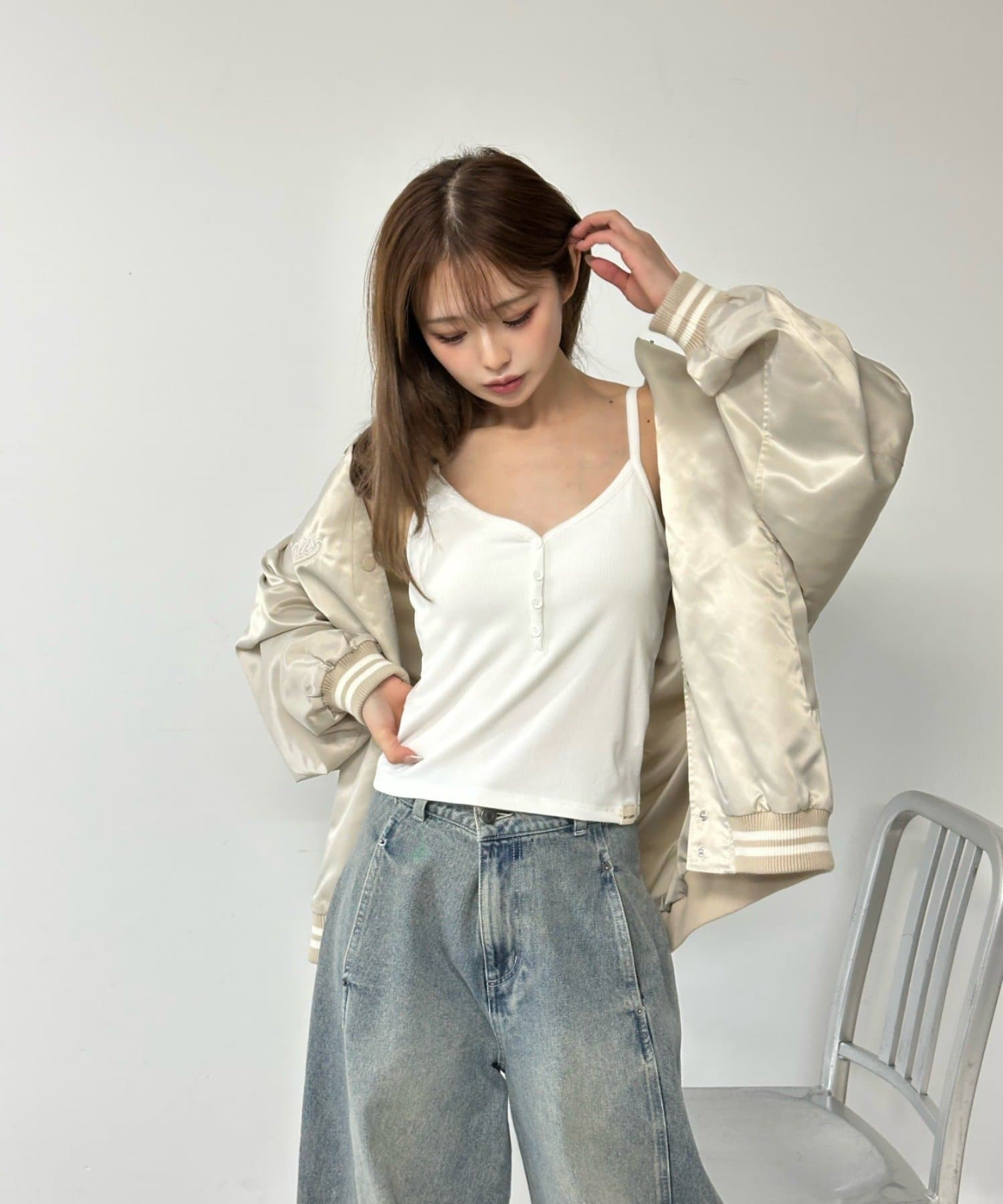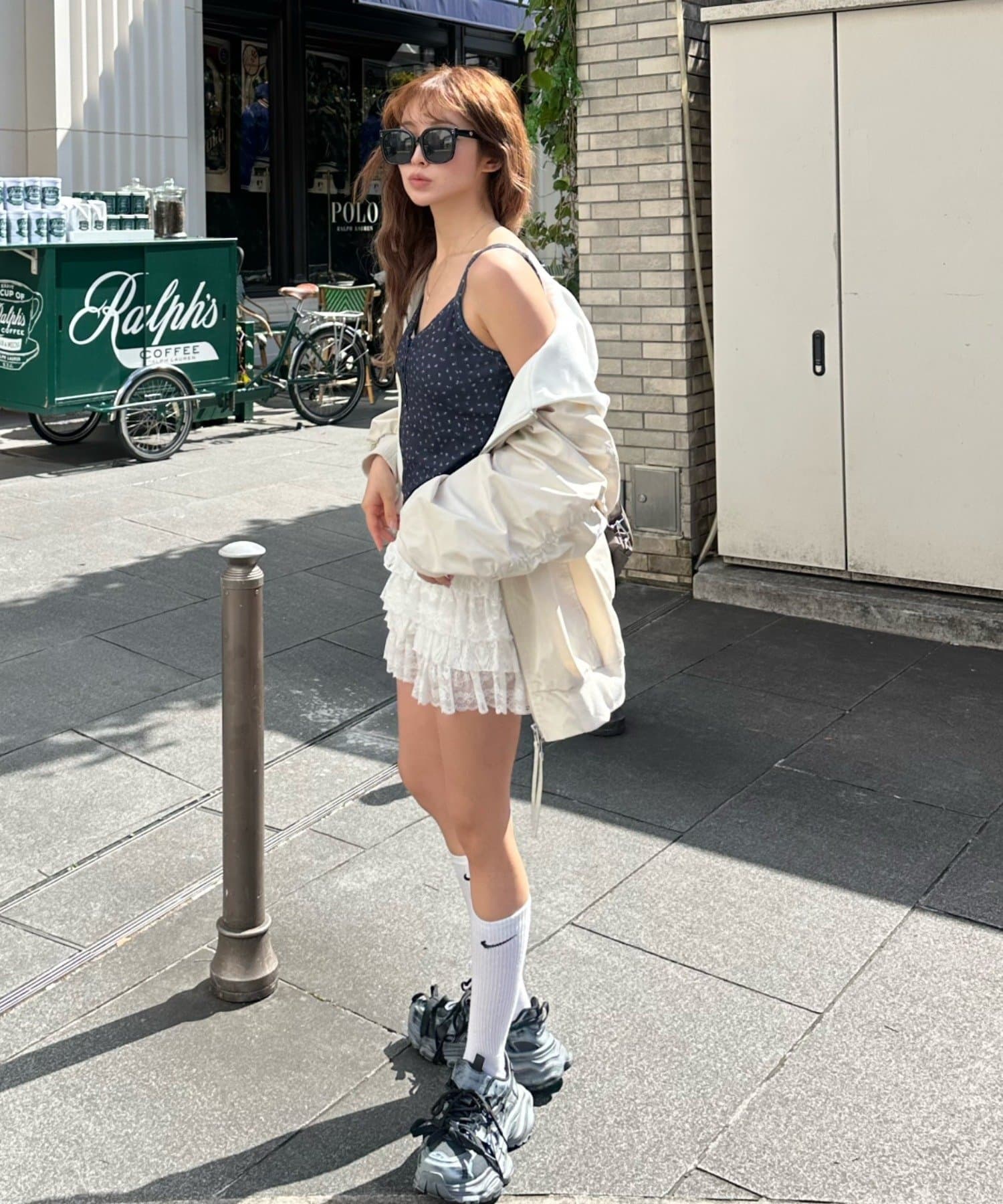 ・タイトなシルエット感のため、ルーズなボトムスにもバランスよく着用して頂けます。
