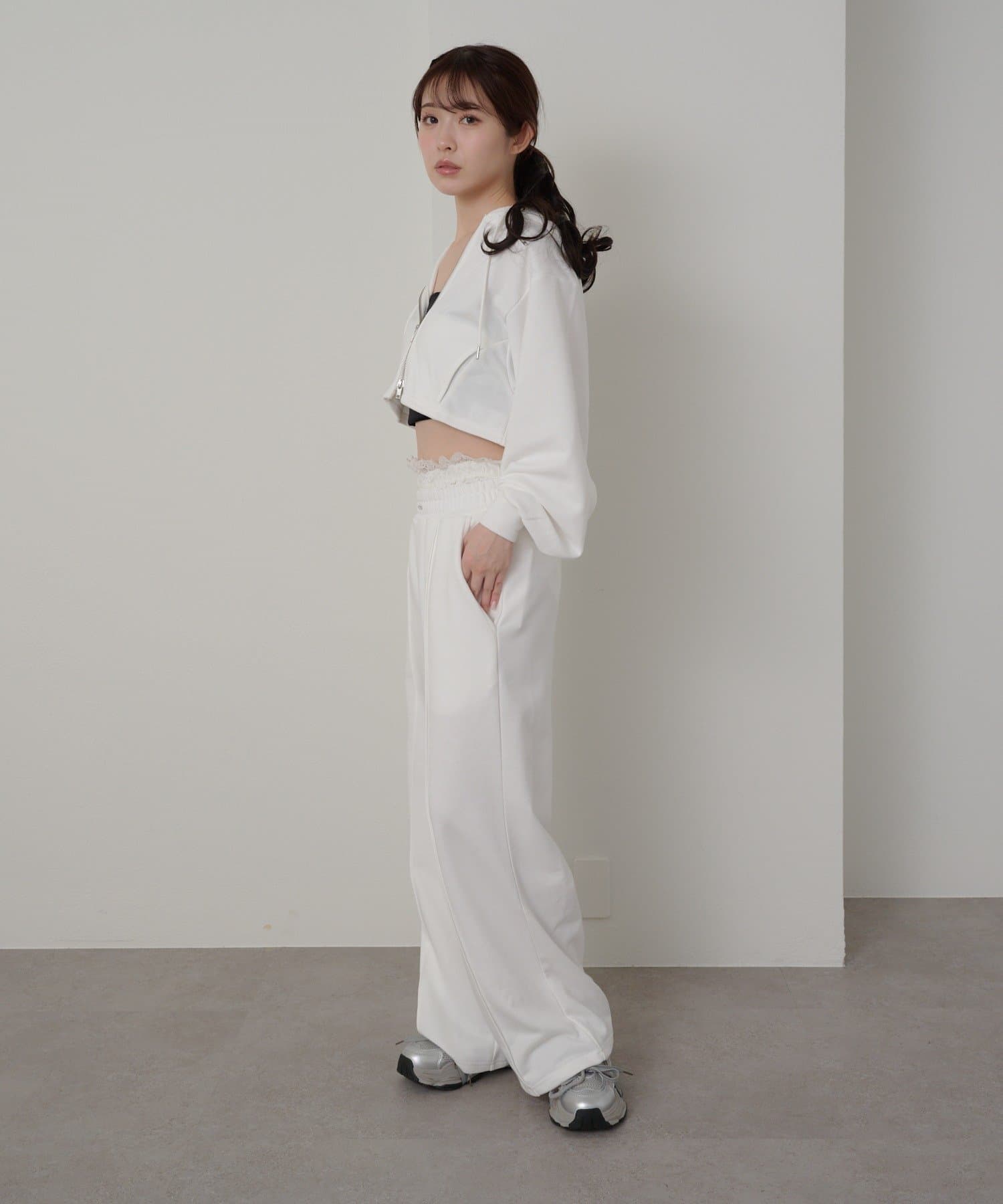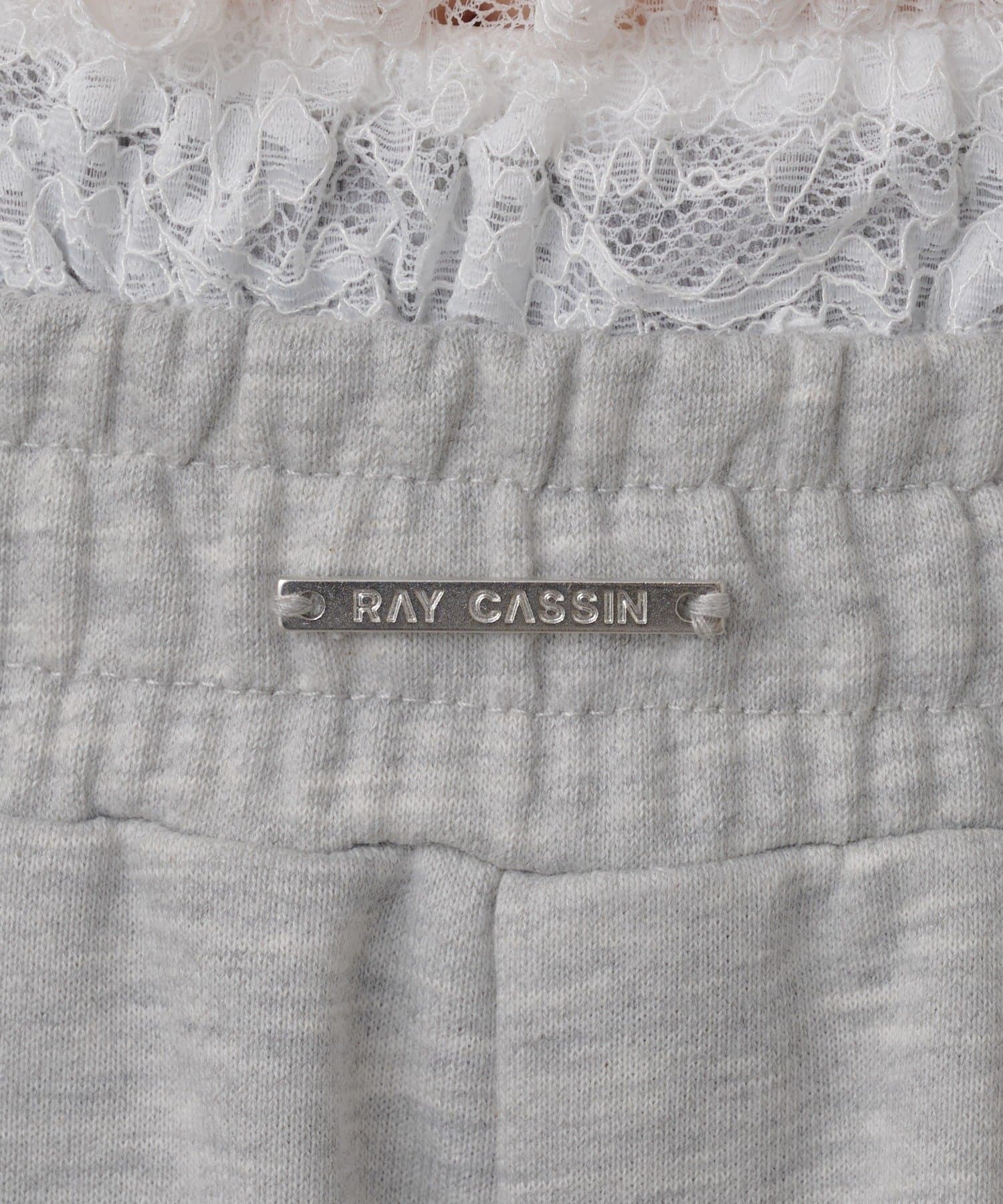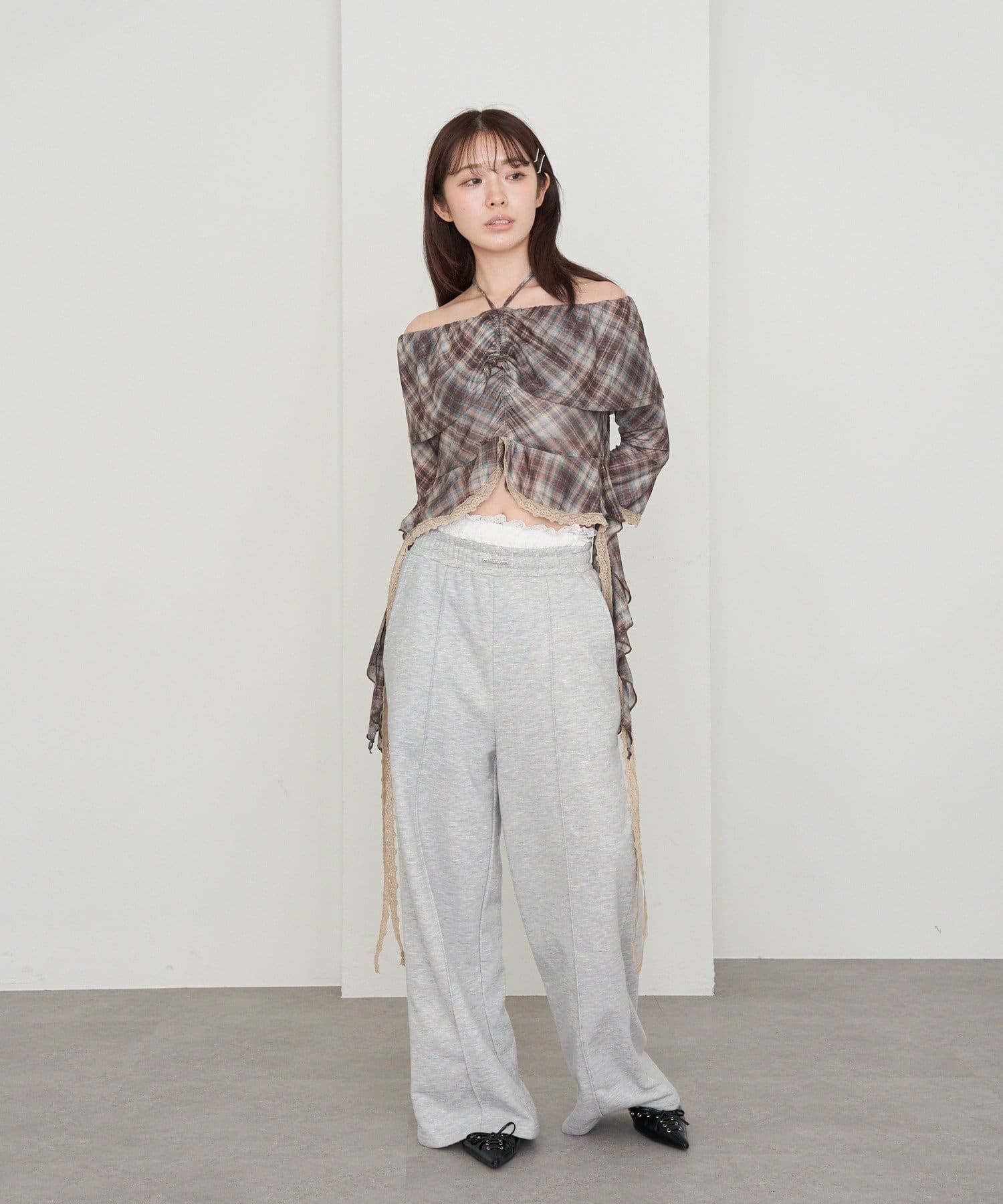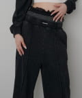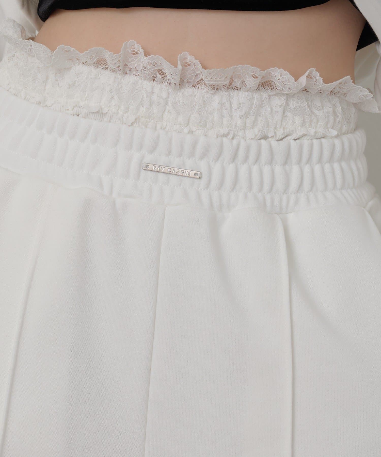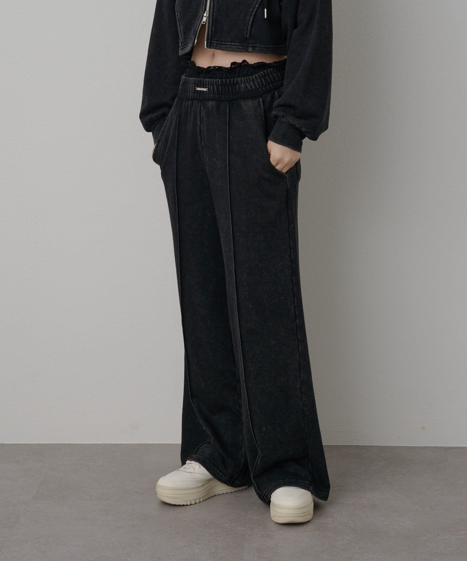 ・ウエストのレースがポイントのレイヤードスウェットパンツ。