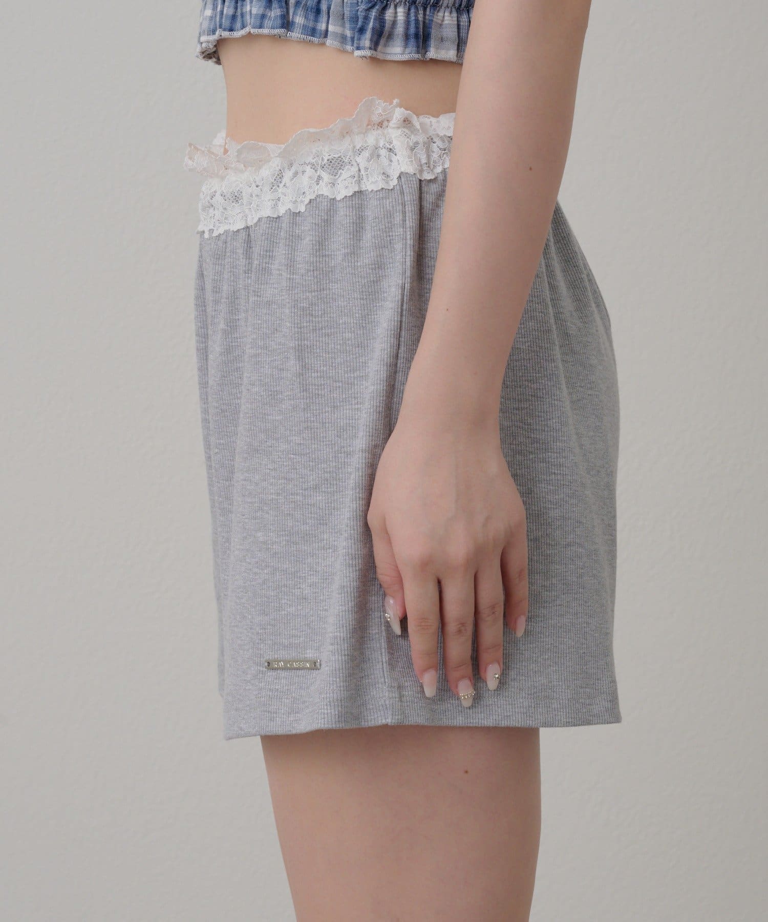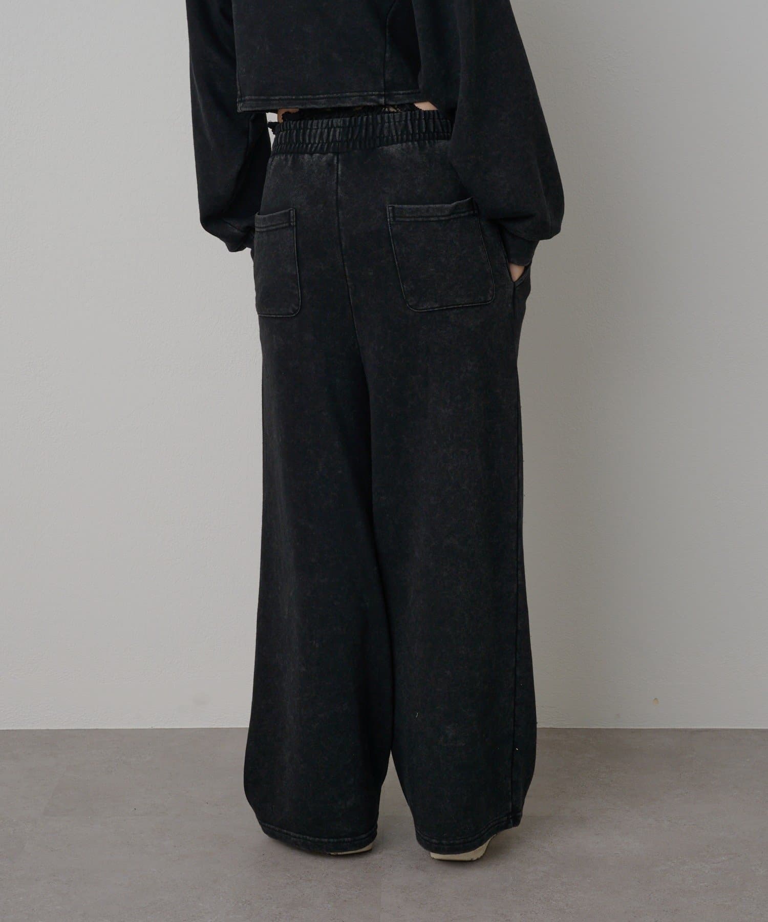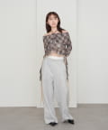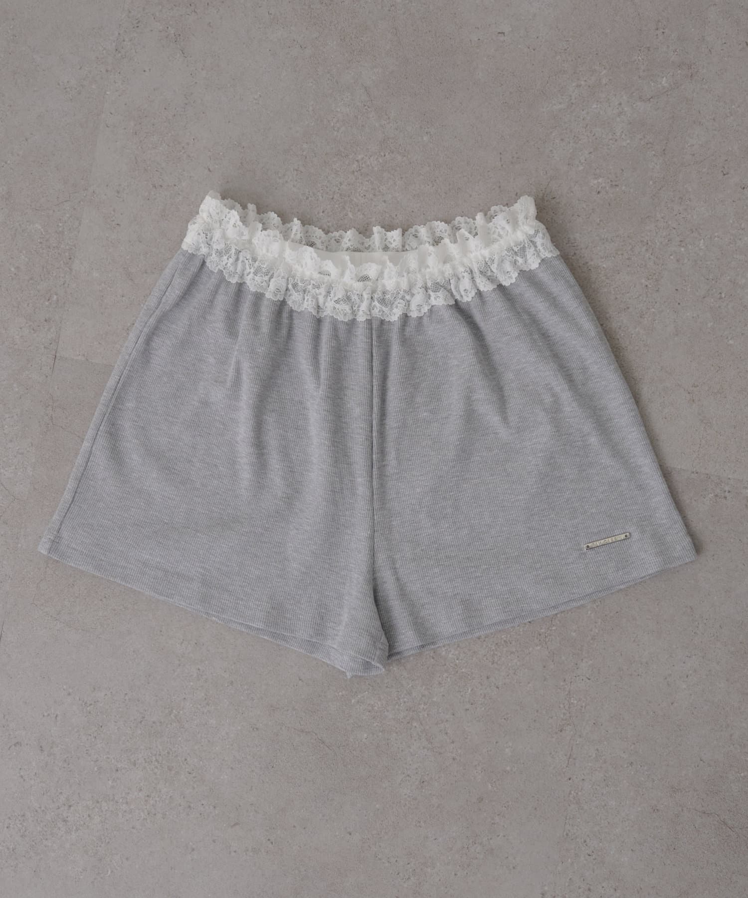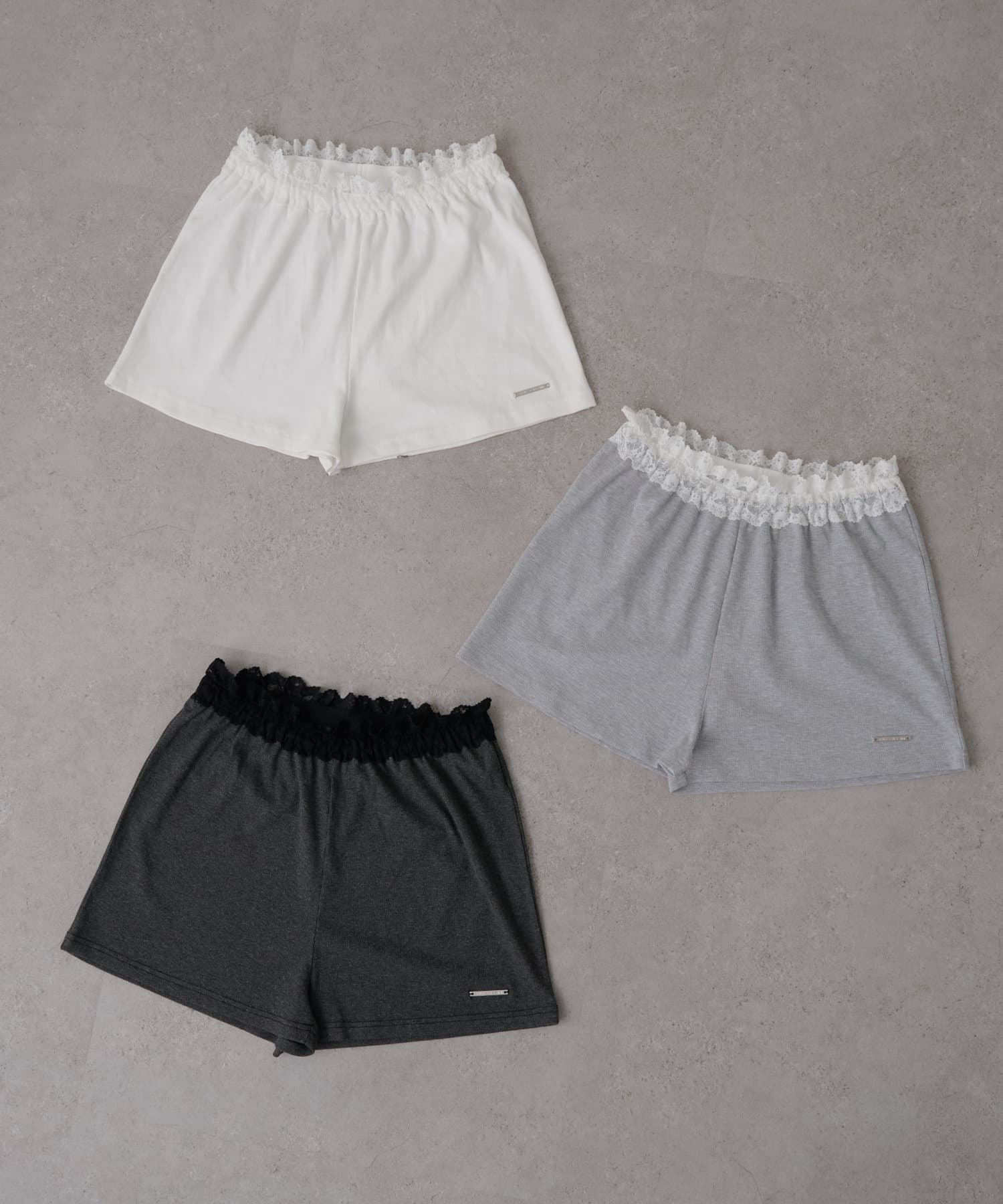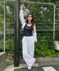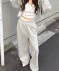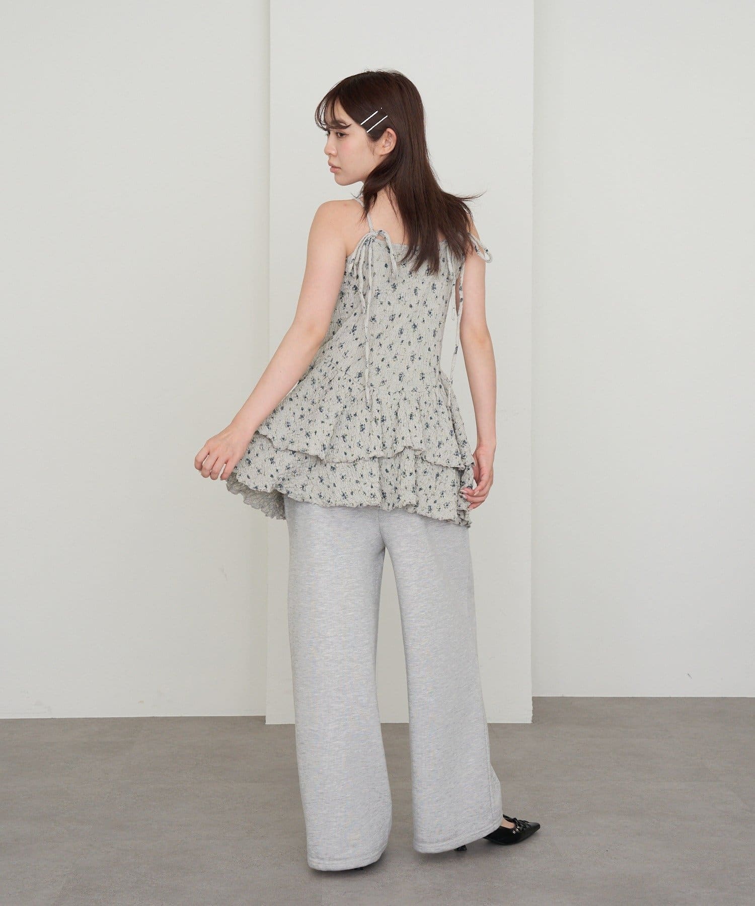 ・ウエストのレースがポイントのレイヤードスウェットパンツ。