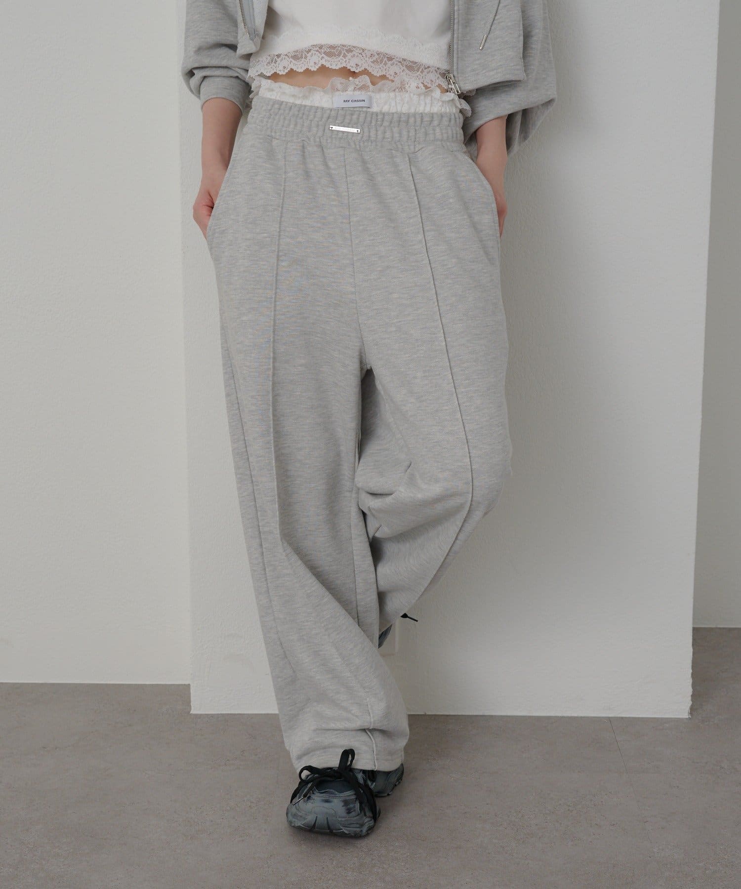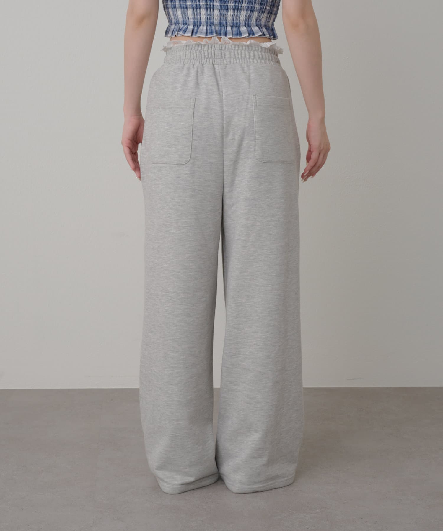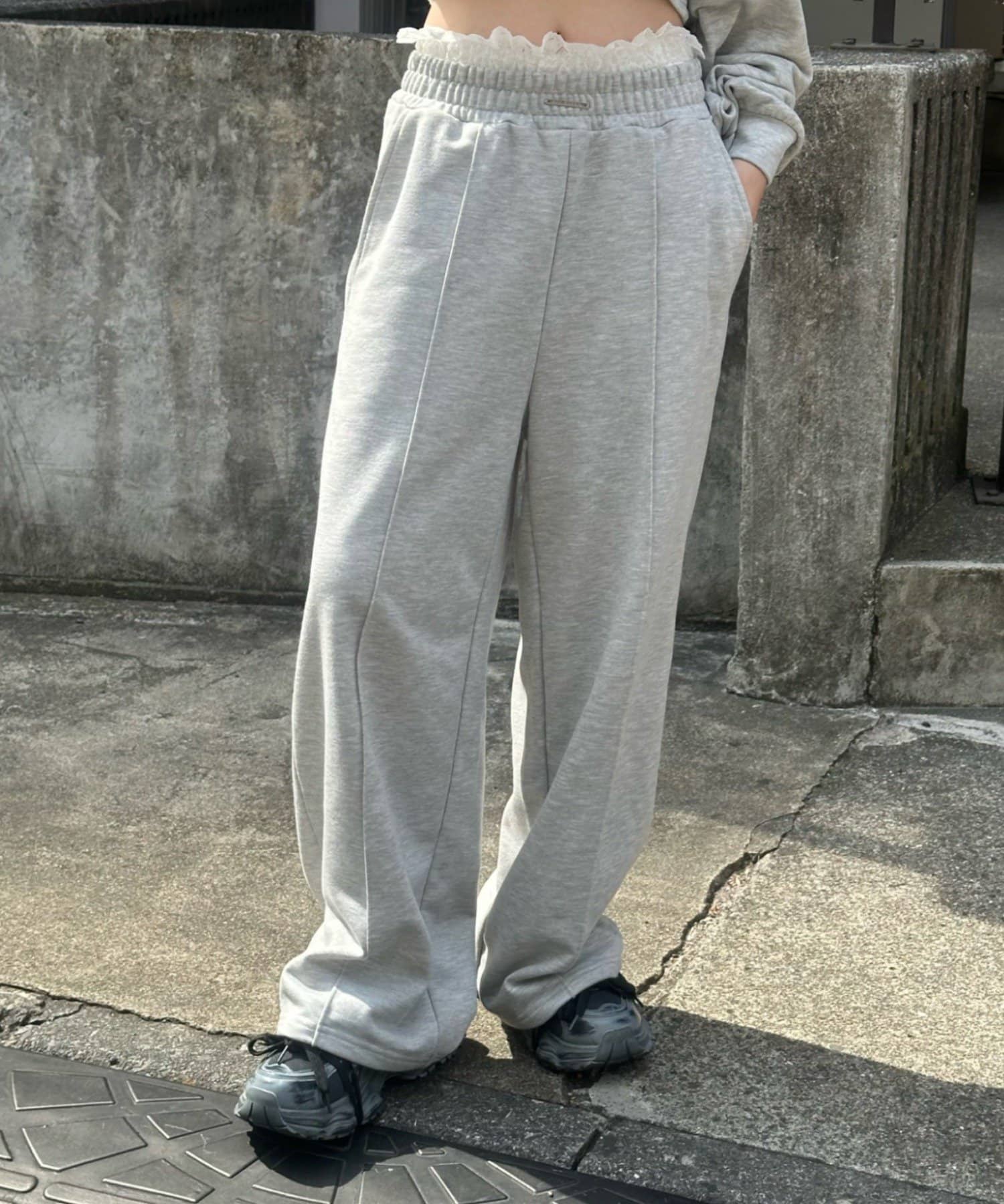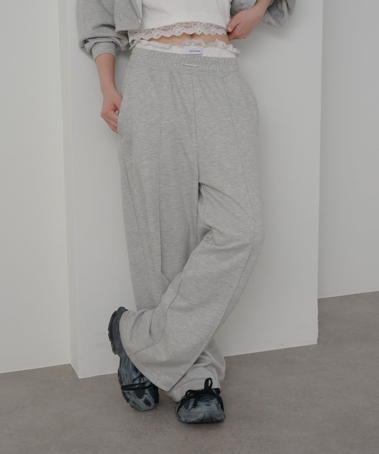 【部屋着に見えない/ウエスト総ゴム】ウエストレースレイヤードスウェットパンツ