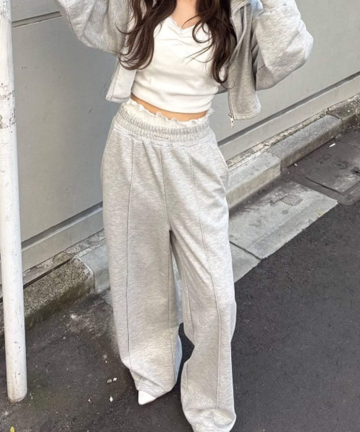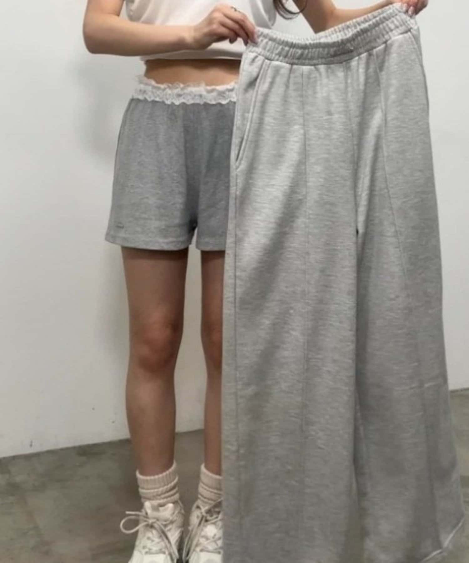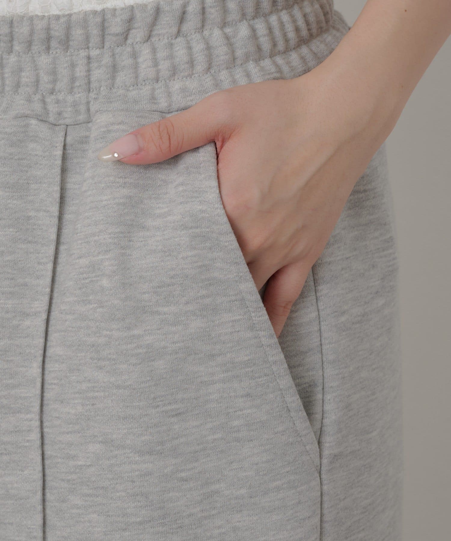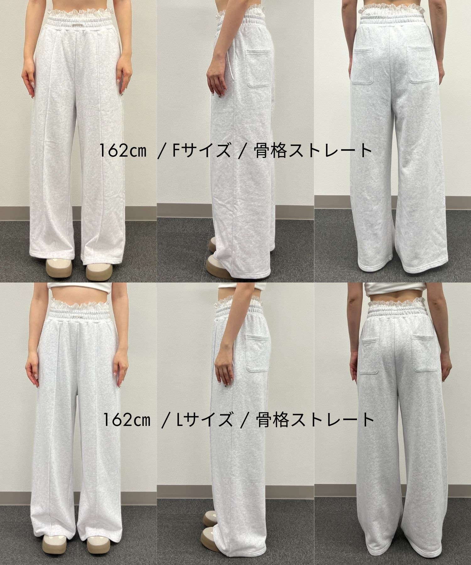 【部屋着に見えない/ウエスト総ゴム】ウエストレースレイヤードスウェットパンツ