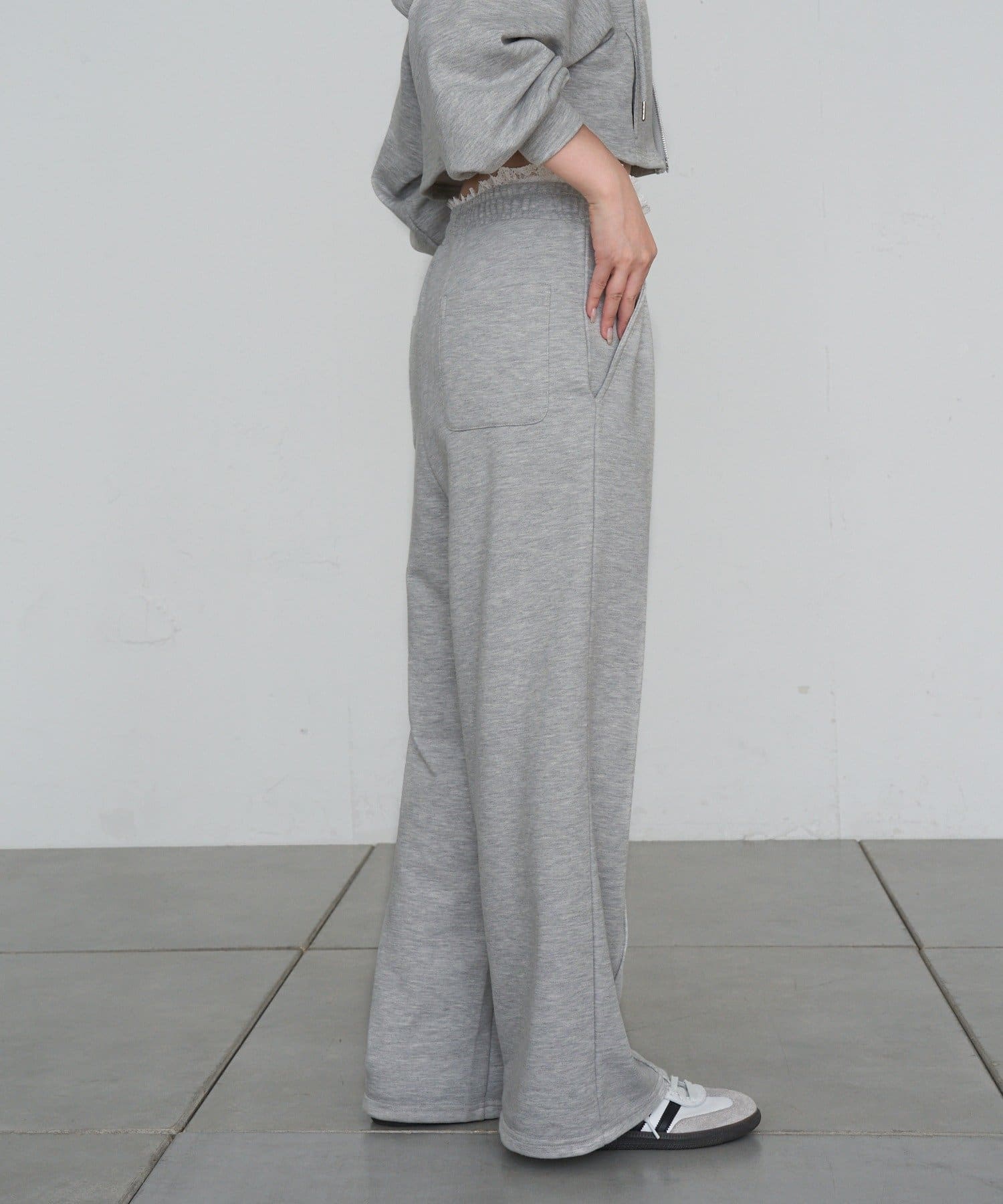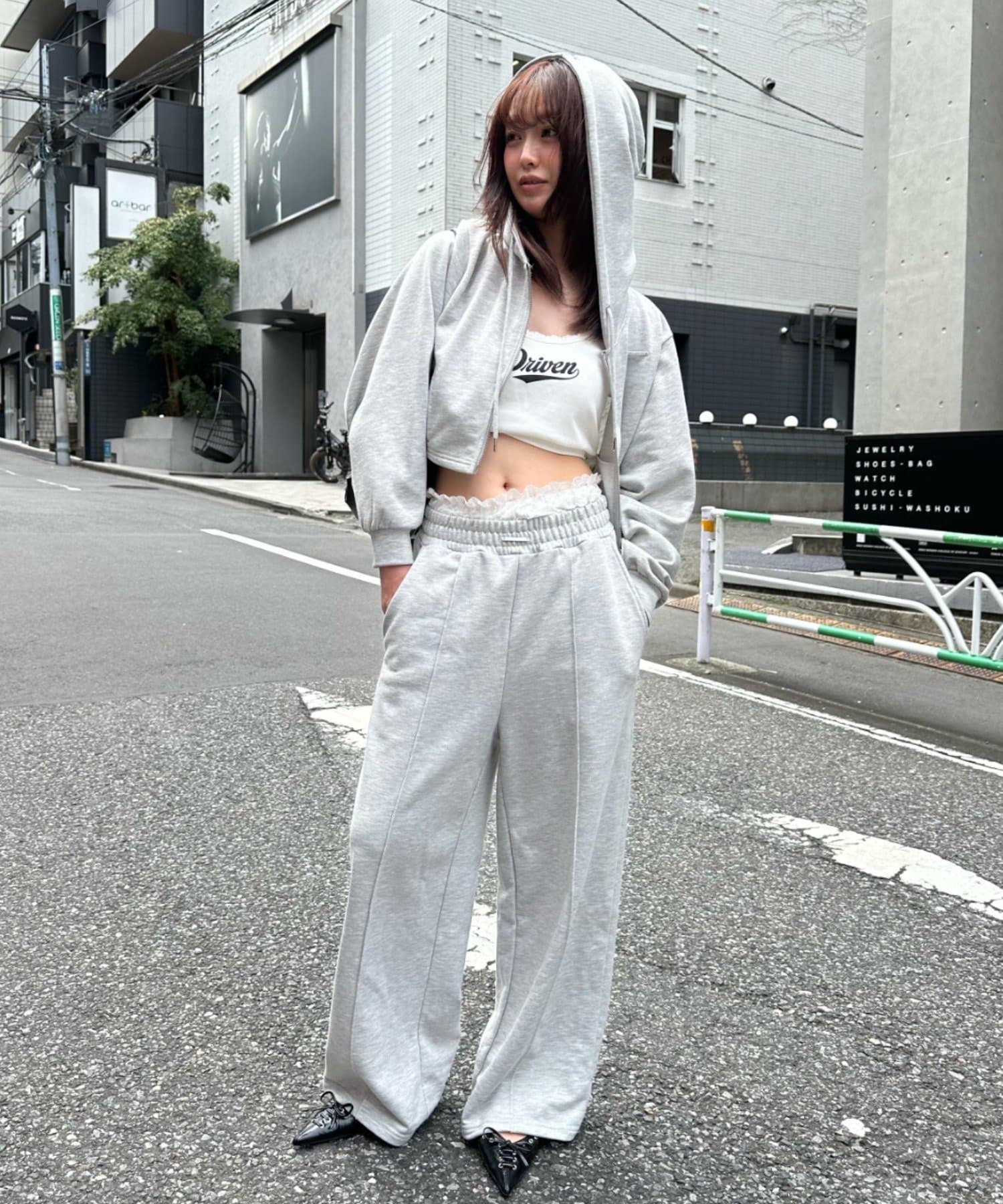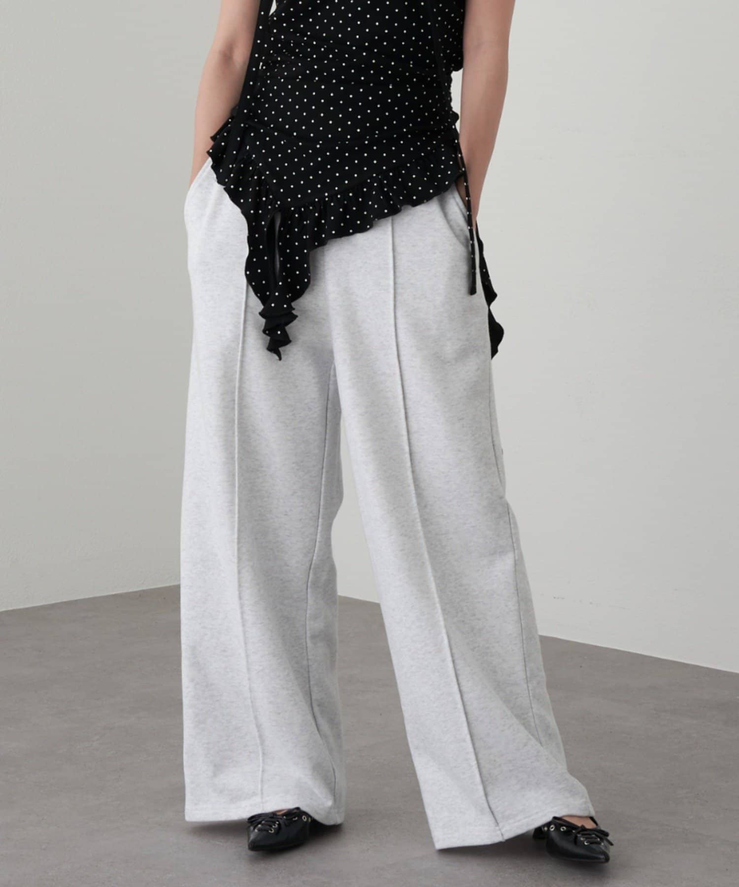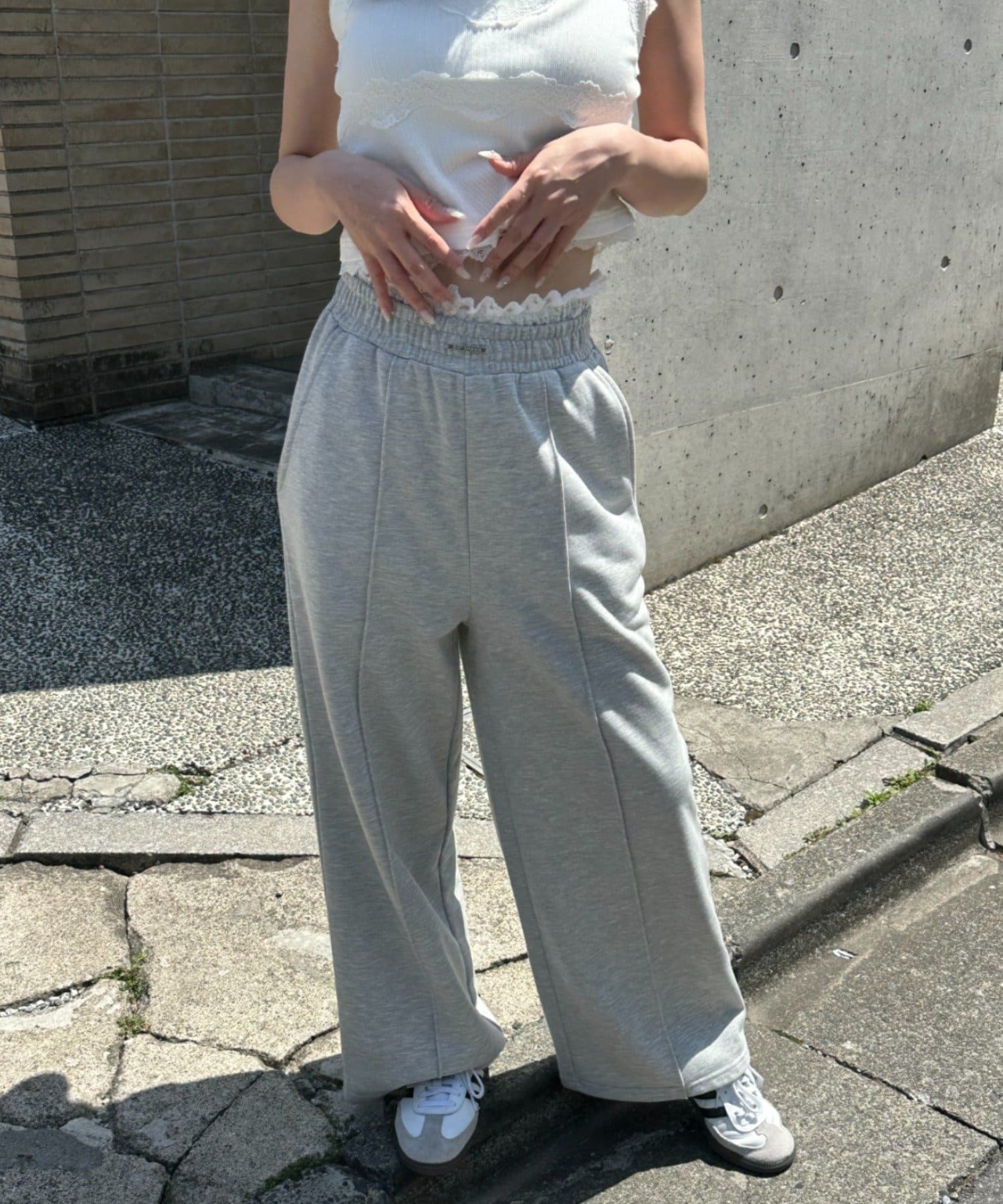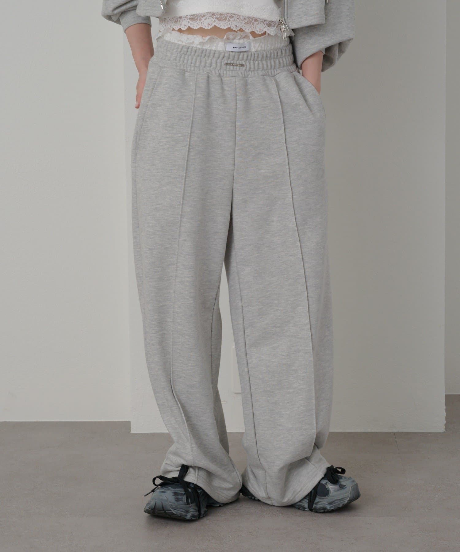 【部屋着に見えない/ウエスト総ゴム】ウエストレースレイヤードスウェットパンツ