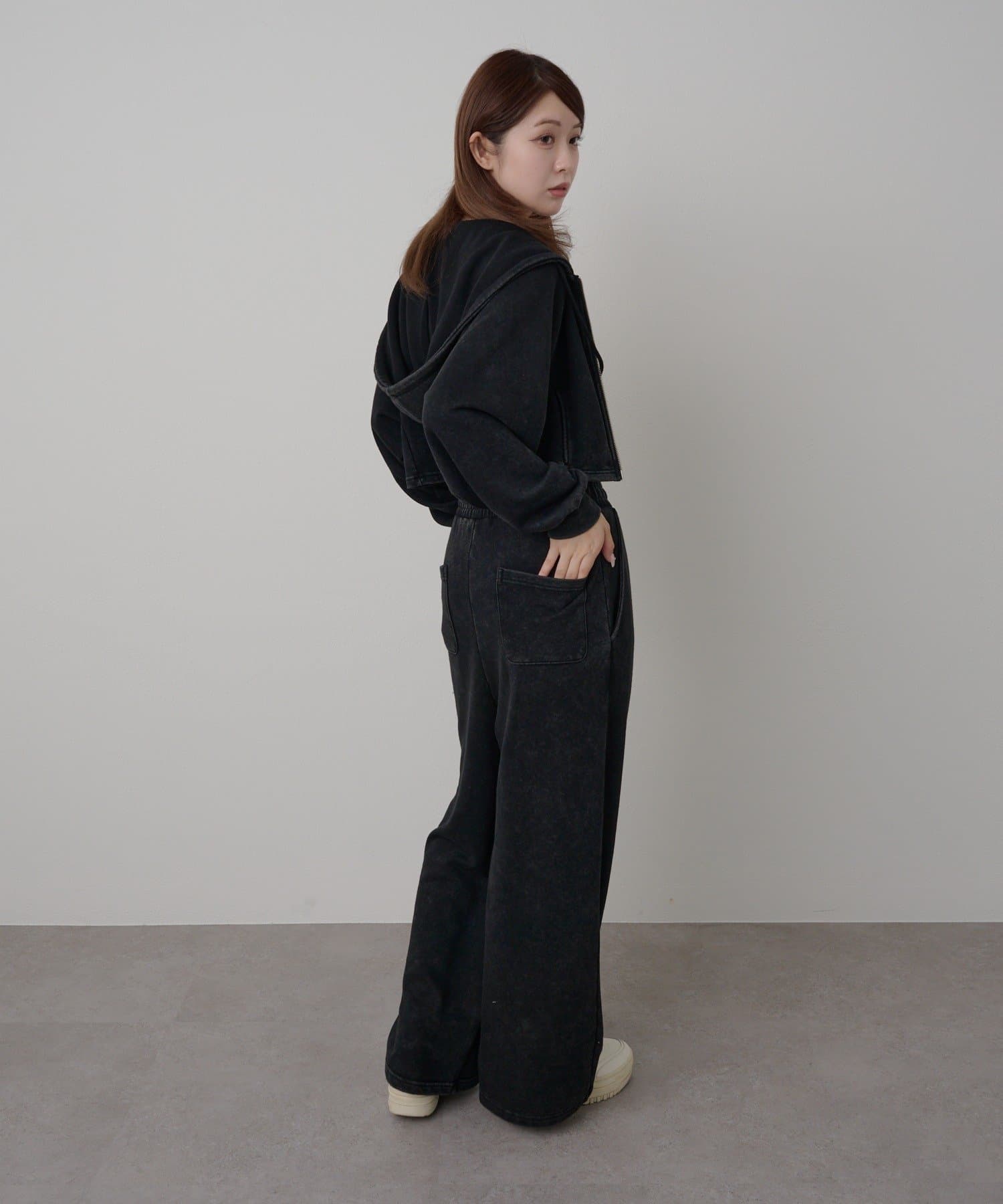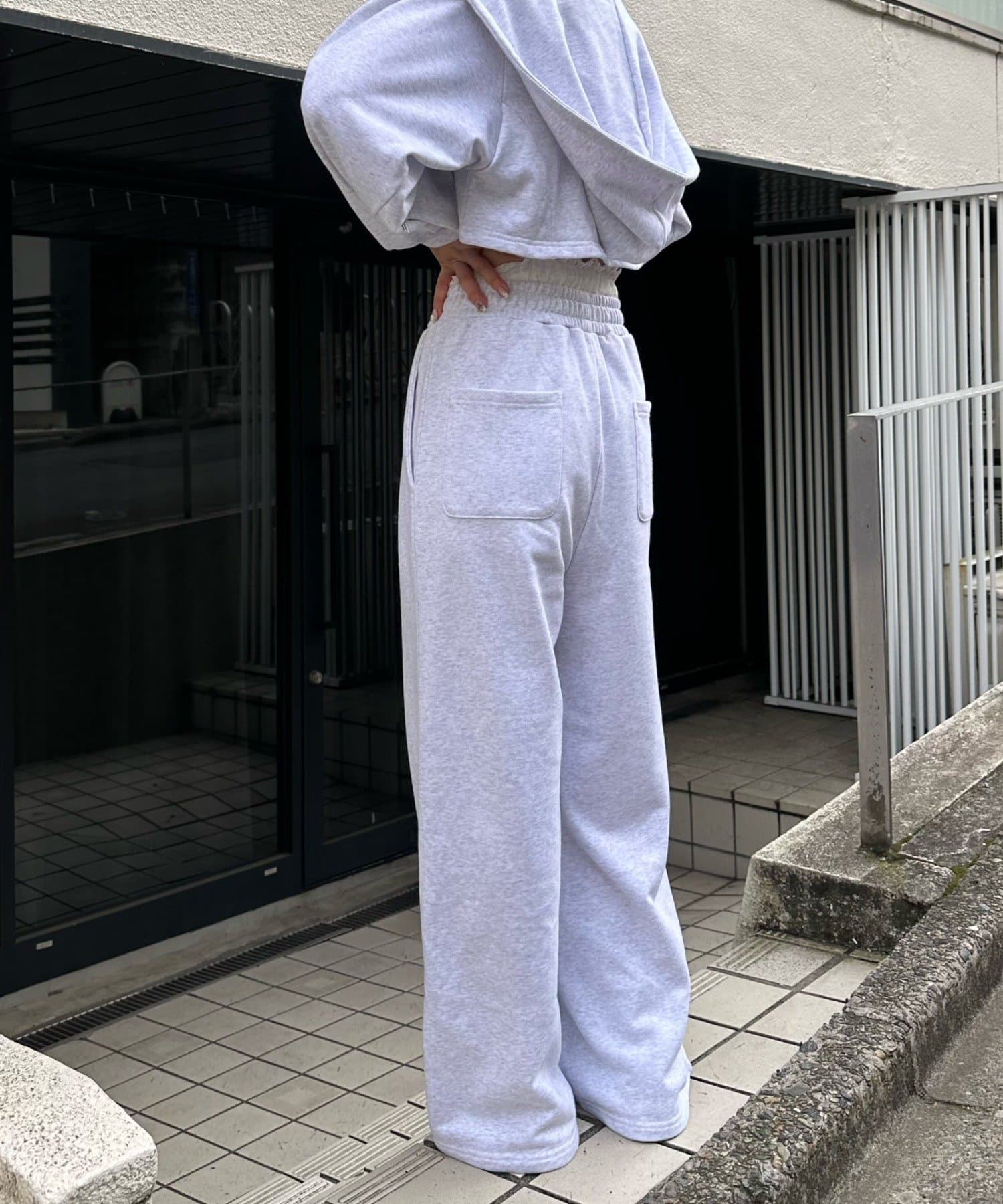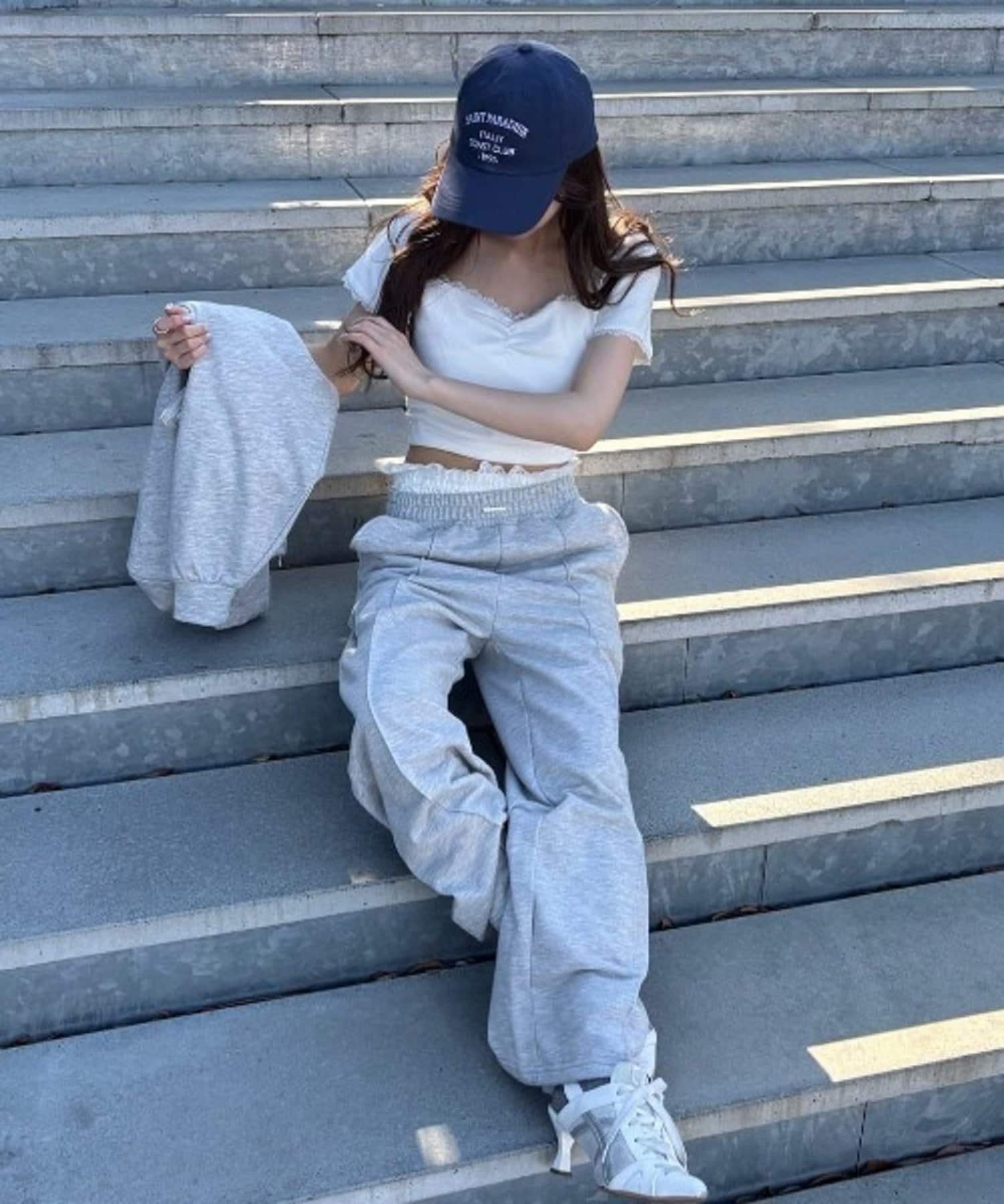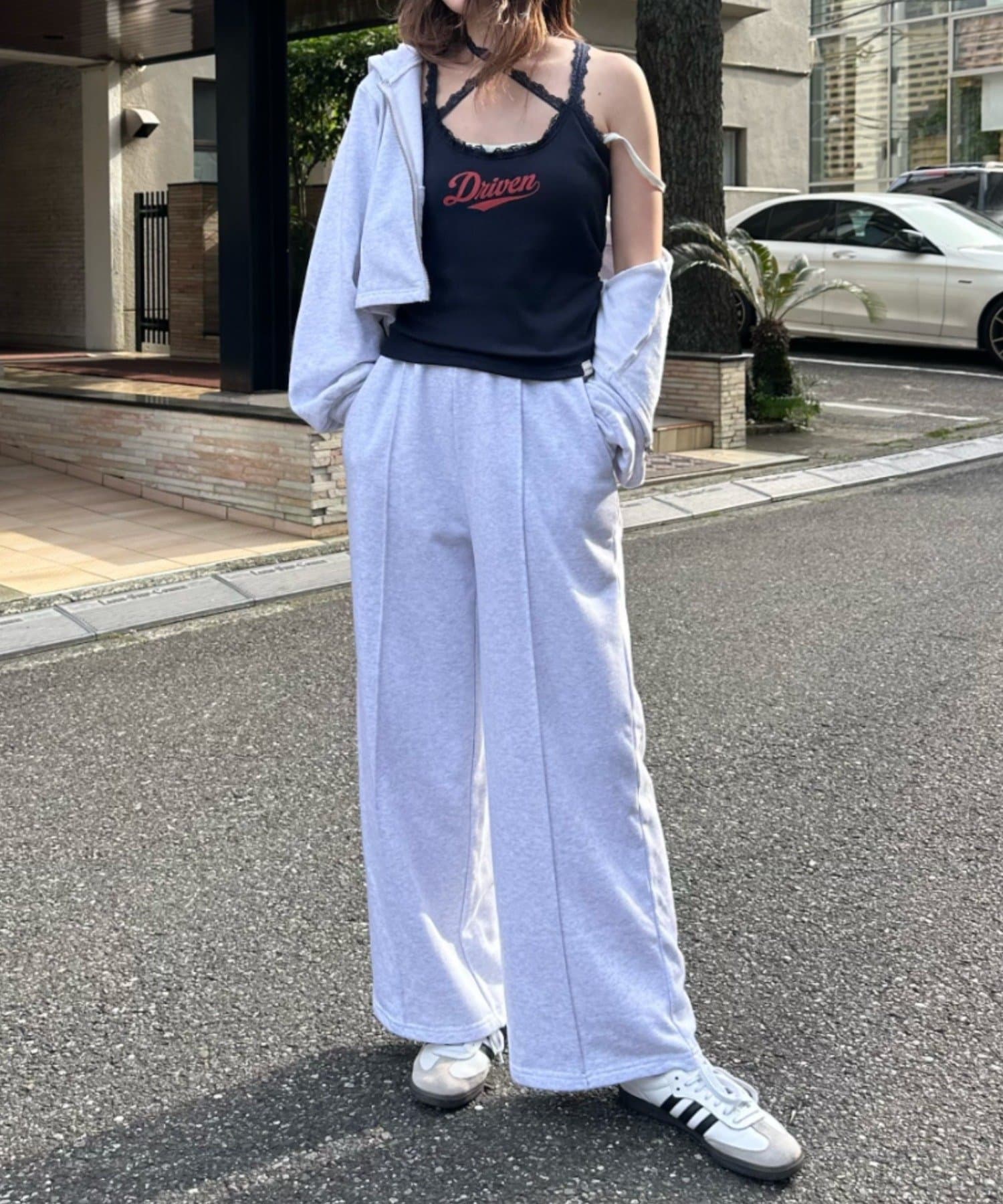 【部屋着に見えない/ウエスト総ゴム】ウエストレースレイヤードスウェットパンツ