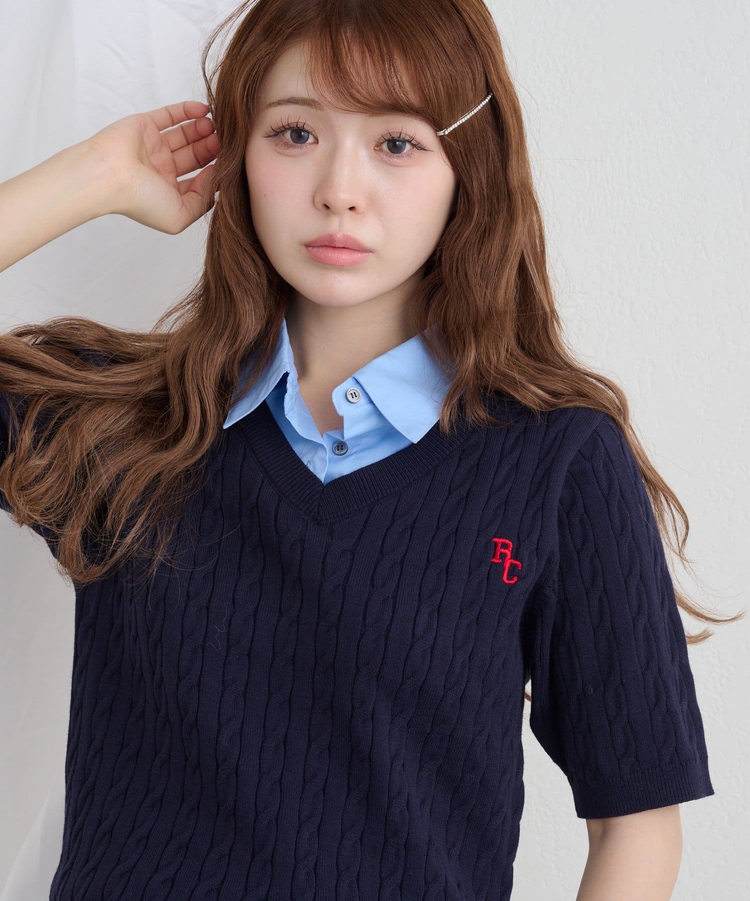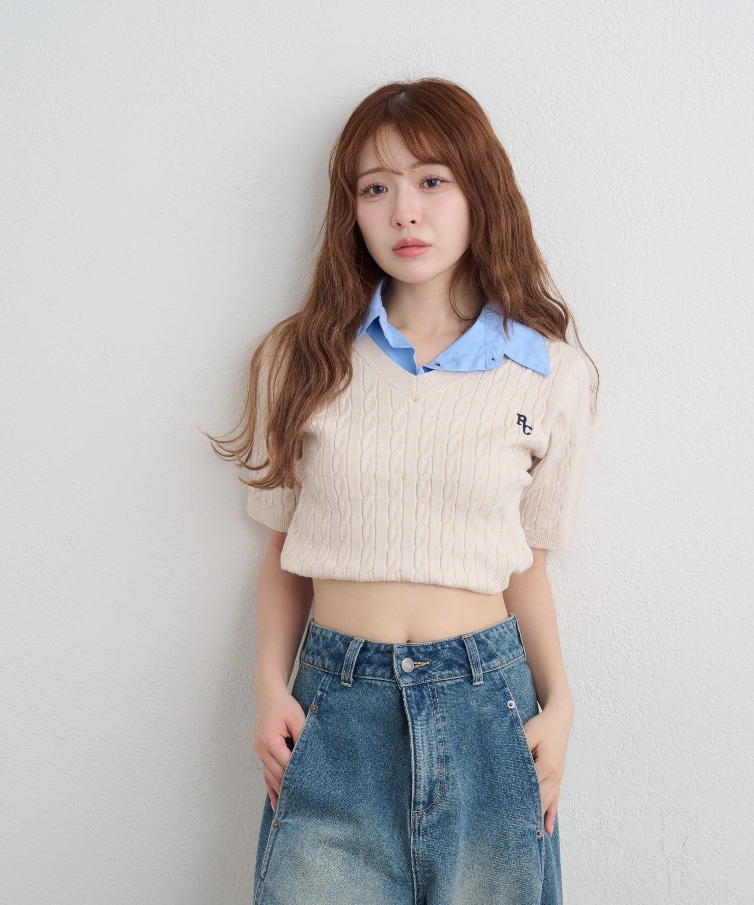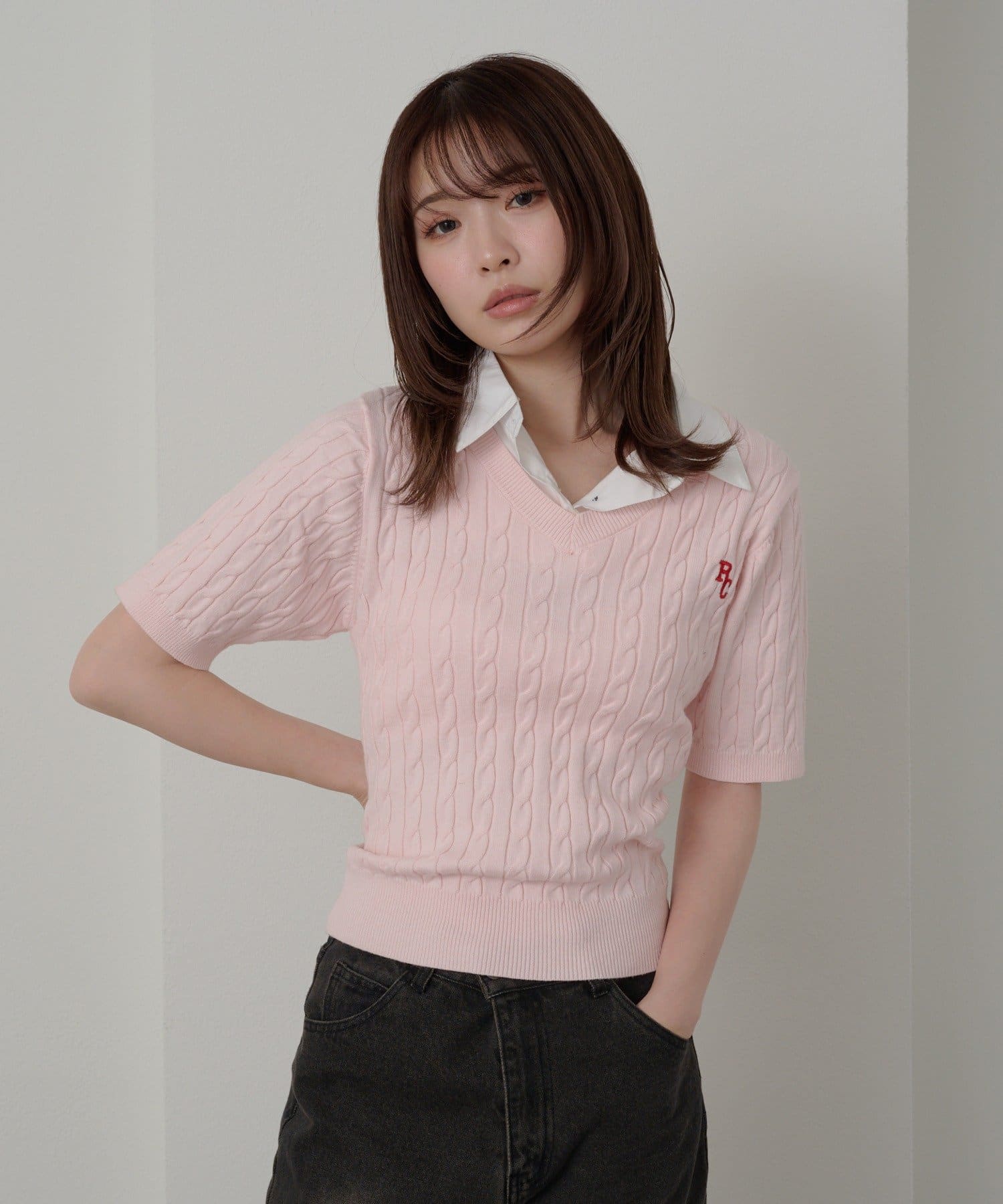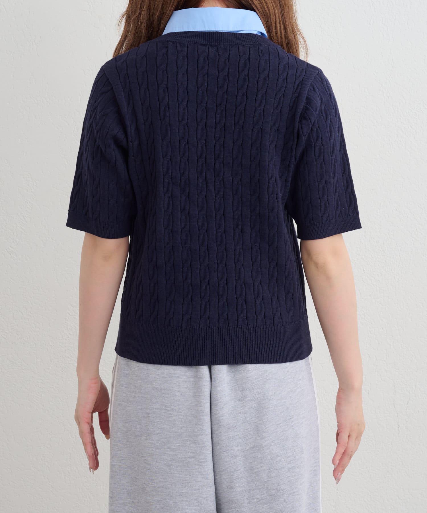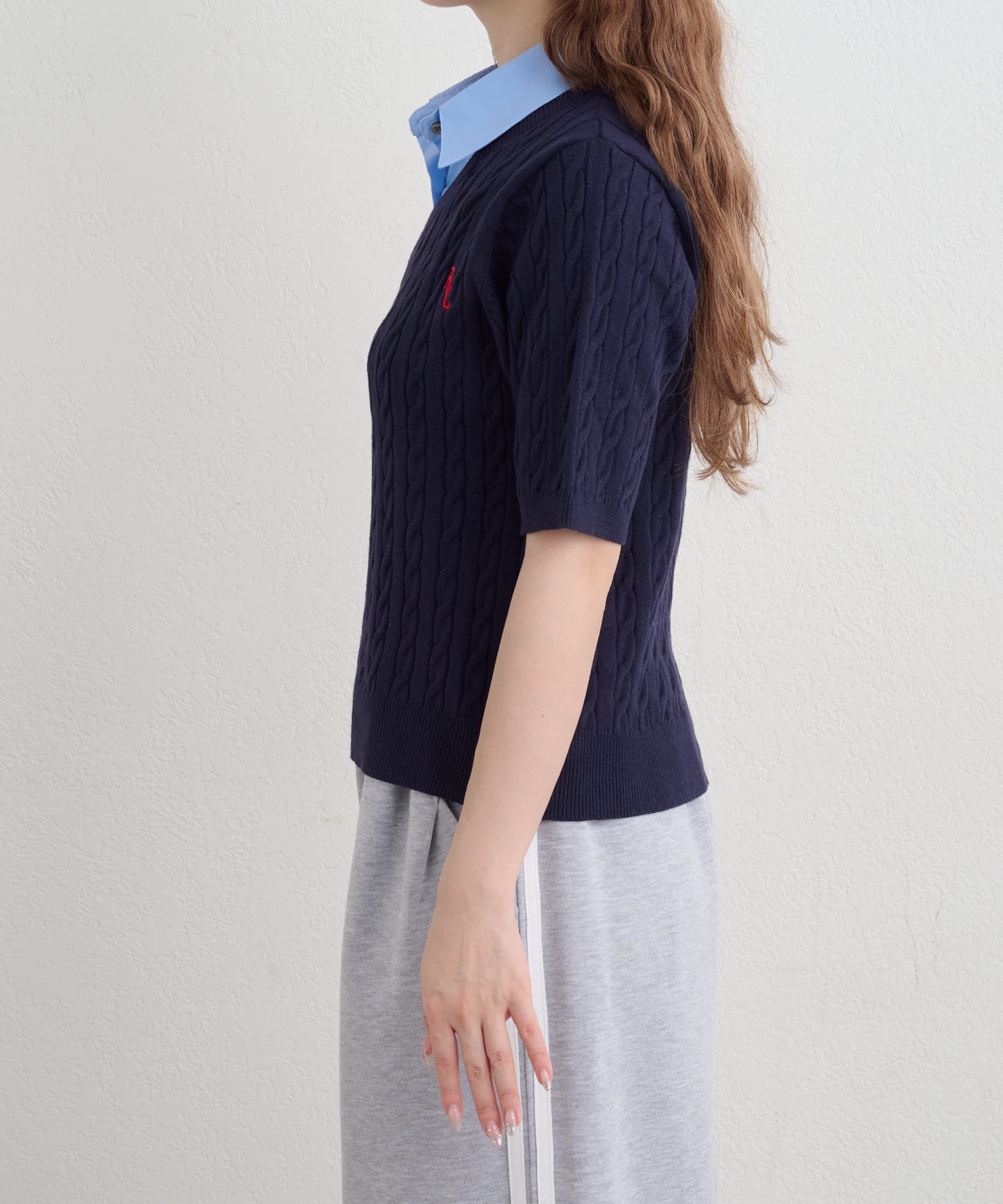 大人気のトップス、襟付ルーズケーブルVネックニットに半袖が登場!!