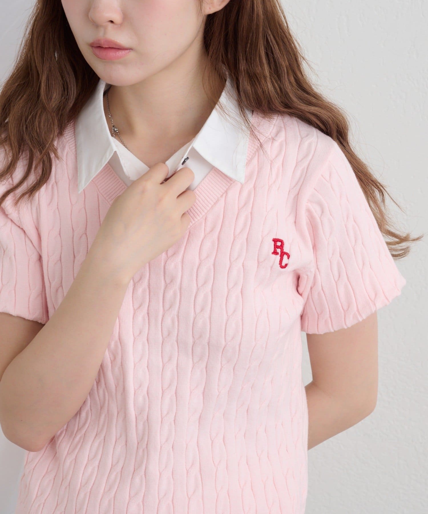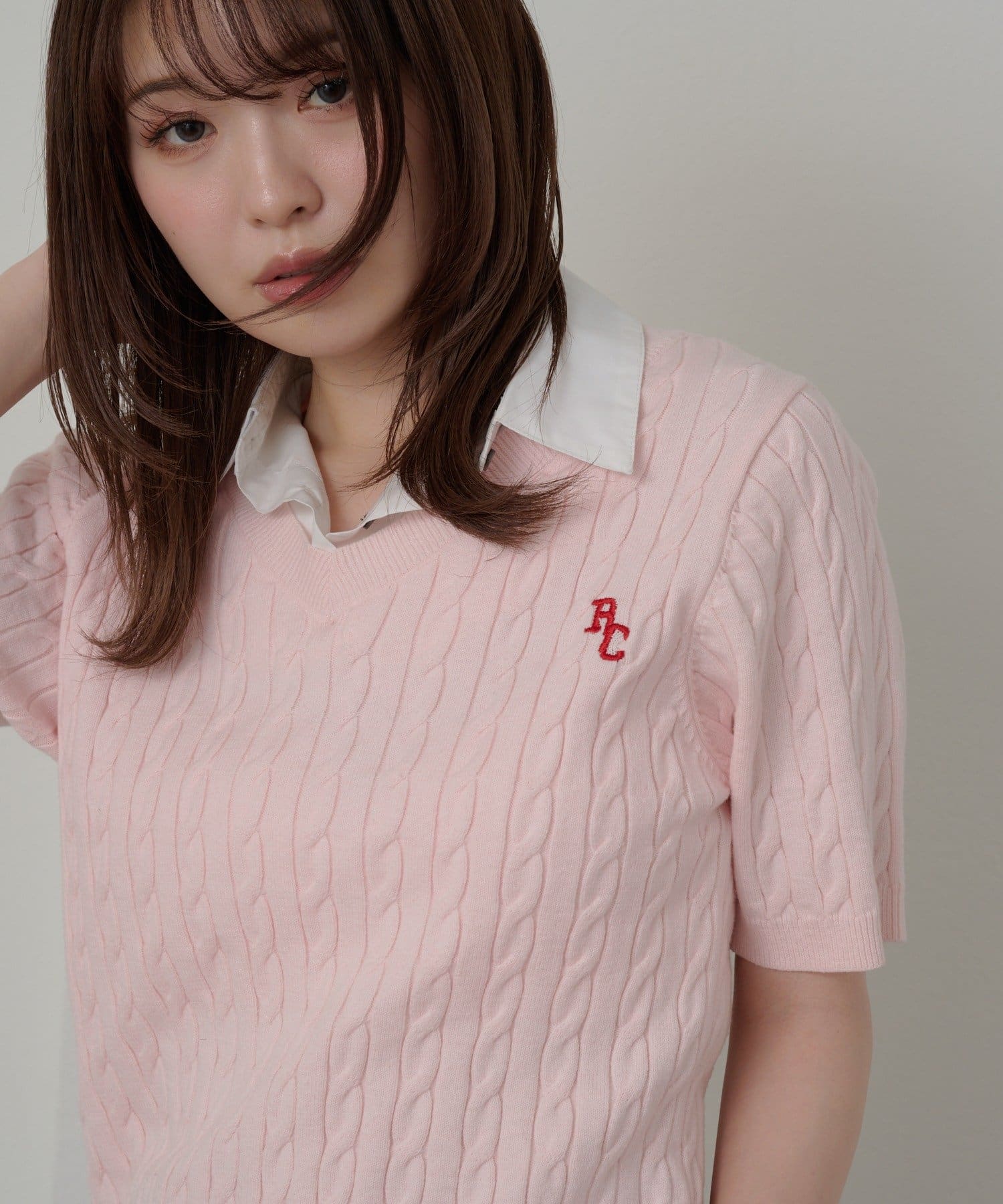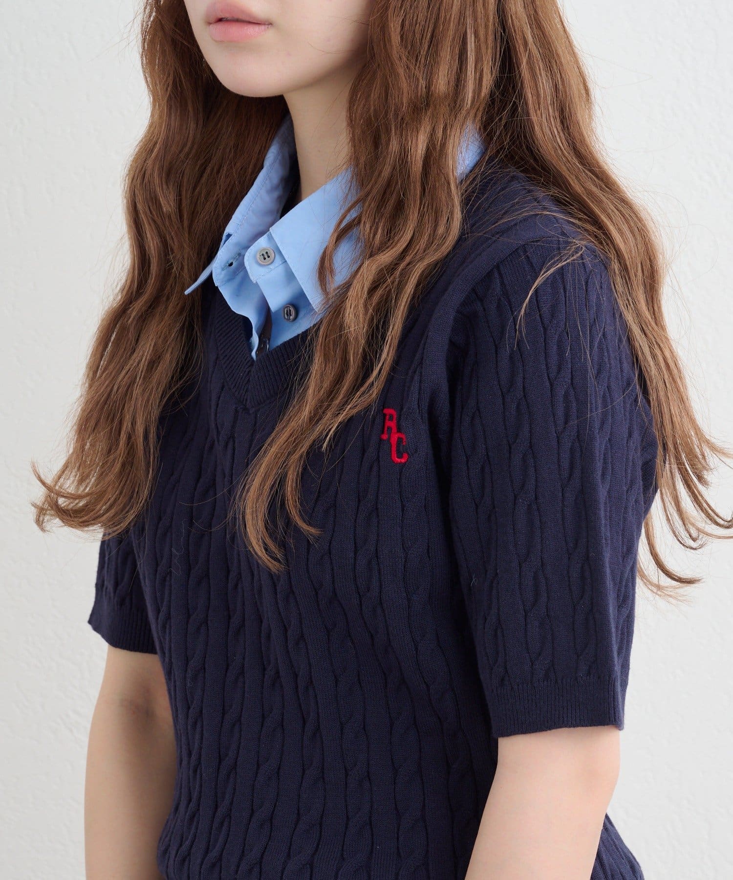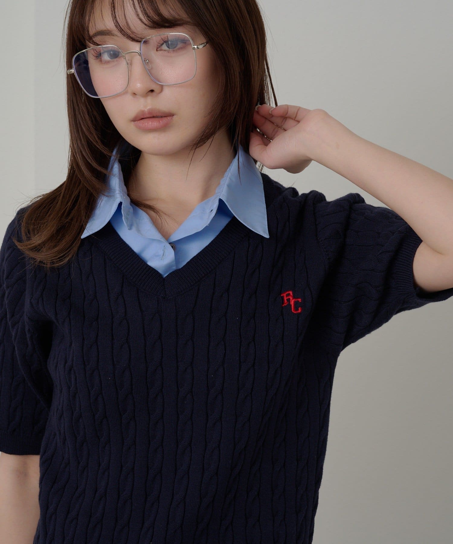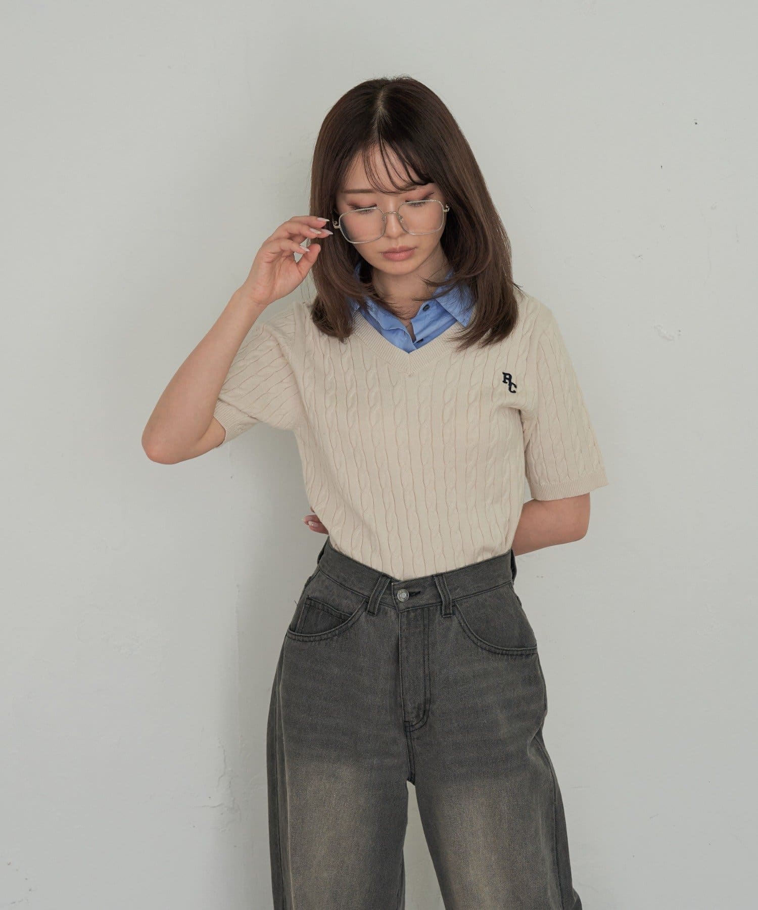 大人気のトップス、襟付ルーズケーブルVネックニットに半袖が登場!!
