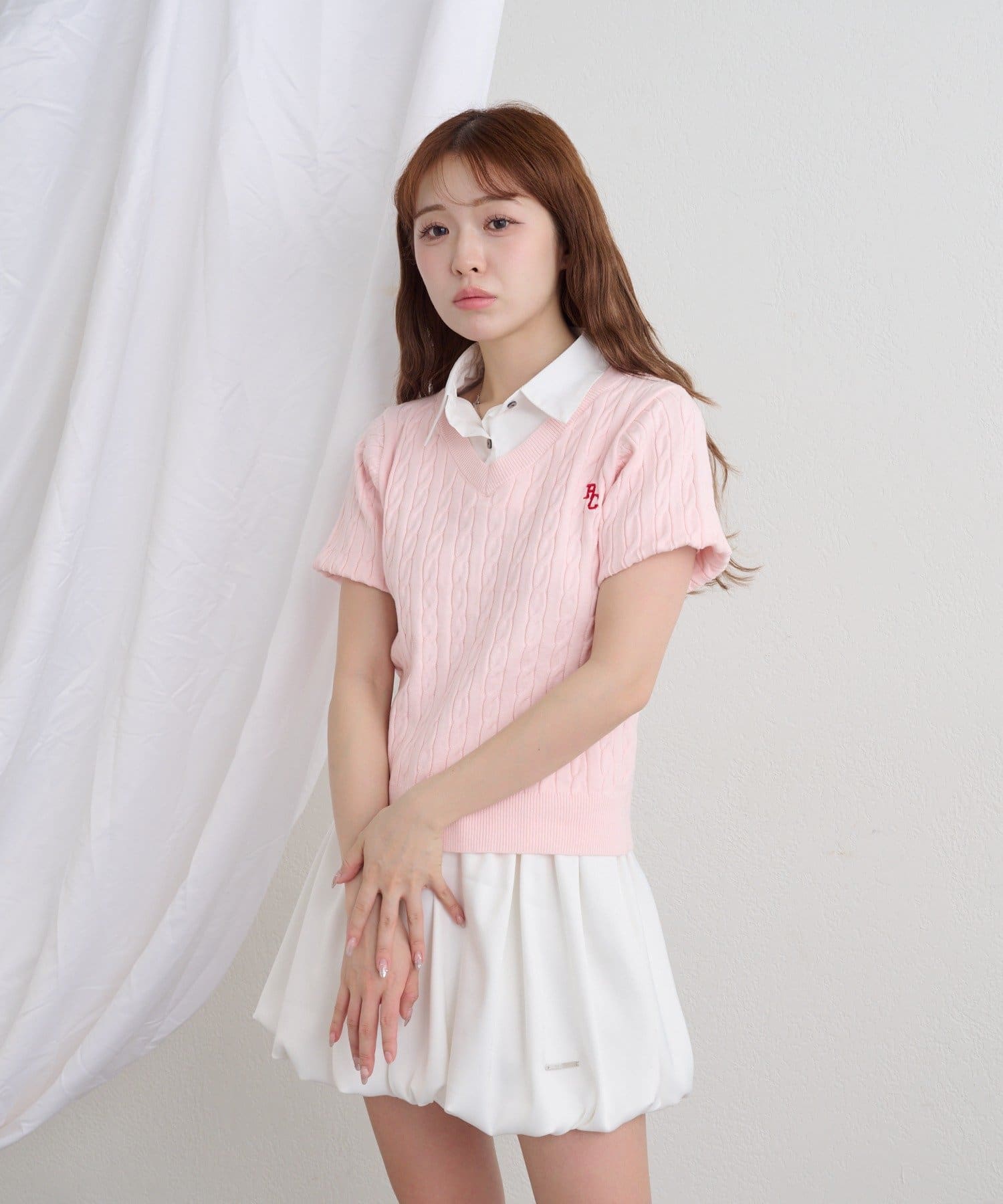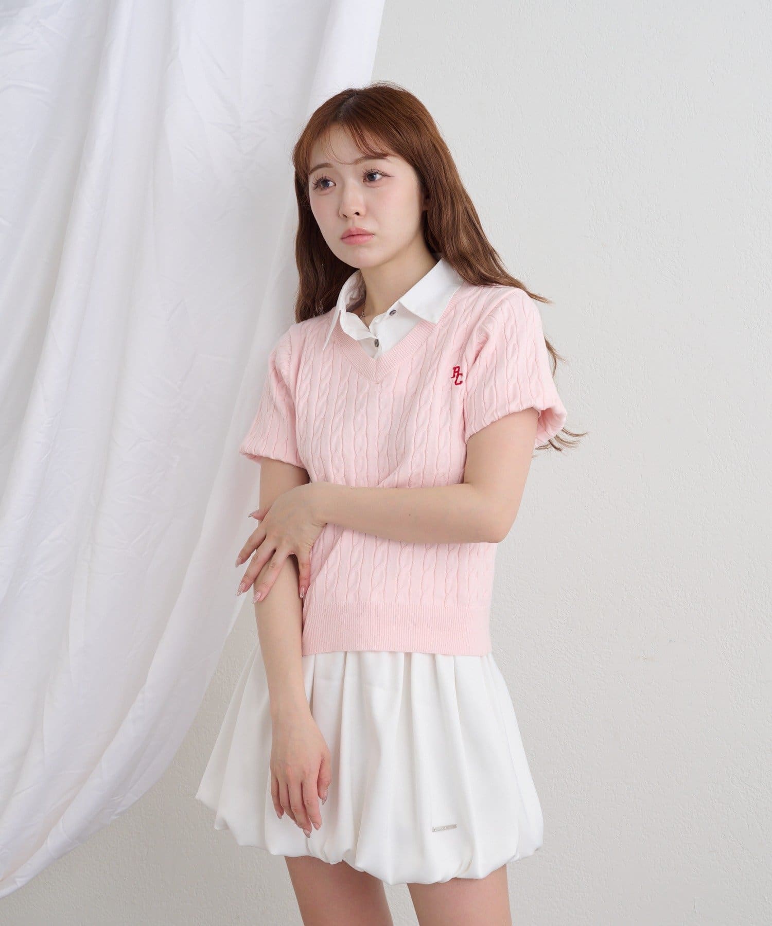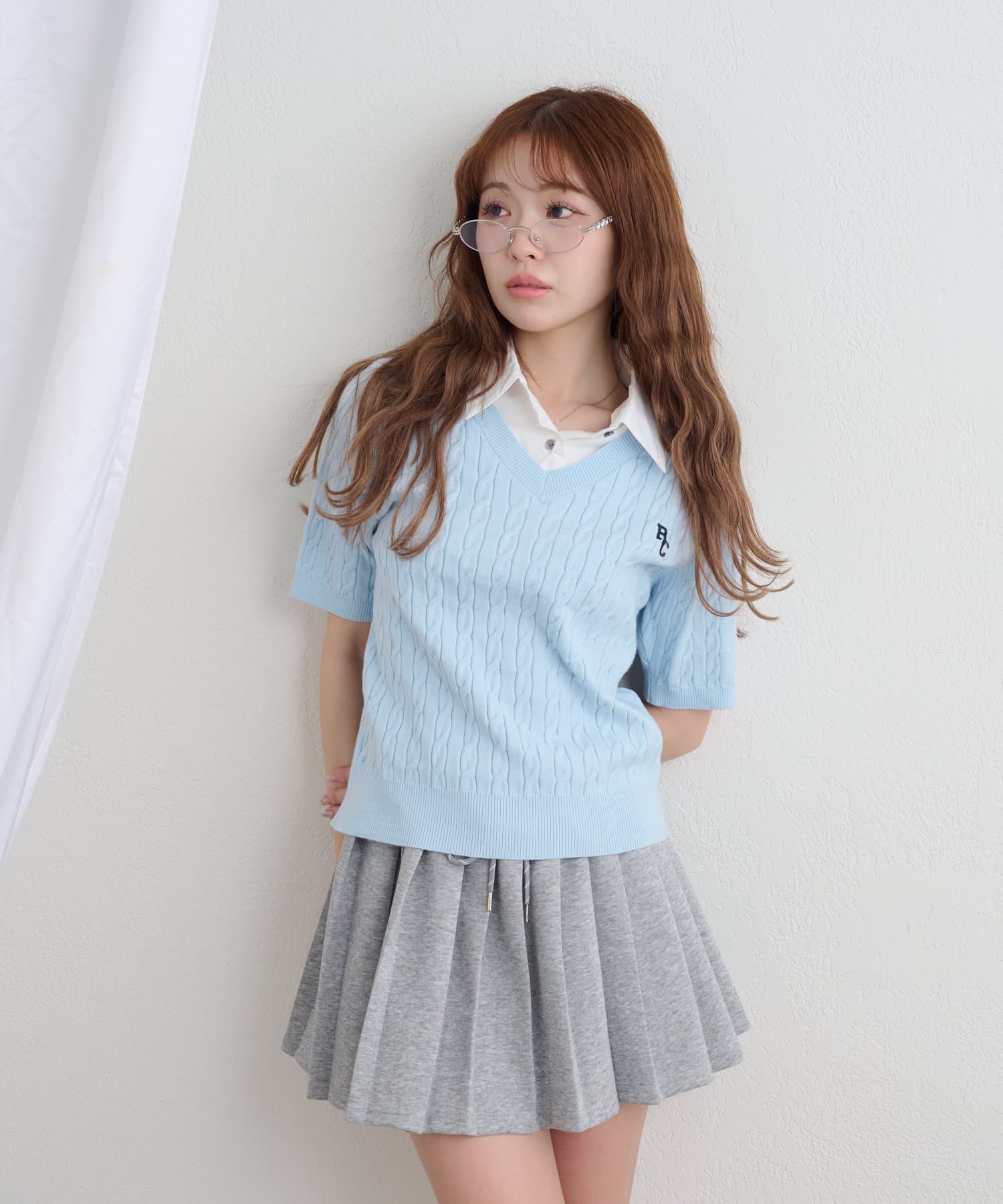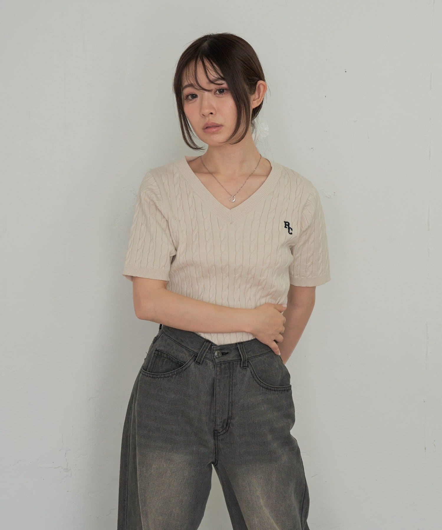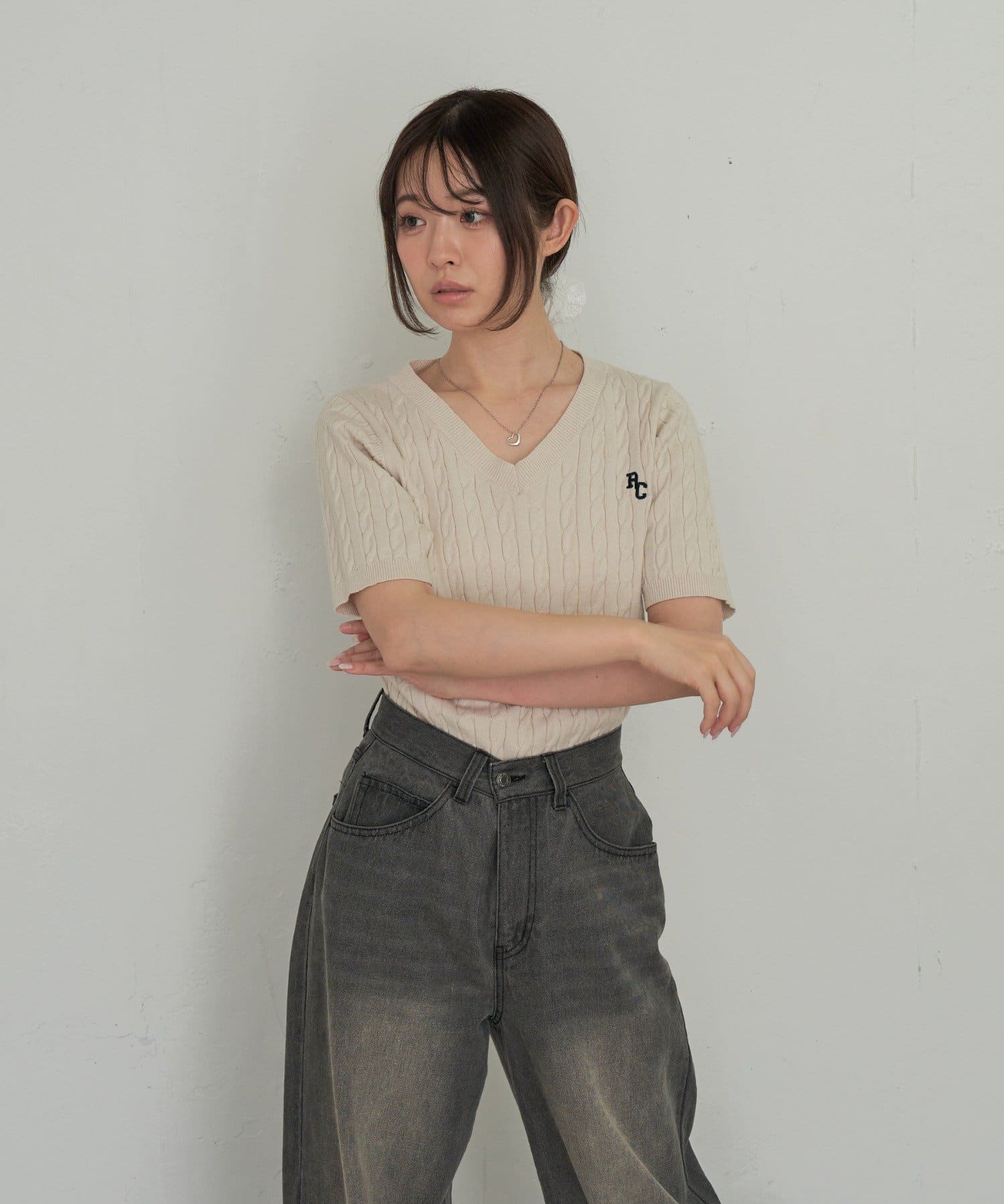 大人気のトップス、襟付ルーズケーブルVネックニットに半袖が登場!!