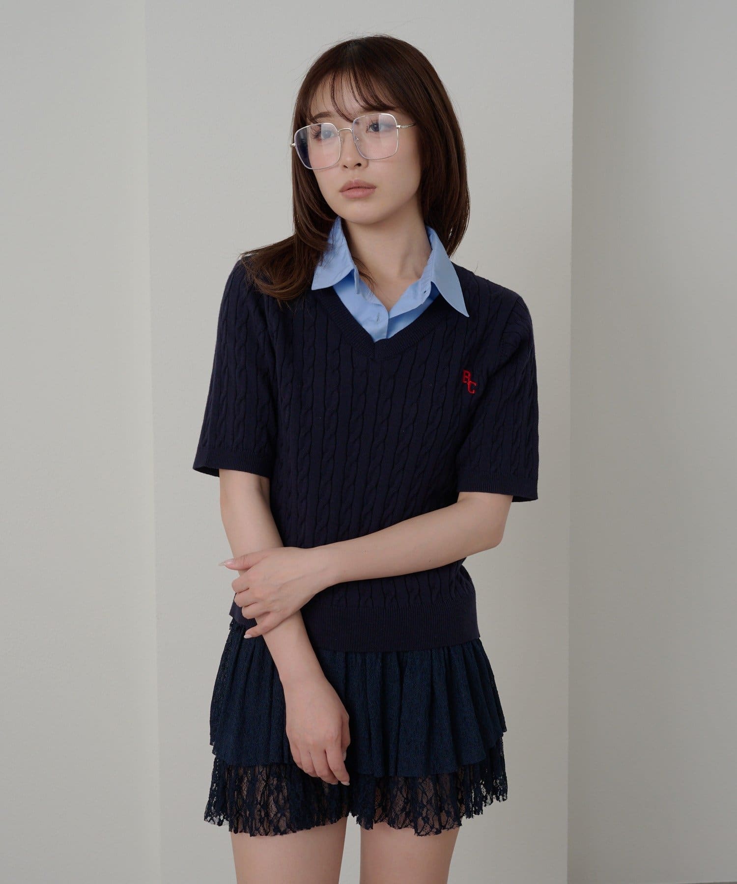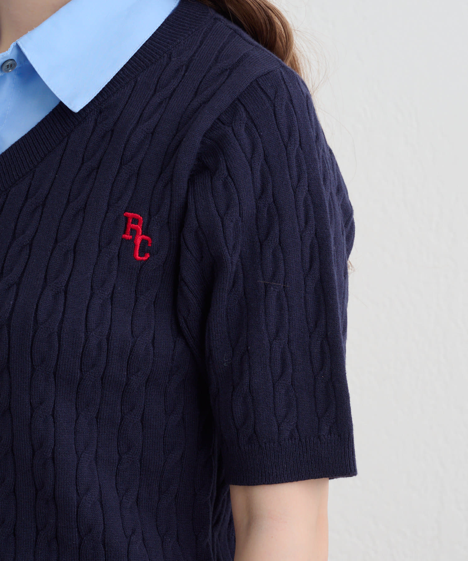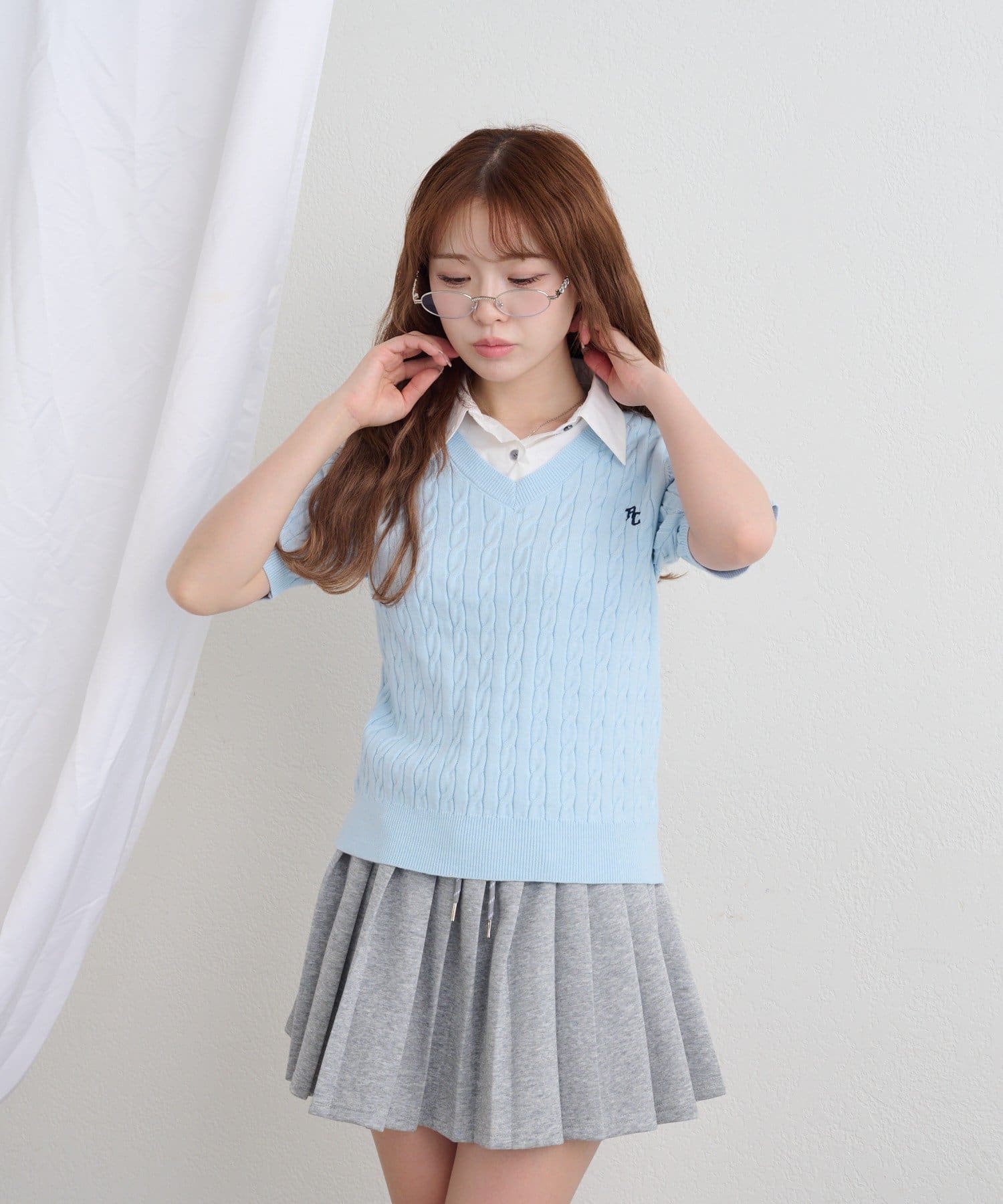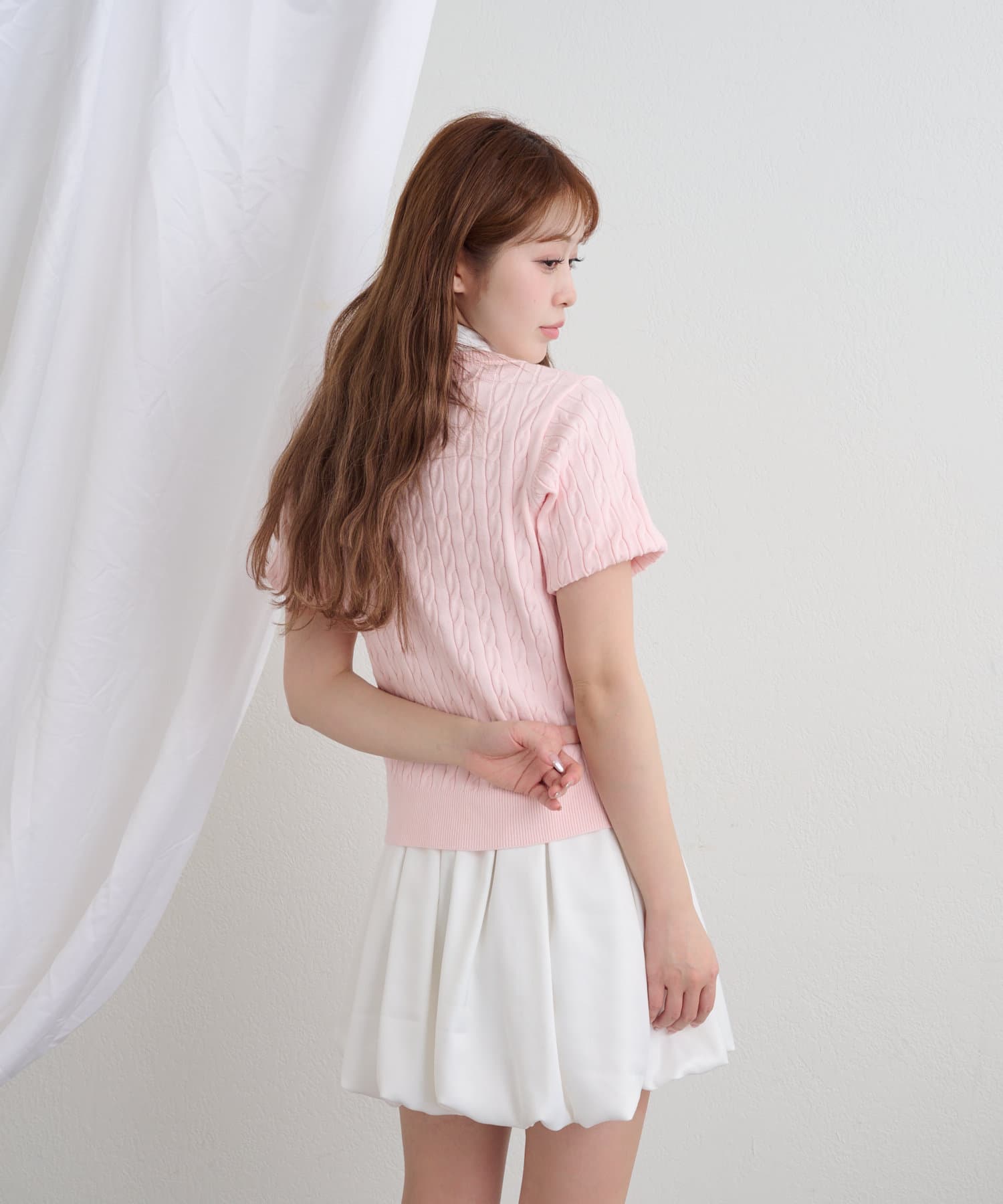 大人気のトップス、襟付ルーズケーブルVネックニットに半袖が登場!!