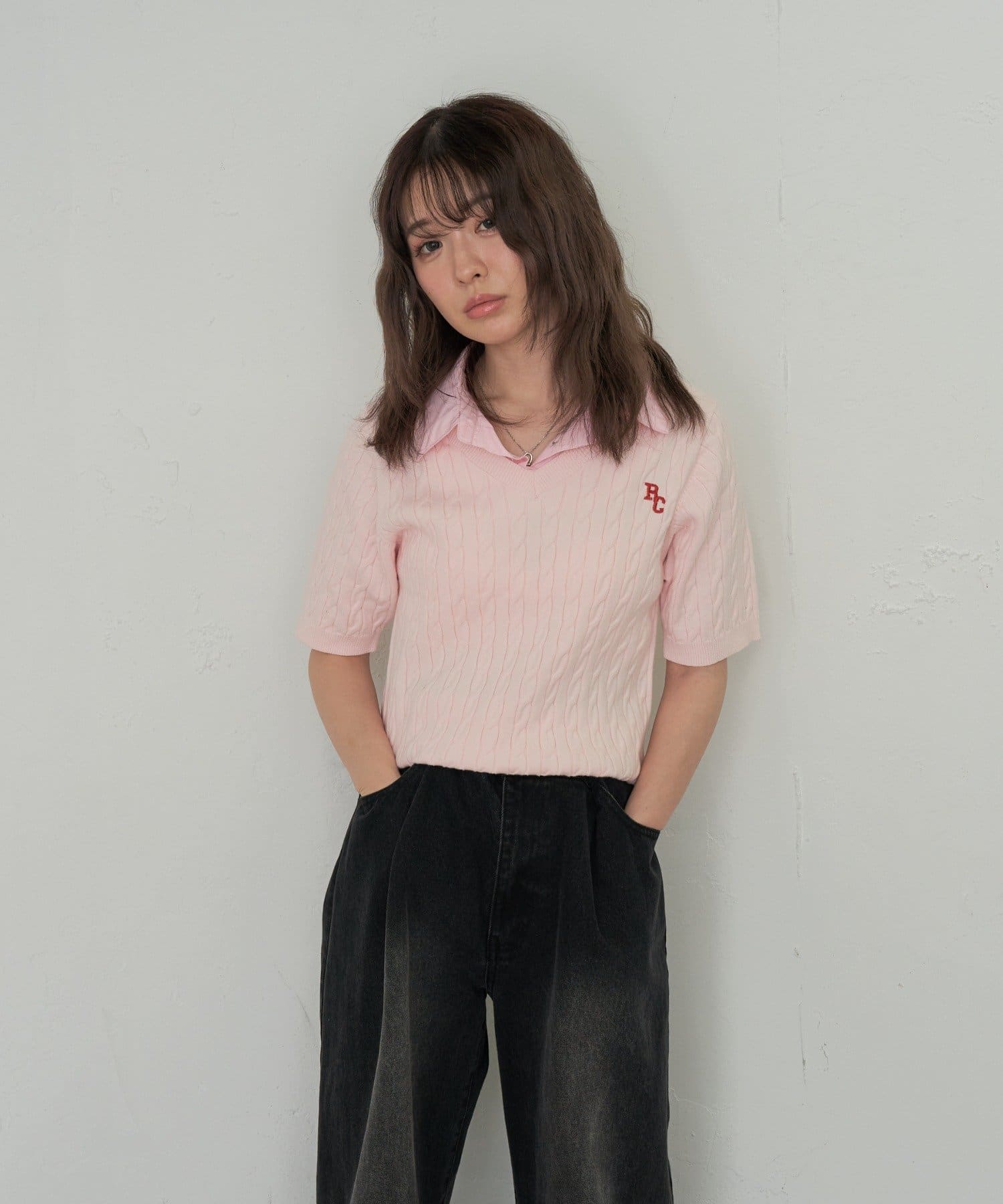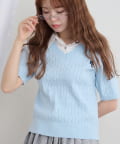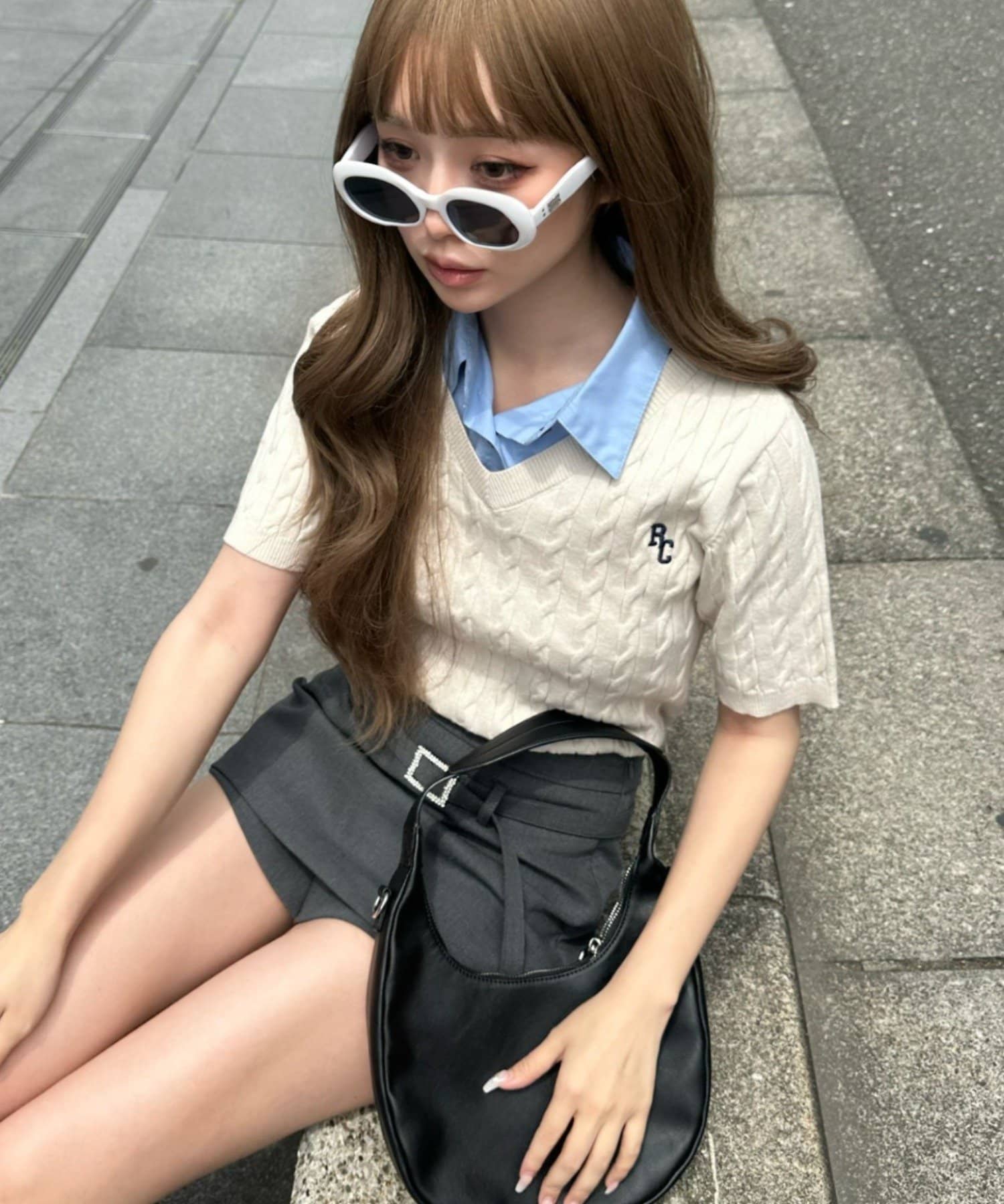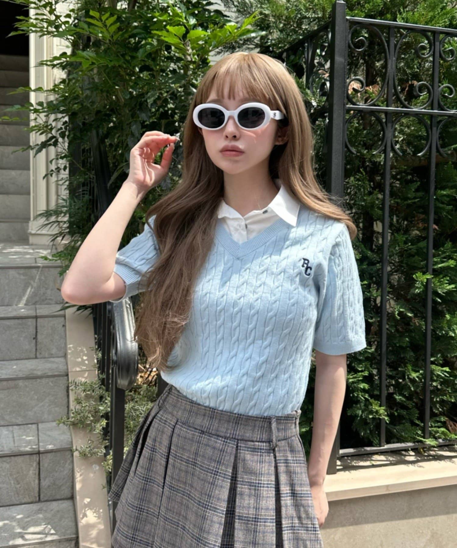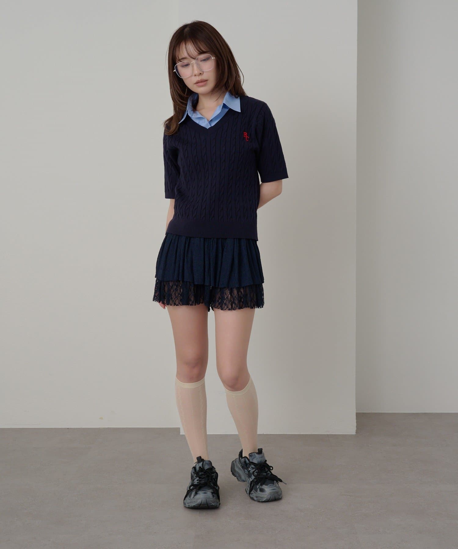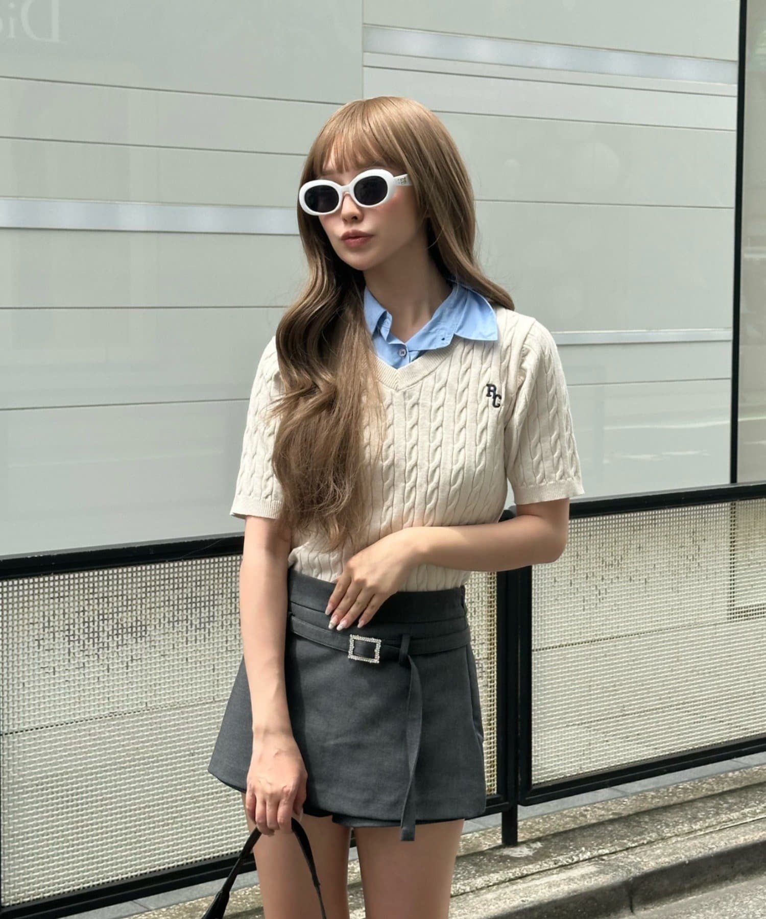 大人気のトップス、襟付ルーズケーブルVネックニットに半袖が登場!!