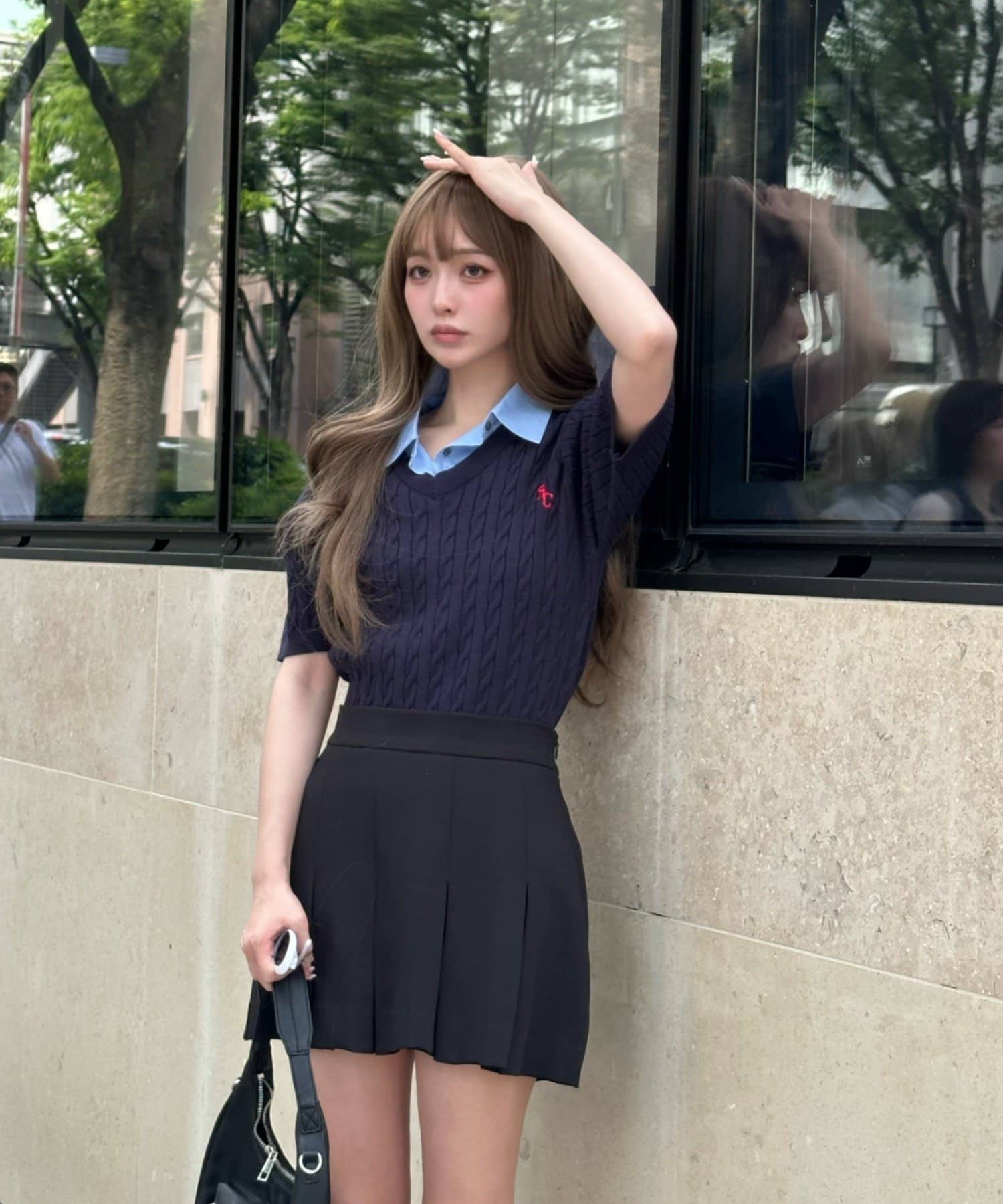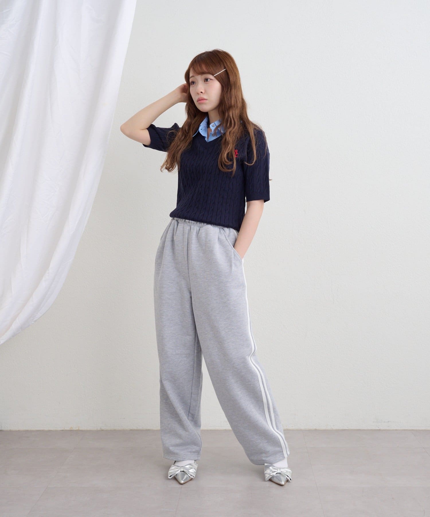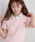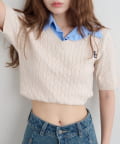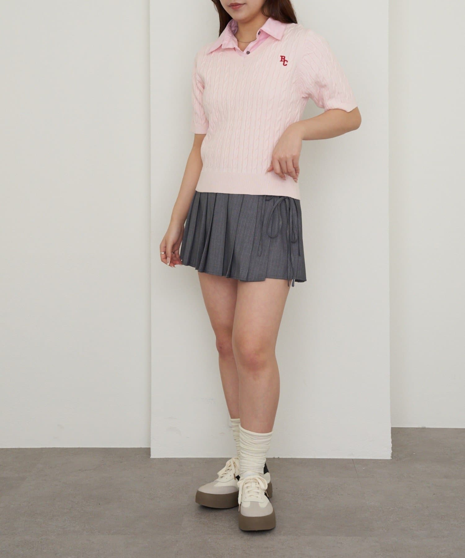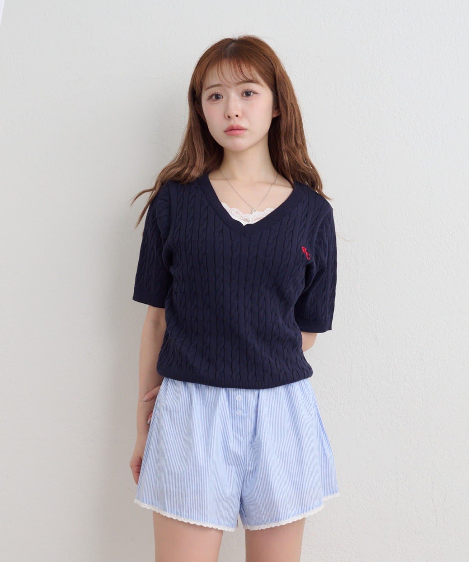 大人気のトップス、襟付ルーズケーブルVネックニットに半袖が登場!!