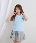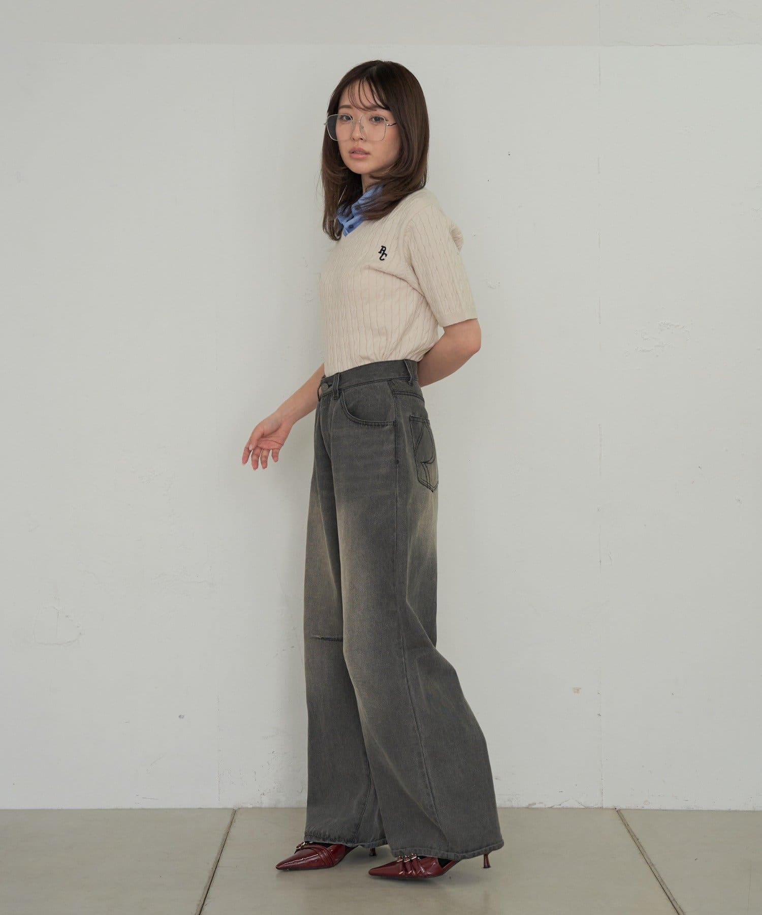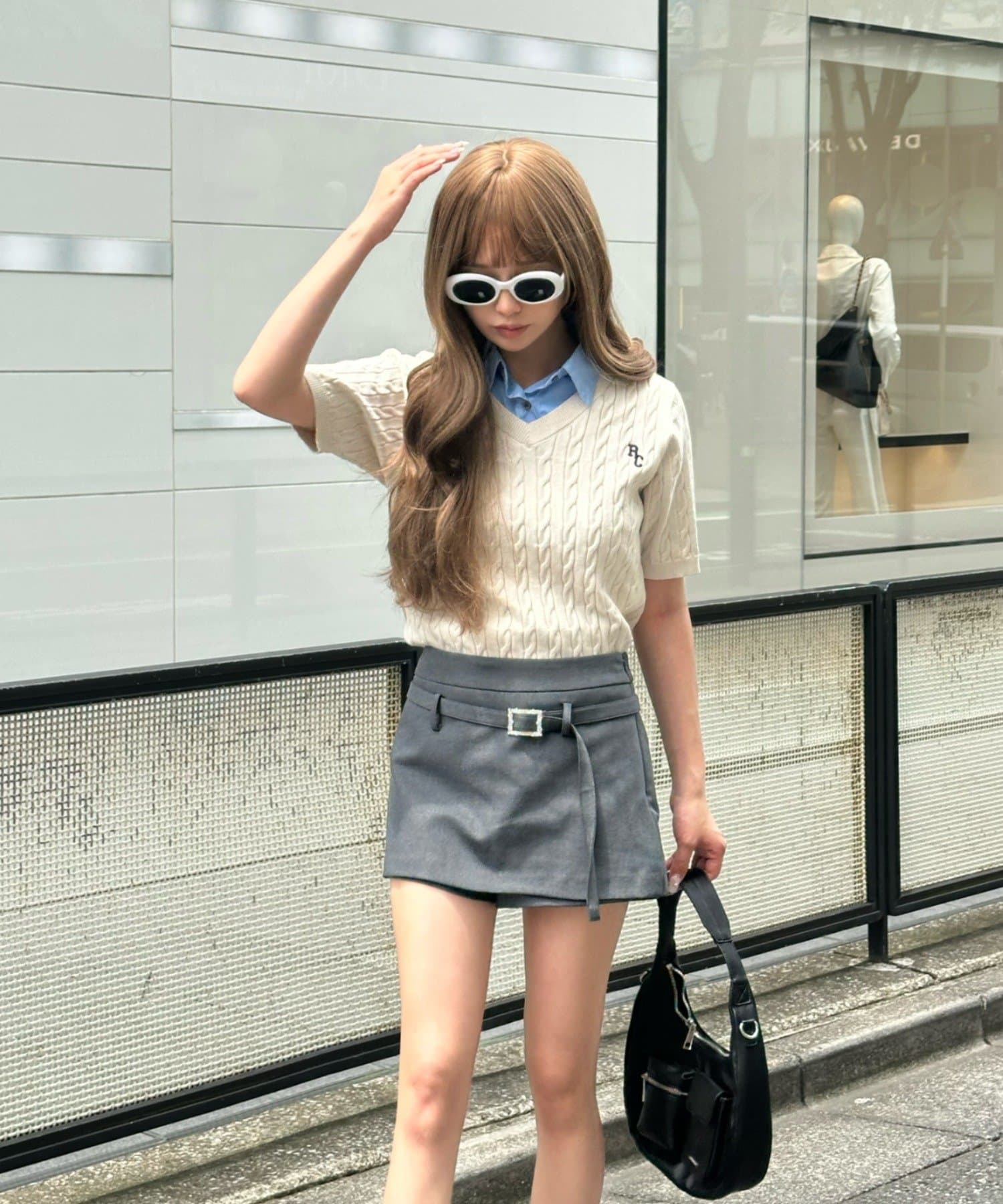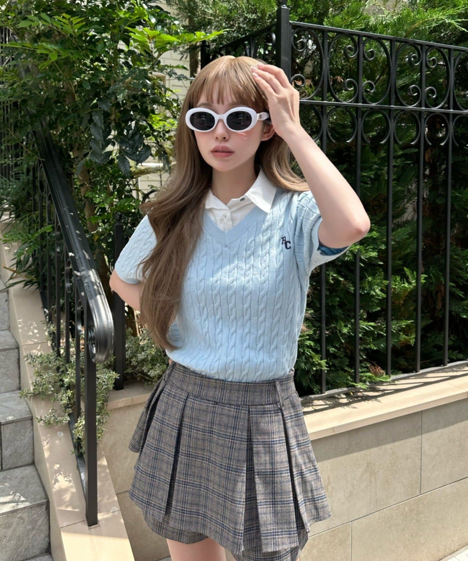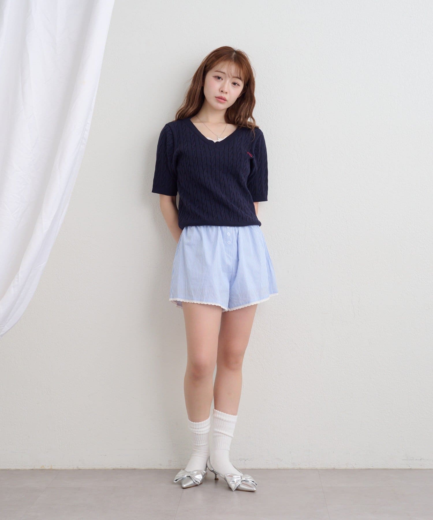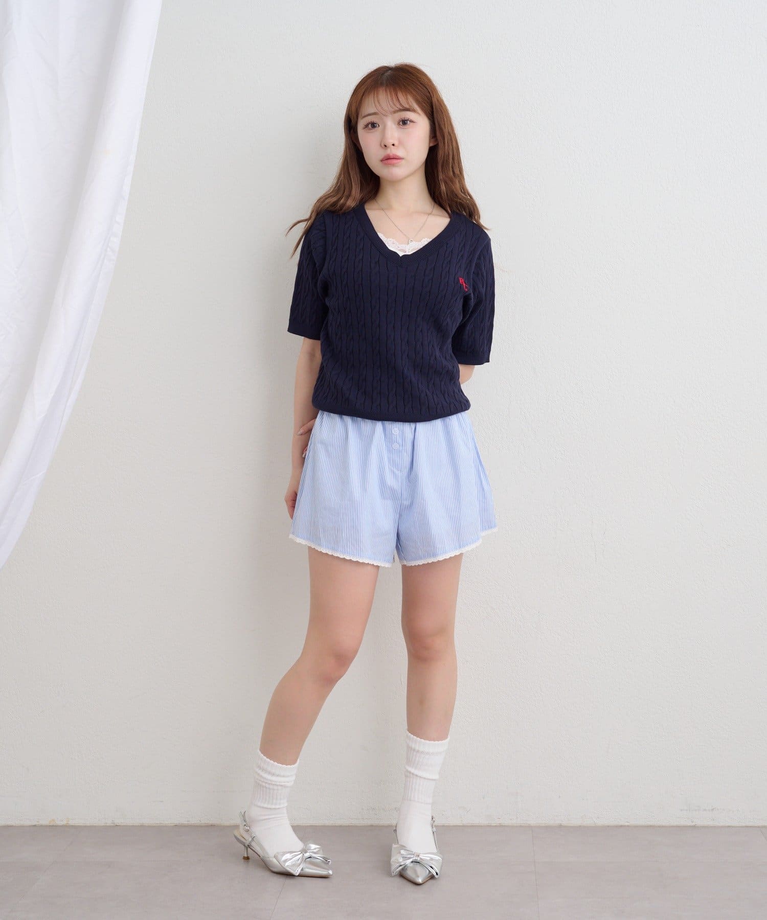 大人気のトップス、襟付ルーズケーブルVネックニットに半袖が登場!!
